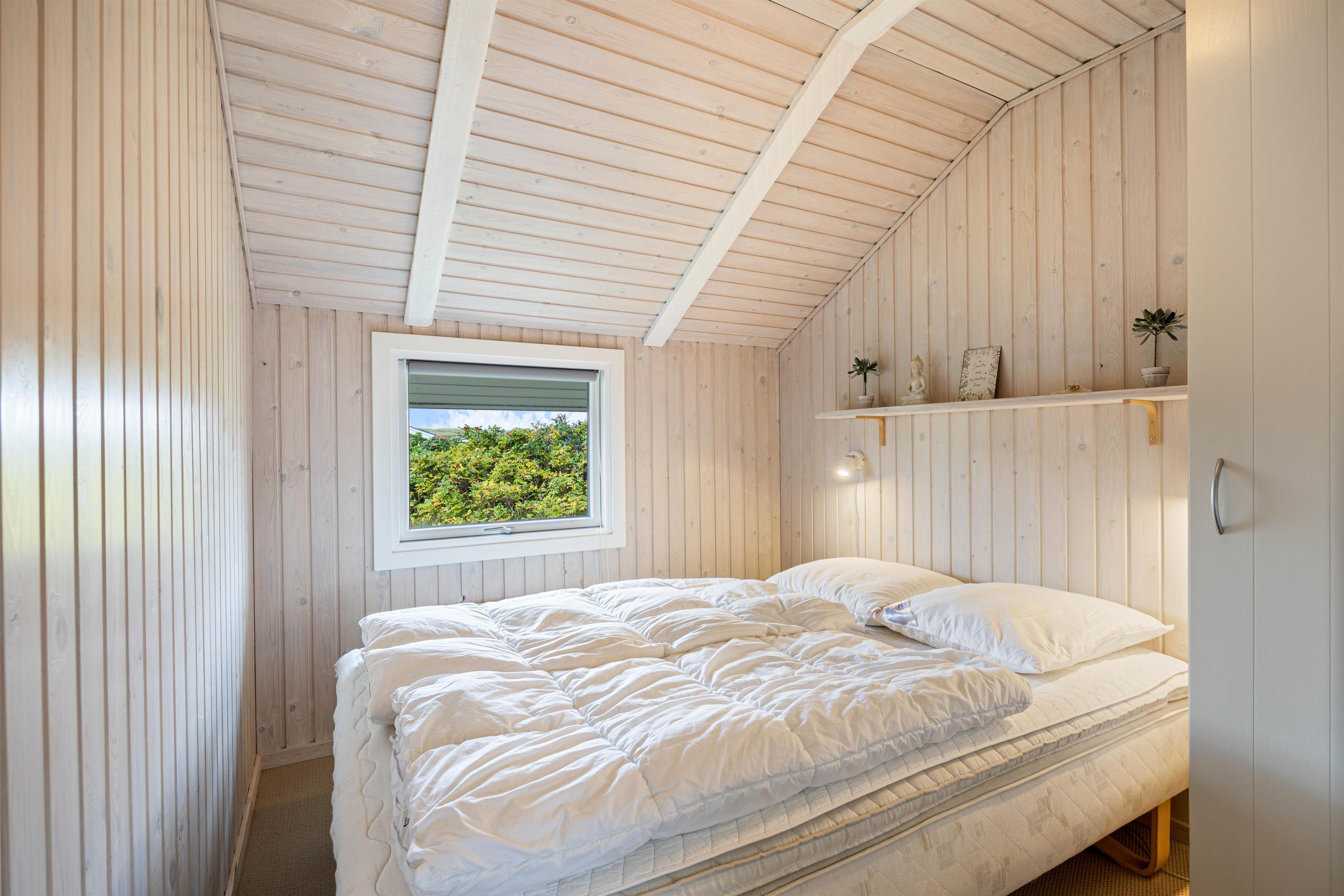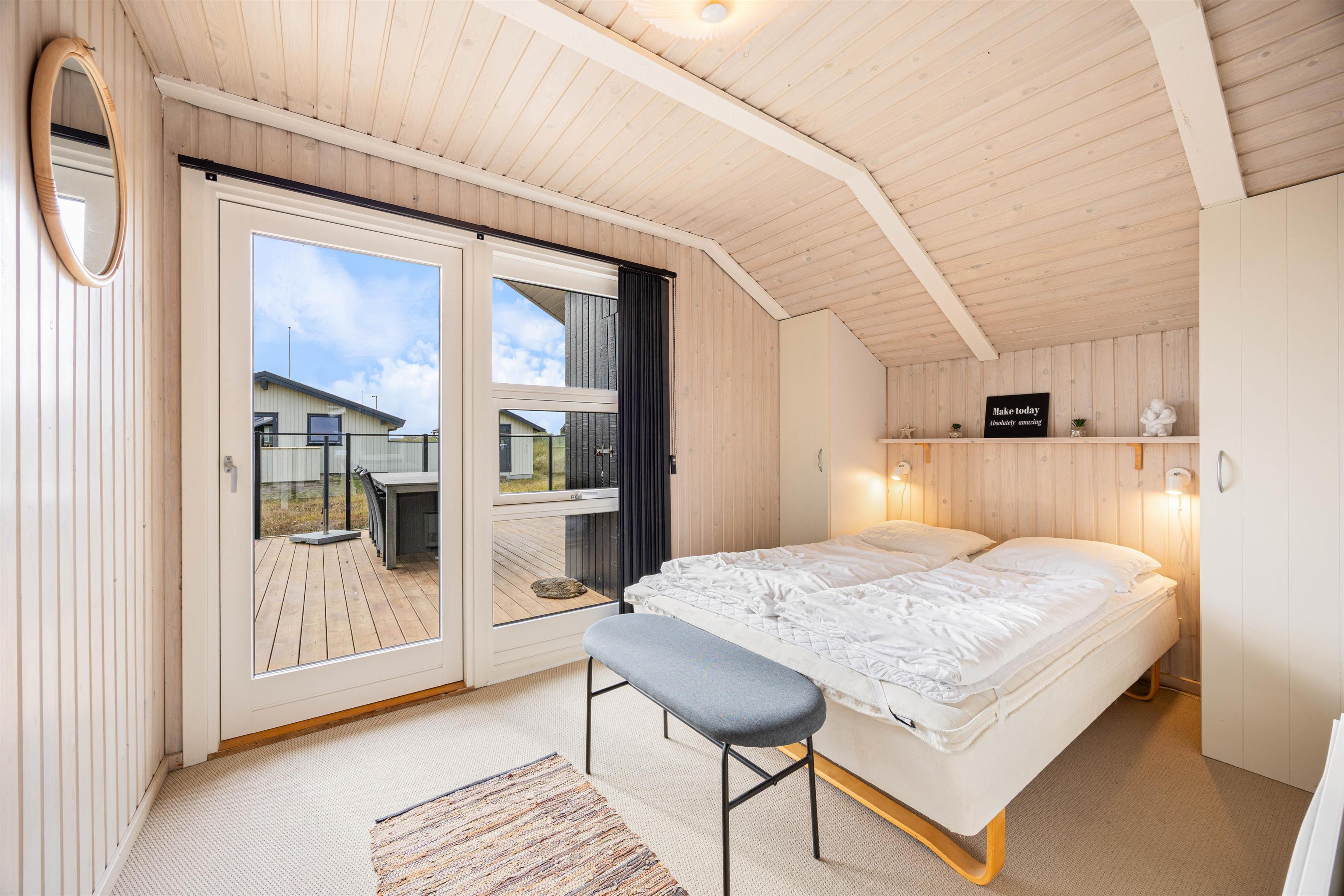 Der er plads til 6 personer fordelt på 3 soverum, hvoraf de 2 er med dobbeltsenge, og 1 værelse er med 2 køjesenge. Badeværelset har alt, hvad I har brug for, bl.a. en vaskemaskine, som gør feriepakningen let. Der finder I også en sauna, hvor I rigtig kan blive gennemvarmet - måske efter en lang dag i klitlandskabet og ved stranden.