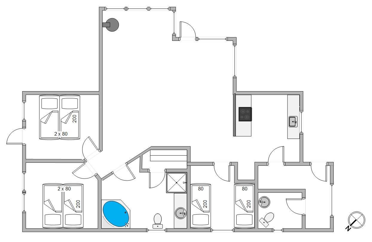 Planløsningen byder bl.a. på tre gode soverum. 1 af værelserne er udstyret med to enkeltsenge, mens de andre to byder på en dobbeltseng. Superpraktisk har feriehuset ét lille fint gæstetoilet samt et stort badeværelse, så I ikke skal stå i kø om morgenen. På det store badeværelse er her lagt op til afslapning med både spa og sauna. Tænd op i saunaen eller start boblerne i spaen – her kan man lade tid og sted forsvinde og få fornyet energi til hverdagen.