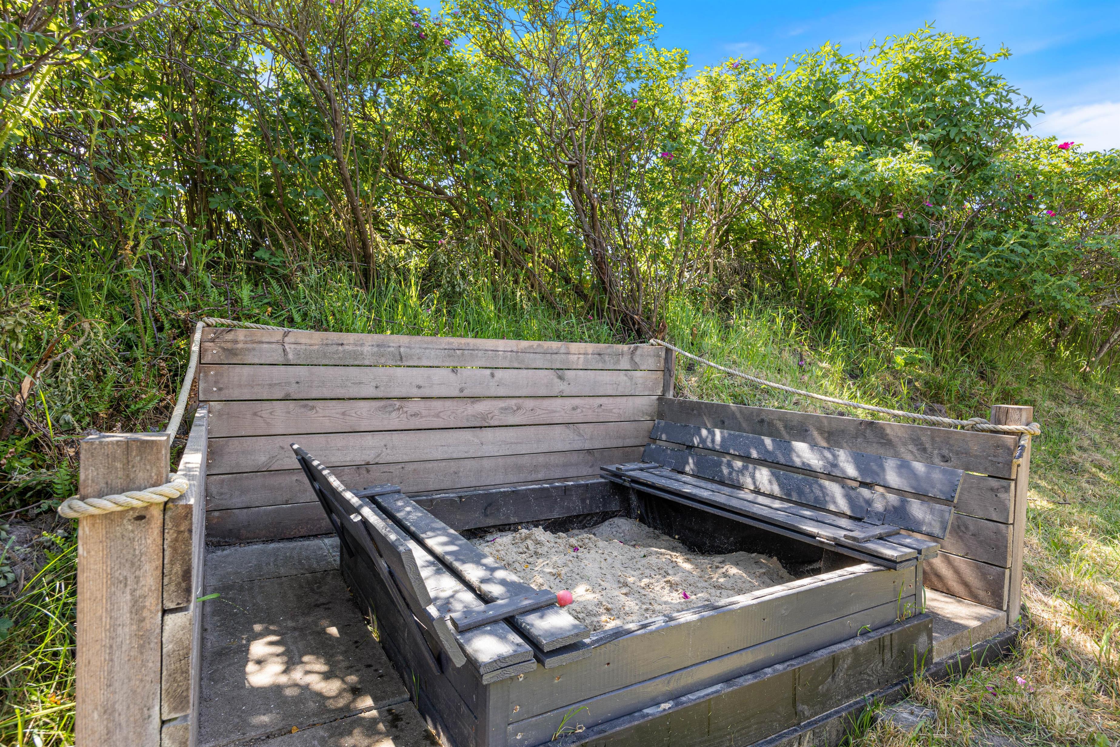 På en af husets mange gode terrasser finder I helt sikkert en læfyldt plet, hvor du kan slå dig ned med en god bog og en kop kaffe og nyde freden og roen. Til terrasserne hører naturligvis havemøbler, liggestole og en grill. Der er også tænkt på de små, idet her er opsat gynge og sandkasse.