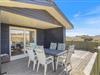 Terrassen omkring sommerhuset er delvist afskærmet af stakit, buske og små klitter med marehalm. De komfortable havemøbler byder på afslapning. De mange kroge gør, at du altid kan finde en rolig plet, hvor du kan nyde en kop te eller en god bog.
