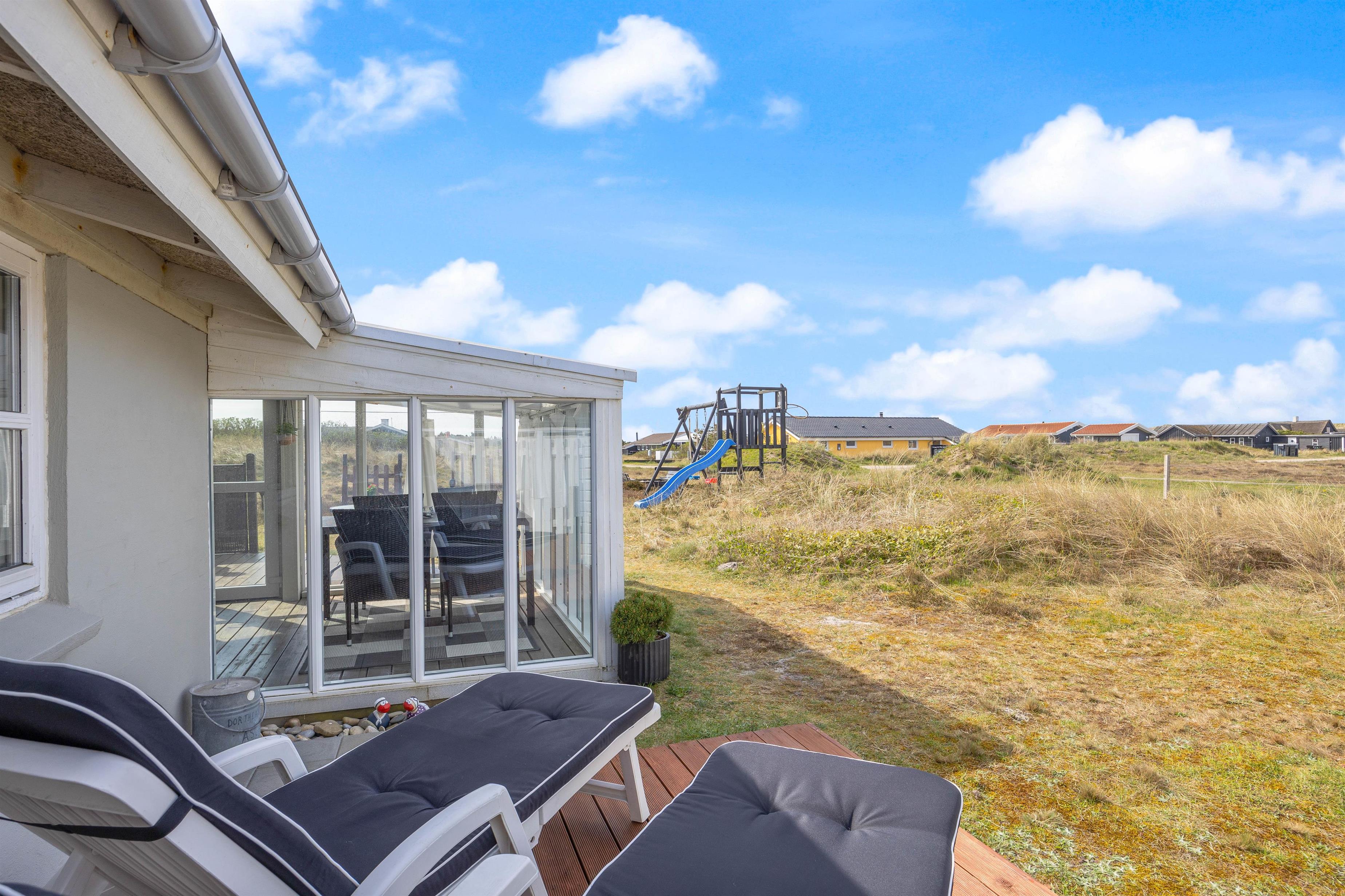 Imens kan børnene prøve sandkassen, gynge og brænde energi af. I redskabsrummet kan du f.eks. stille cykler, så du også kan udnytte det fine net af cykelstier i området. Om aftenen kan I tilberede en lækker BBQ på den smukke terrasse og afslutte en hyggelig dag sammen. Der er en 40m² lukket hundegård ved huset.
