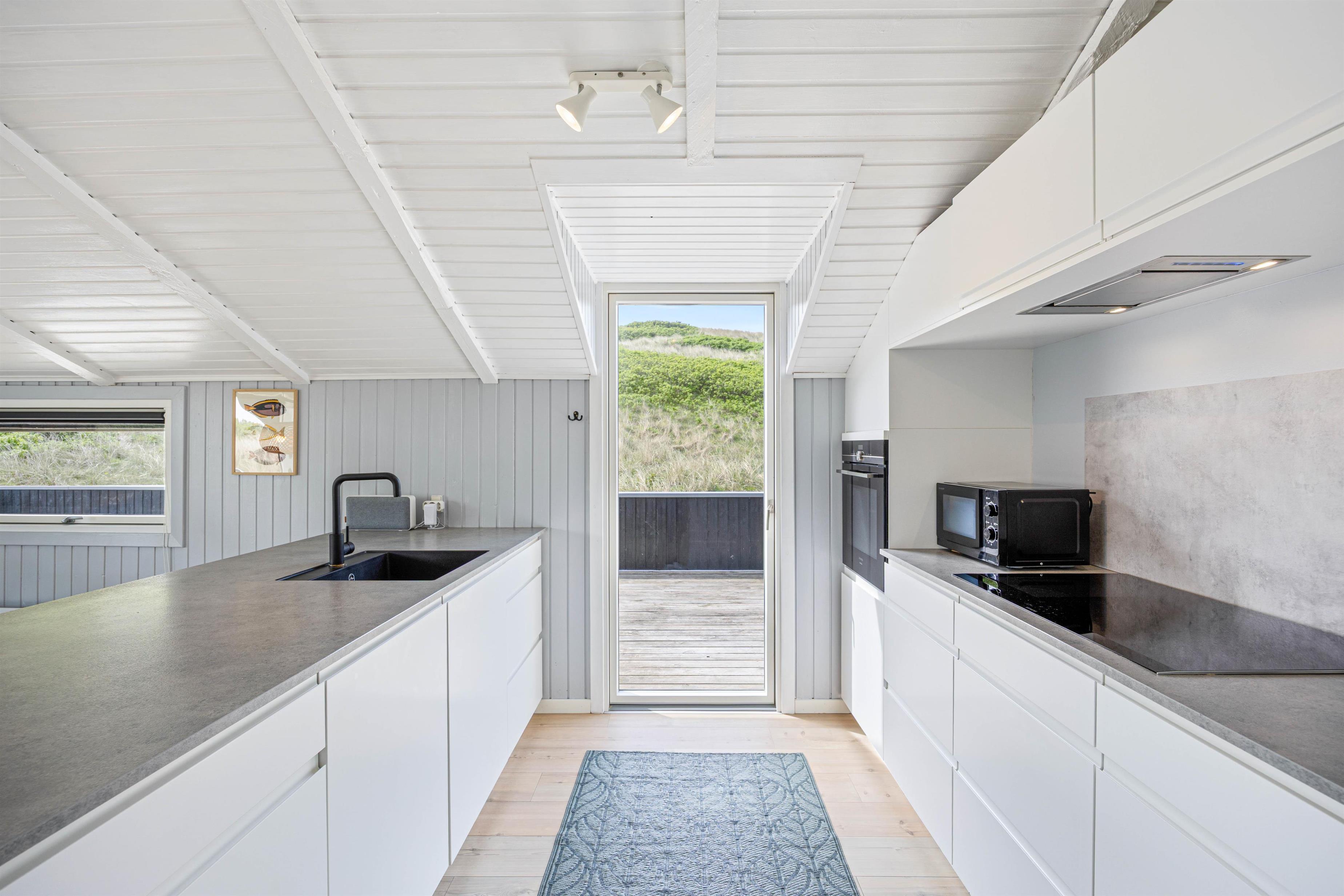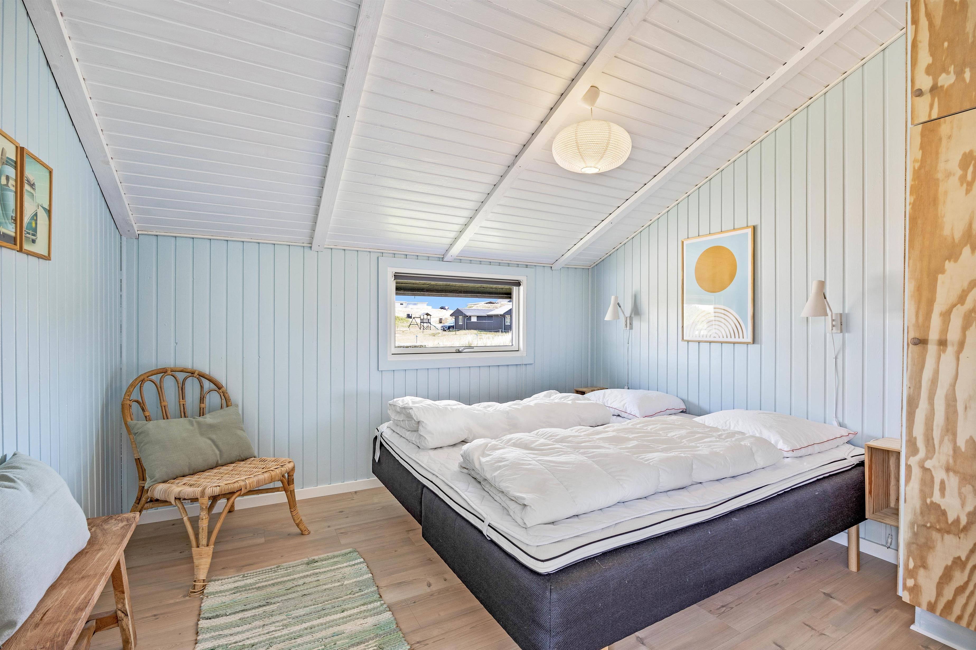 I første klitrække i Bjerregård finder I dette moderne og hyggelige sommerhus, hvor op til 6 personer samt 2 hunde kan nyde en dejlig og afslappende ferie. Sommerhuset har både brændeovn, varmepumpe og en infrarød sauna. På terrassen kan I nyde sommervejret og den friske havluft i de komfortable havemøbler.
