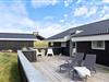 Fra sommerhusets stue og køkken har I udgange til den fine træterrasse, der strækker sig fra syd- til vestsiden af sommerhuset. Den sydvendte del er delvist overdækket.