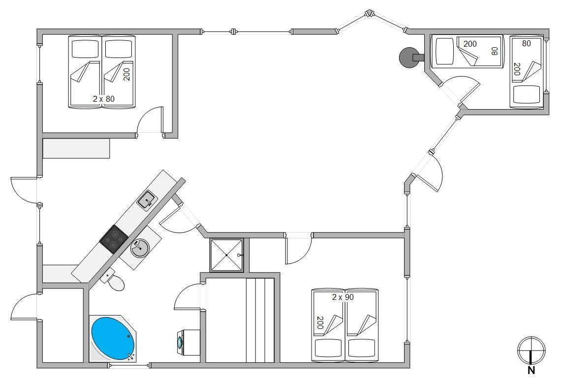 På P Chr Dahls Vej 22 ligger dette fine sommerhus med plads til 6 personer. I vil hurtigt falde til i de lyse og åbne omgivelser, der skaber en behagelig atmosfære i hele feriehuset.