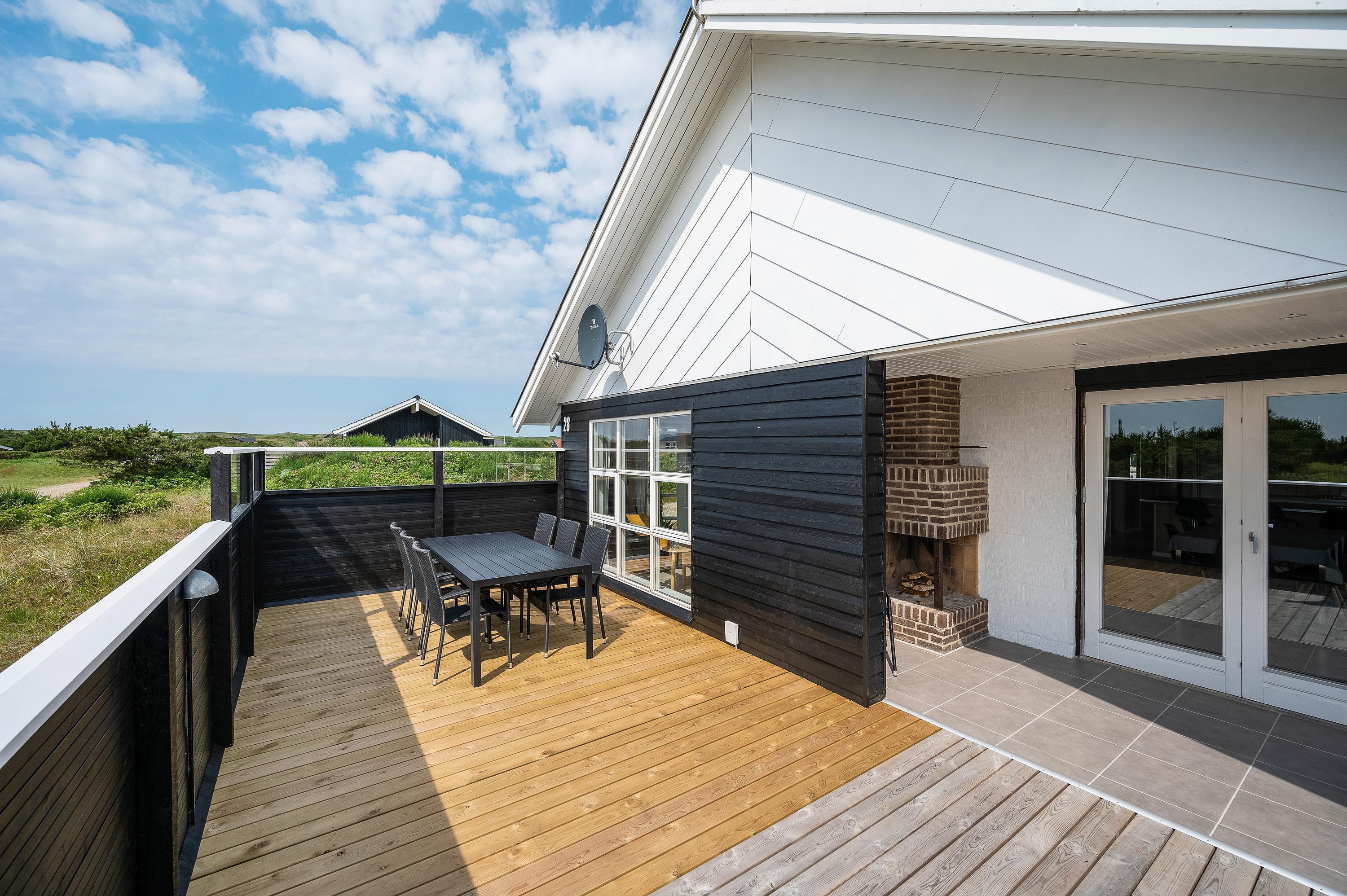 Med direkte adgang fra den hyggelige stue kommer I ud på træterrassen, der indbyder til afslapning og velvære. Her er der plads til, at hele familien kan samles til et lækkert grillmåltid, mens hunden kan gå frit rundt – terrassen er nemlig lukket.