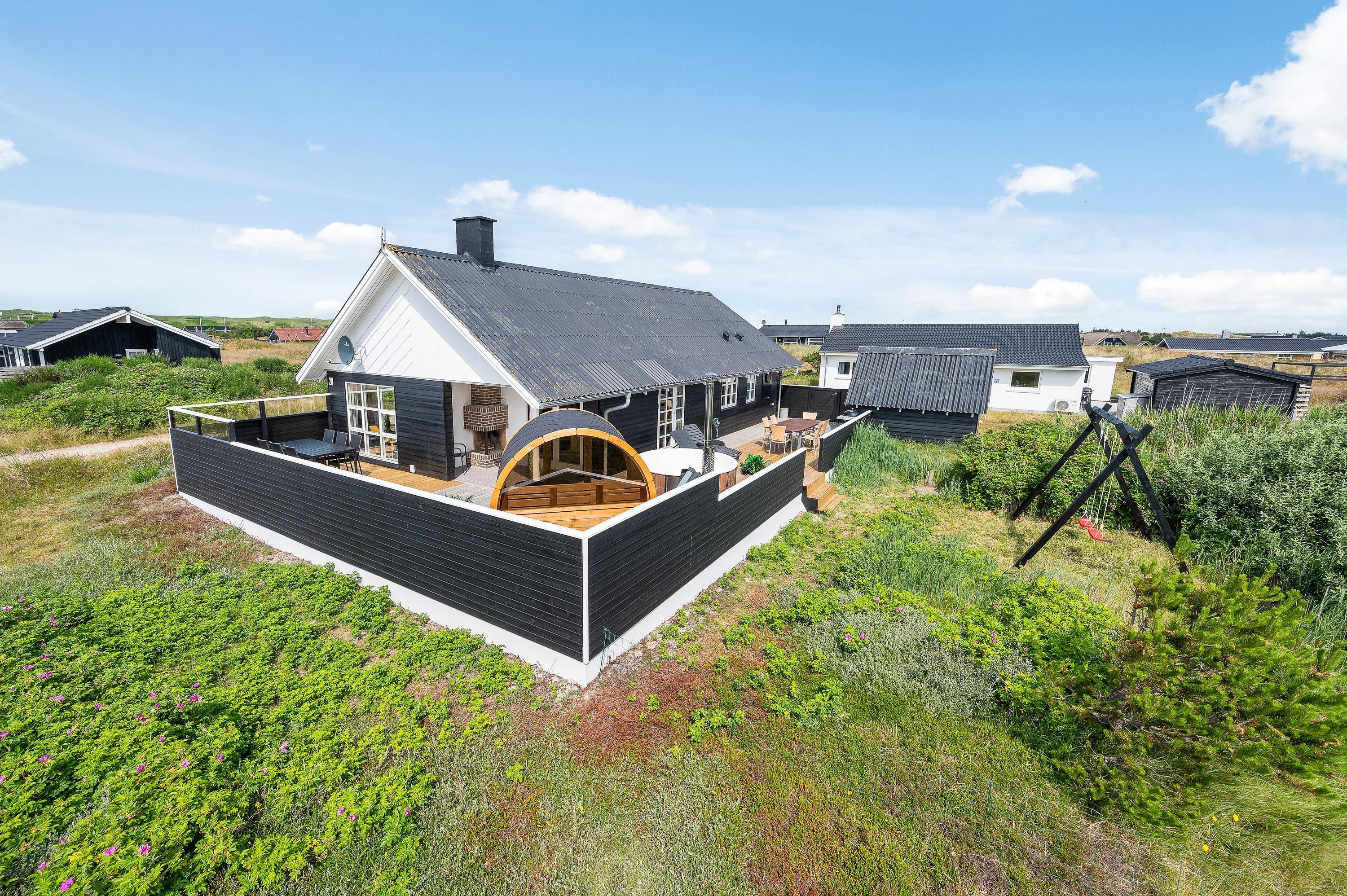 I en afstand af 500 meter fra det brusende Vesterhav på den danske vestkyst venter et hyggeligt og moderne indrettet sommerhus med plads til op til 6 personer på Rauhesvej 28. Har I hund er den også hjertelig velkommen. Sommerhuset ligger op til velvære og afslapning med vildmarksbad og udesauna.