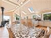 Den hyggelige opholdsstue indbyder til mange gode stunder med hele familien. Her kan I samles i sofaerne, mens brændeovnen spreder varme og sætter prikken over i'et til den helt rigtige feriestemning. Sommerhuset har desuden en energibesparende varmepumpe, som I med fordel kan benytte jer af til at holde en behagelig temperatur i rummet.