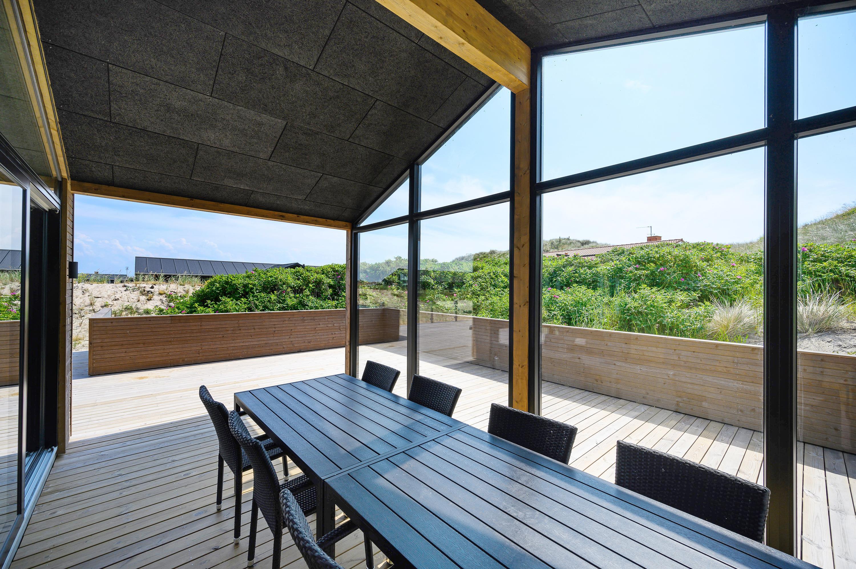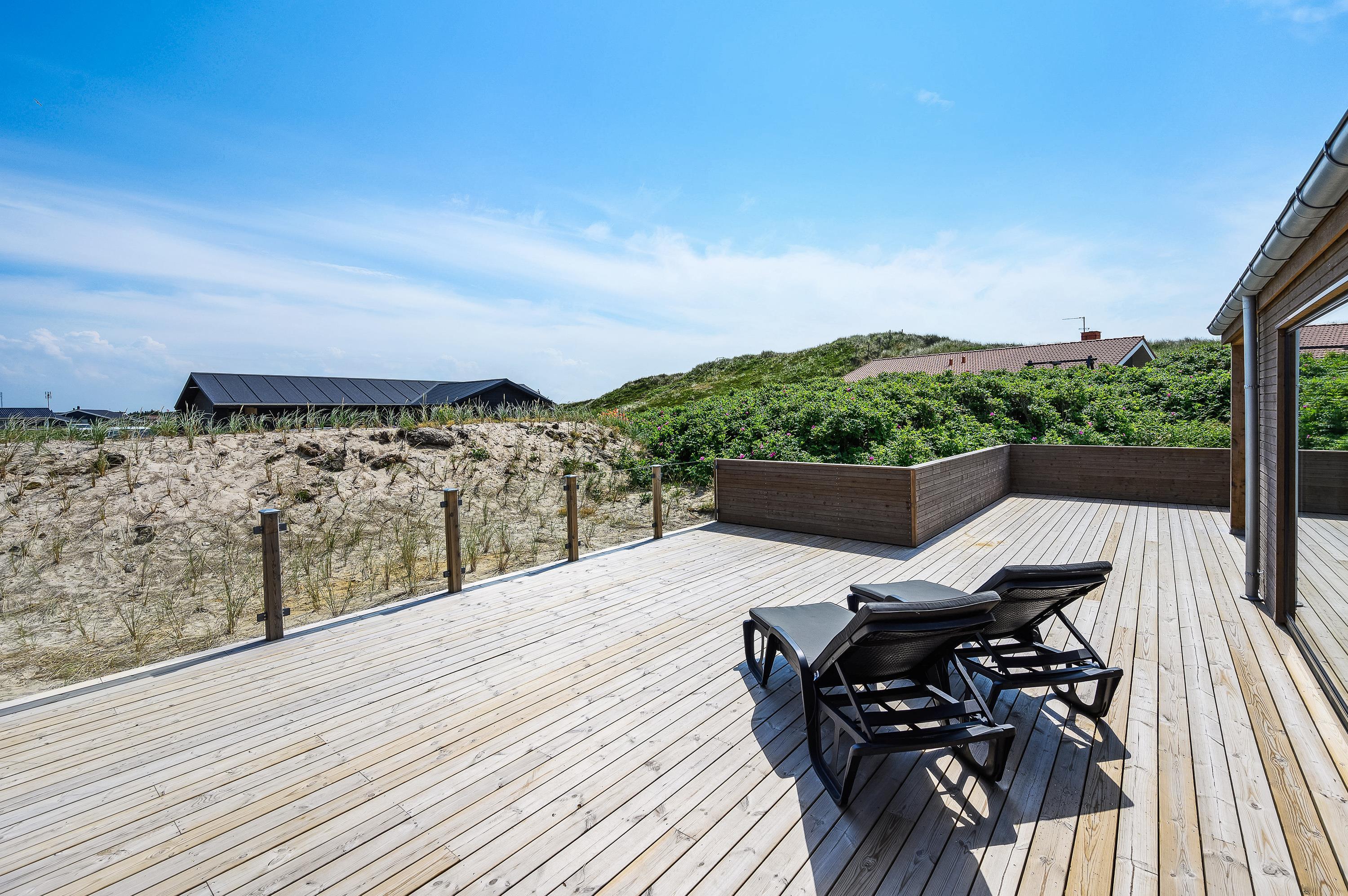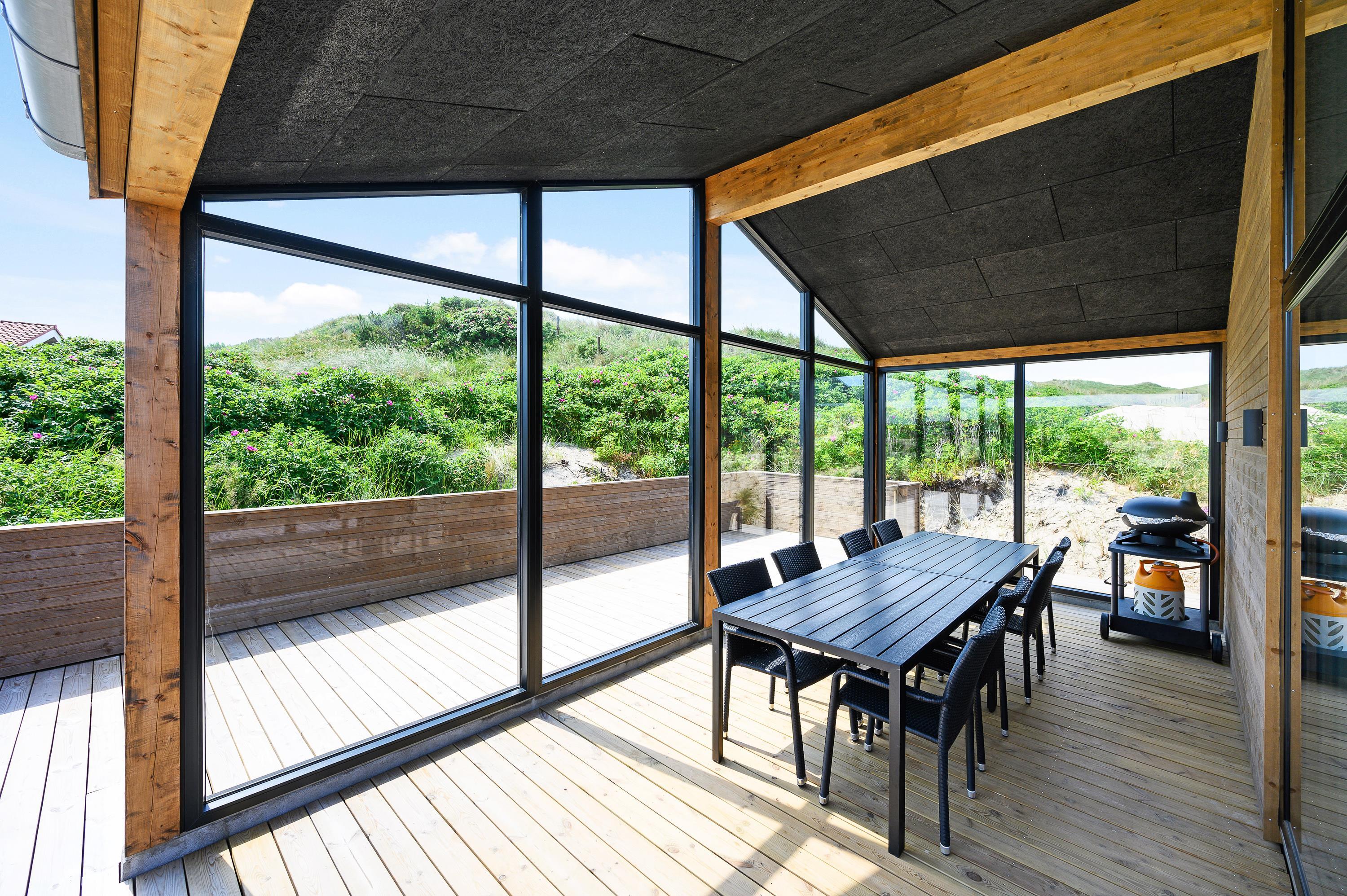 Havemøbler og liggestole står klar til jer, så I kan nyde ferien på den store træterrasse, der er lukket og delvist overdækket. Her kan I ligge og suge solens varme til jer, mens I har lyden af bølgernes brusen i baggrunden. I kan også rykke ind under den overdækkede og afskærmede del af terrassen - her er der altid ly og læ.