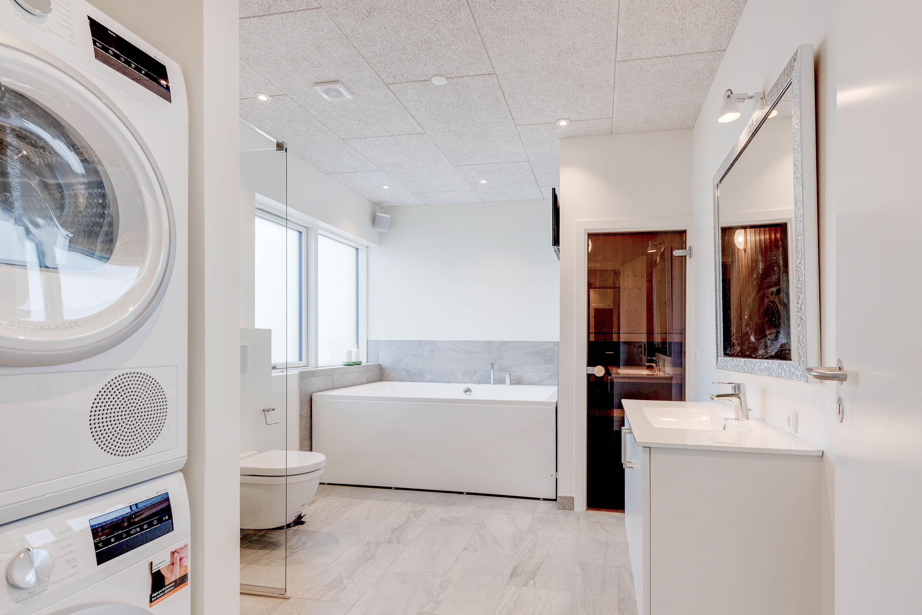 I feriehuset på Bjerregårdsvej 387 kan I gøre lidt ekstra for jer selv under ferien. På det ene af de to badeværelser finder I nemlig spabad og sauna, hvor enhver vil kunne slappe fuldstændig af og få ladt batterierne op igen. En tur i saunaen er ikke bare lækker, når man trænger til at slappe af, men er også perfekt efter en dukkert i Vesterhavet. Mens I sidder i spabadet, kan I passende tænde for fjernsynet på væggen.