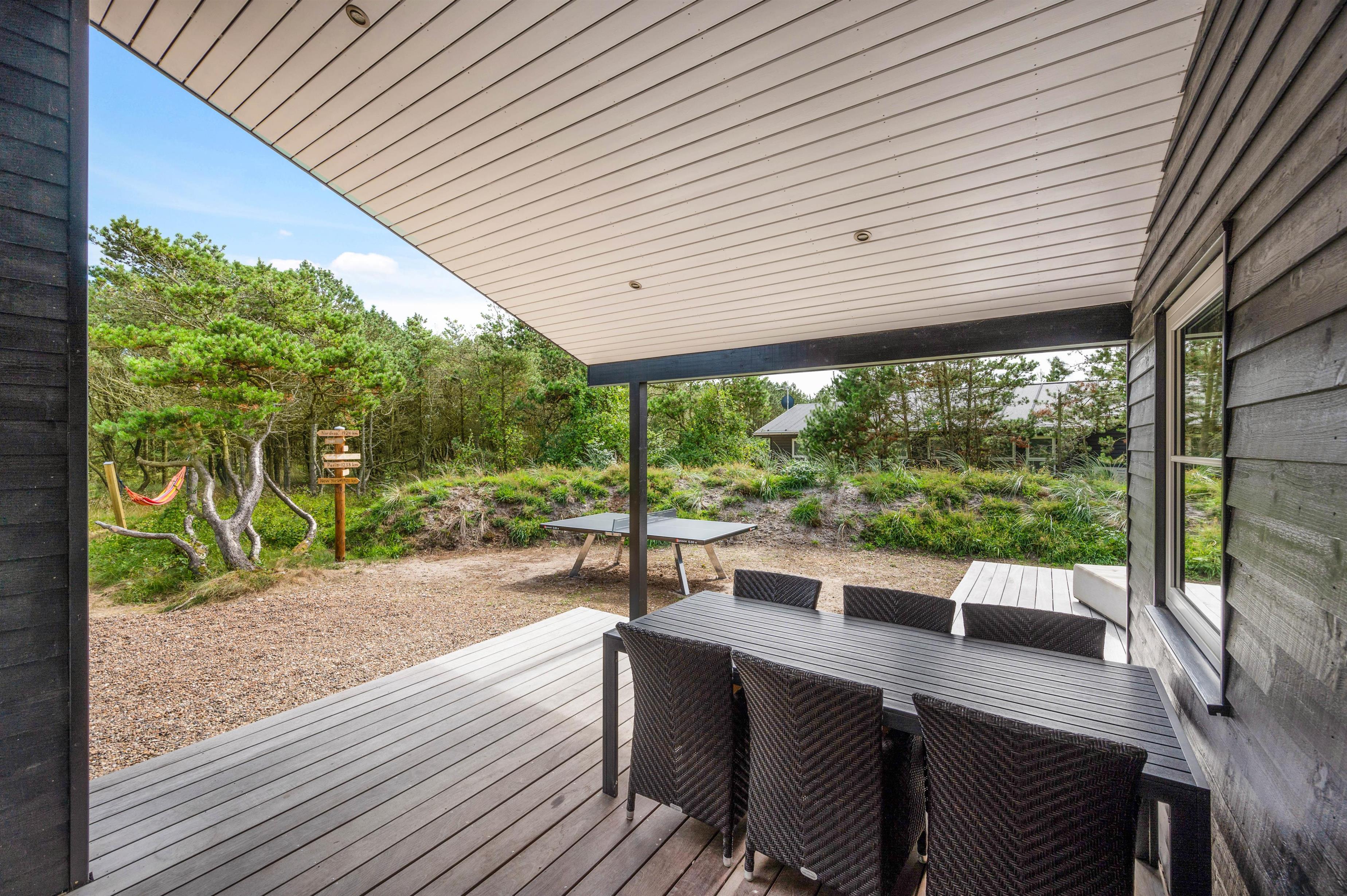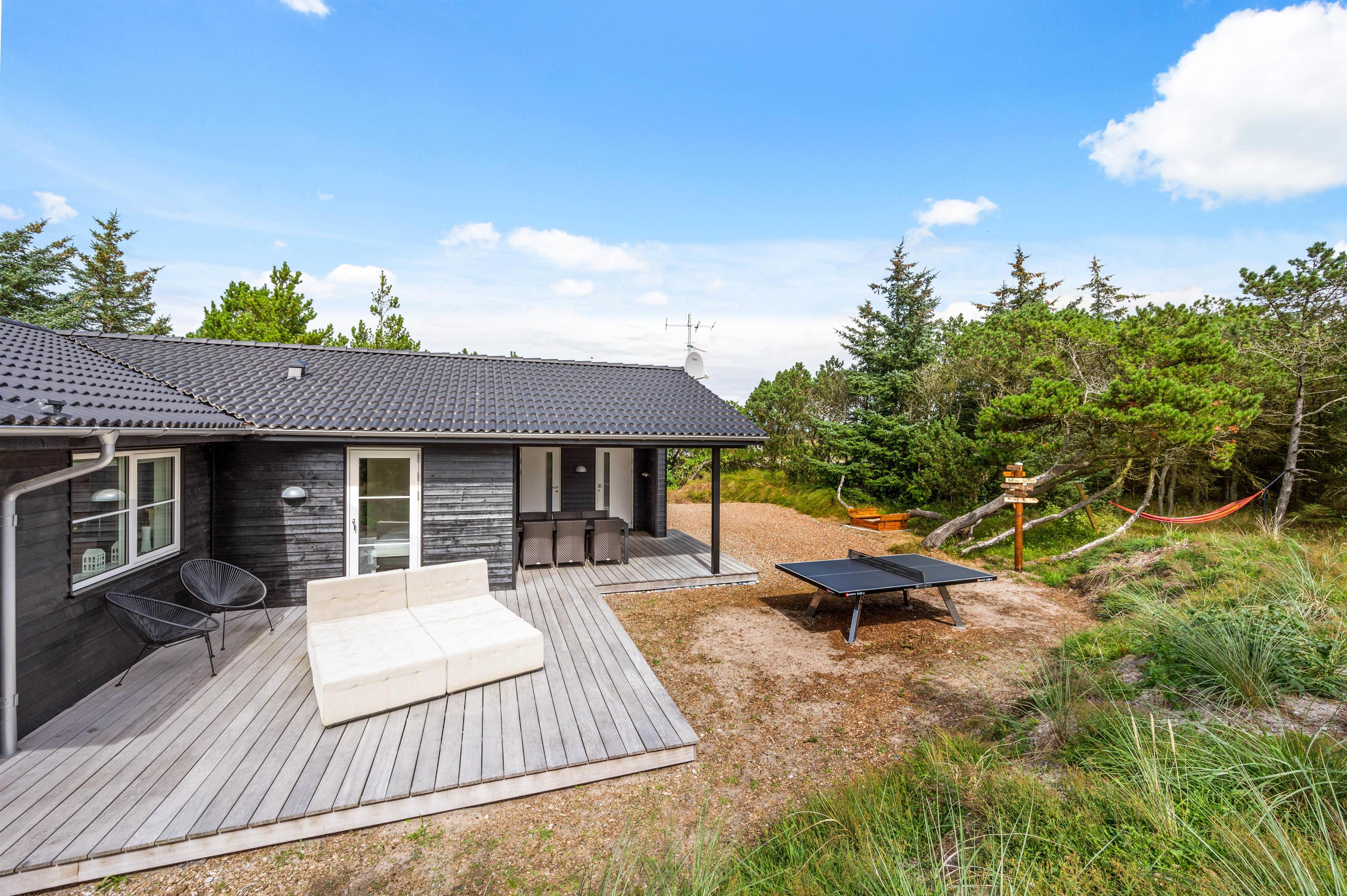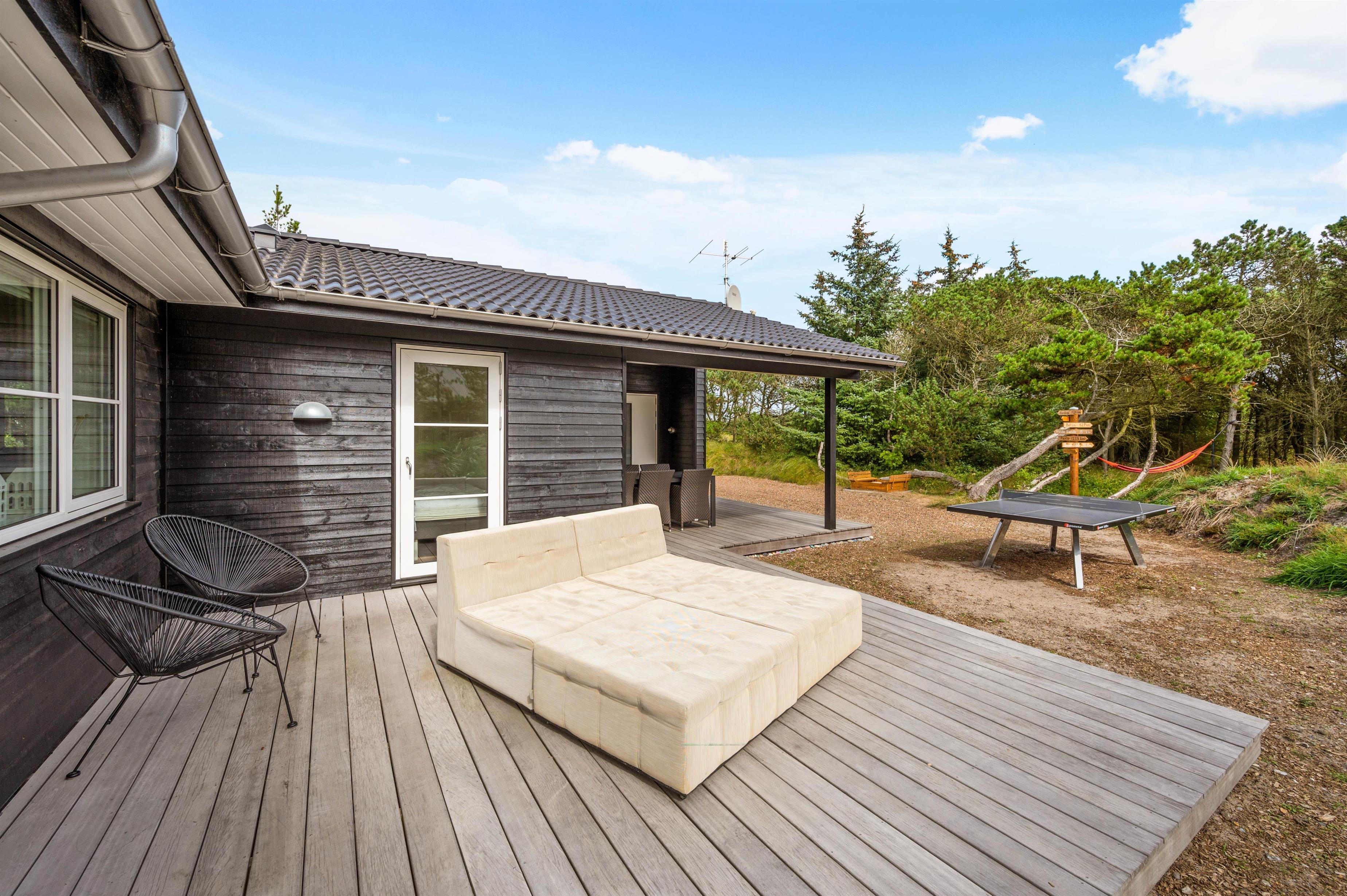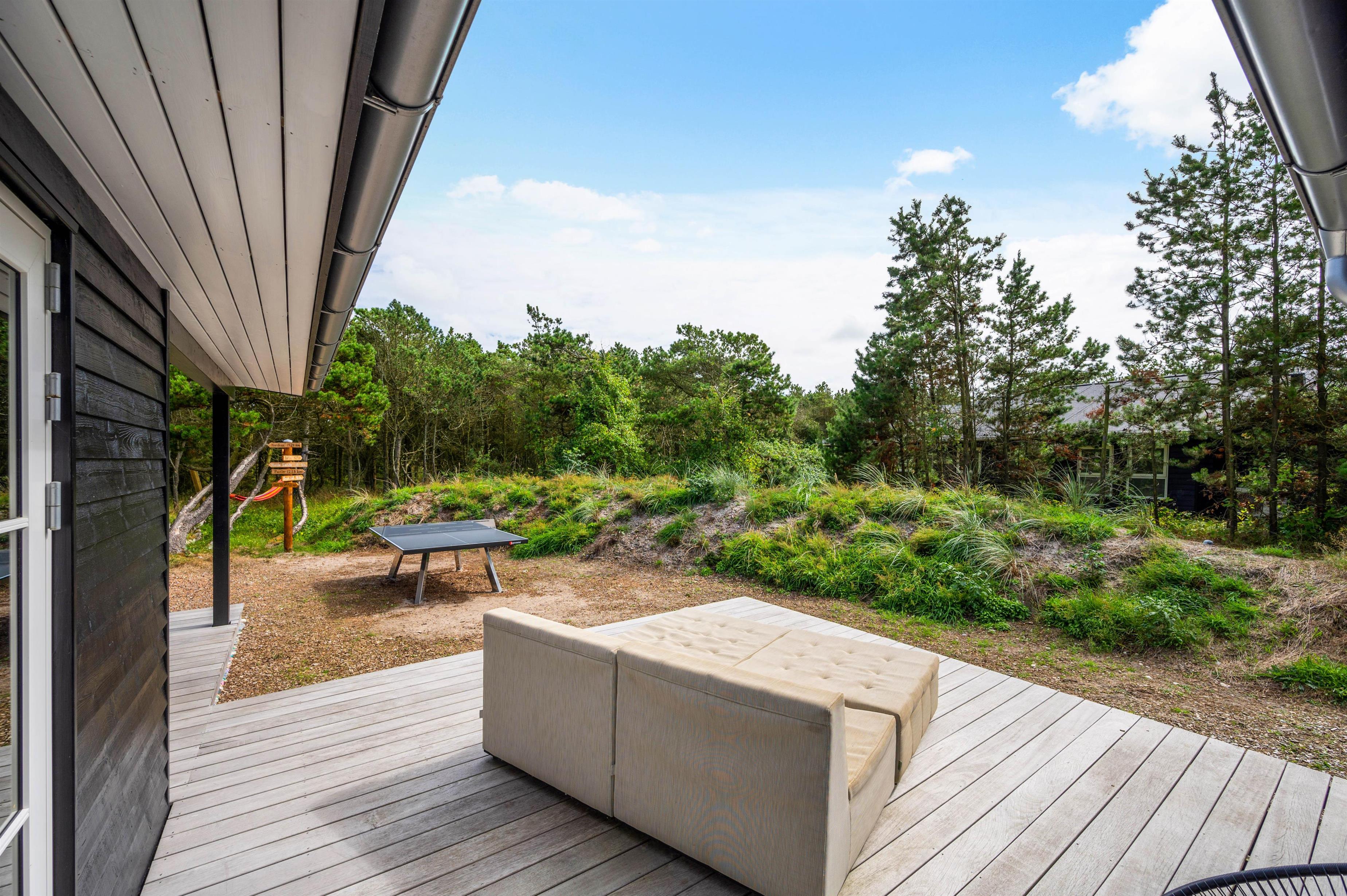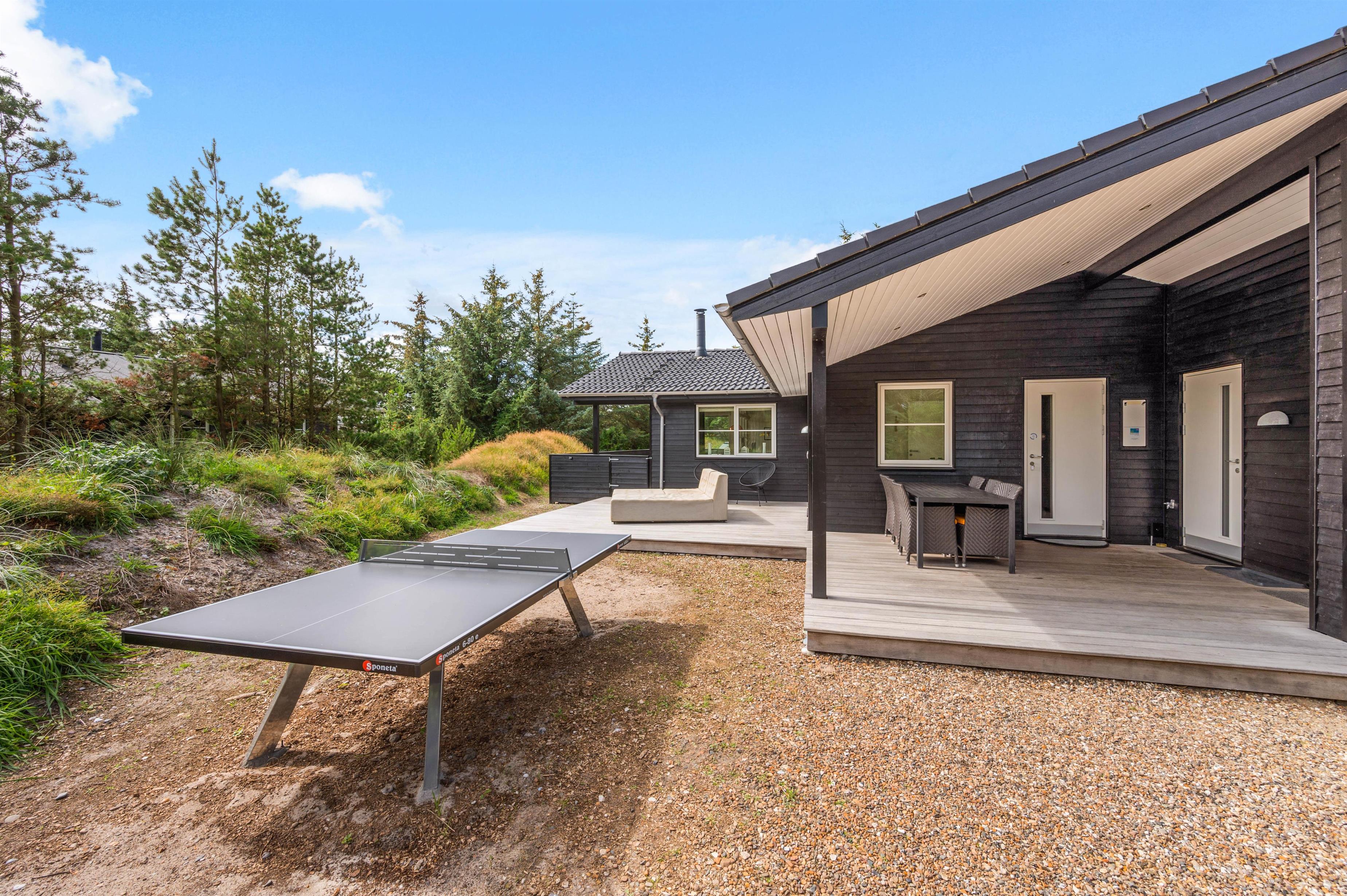 Derudover er den ene terrasse lukket, så du bare kan læne dig tilbage og nyde solens varmer og den friske luft uden at skulle bekymre dig om, at småbørn går på opdagelse alene. Ved sommerhuset er der bordtennis, så der kan afholdes spændende turneringer med hele familien.