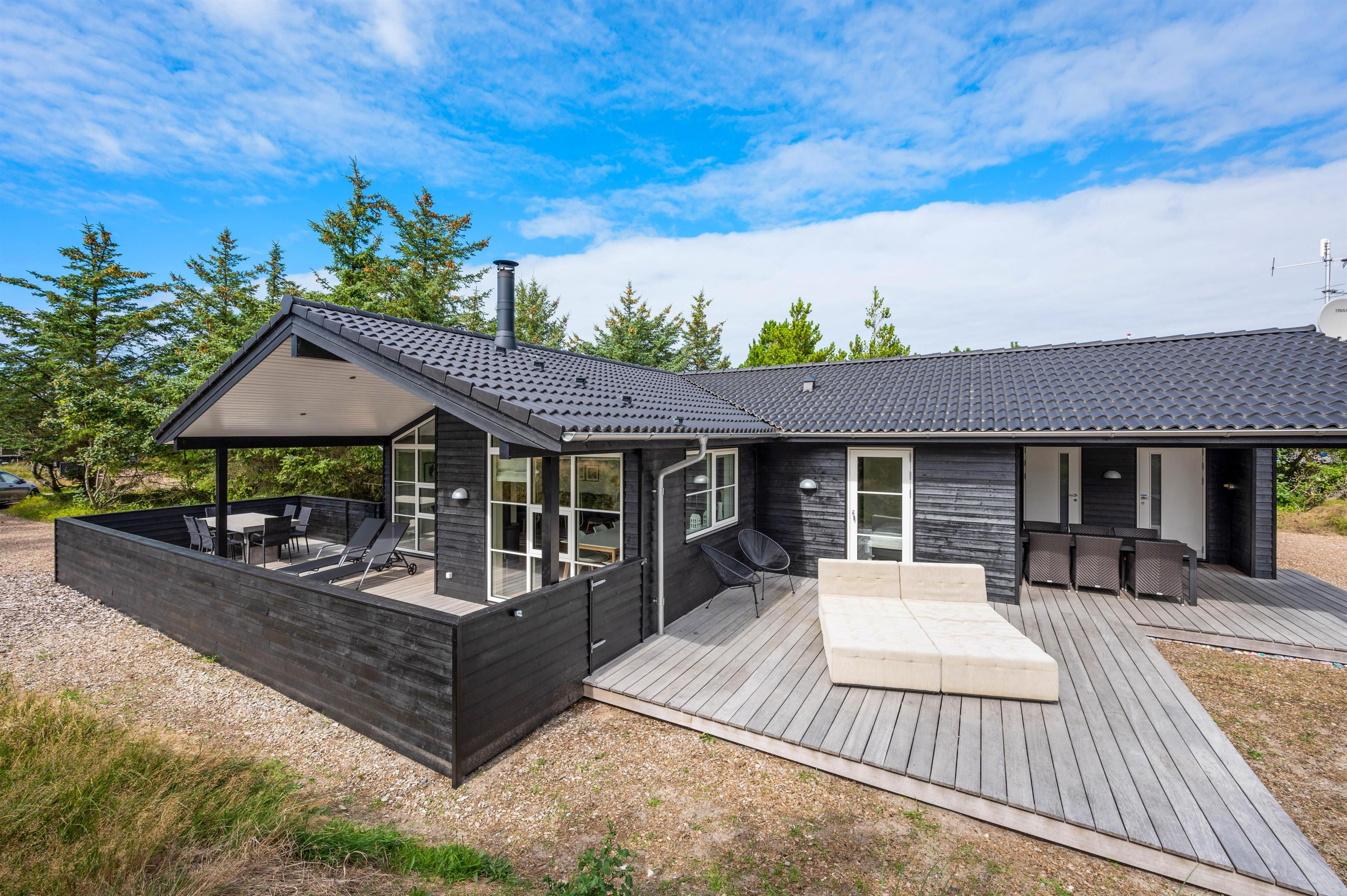 Skønt kvalitetshus kun ca. 10 minutters gang fra Vesterhavet. Det er moderne indrettet og har gode faciliteter såsom sauna, spabad og varmepumpe til rådighed. Det er bygget på en læfyldt grund, så I kan få mest mulig ud af de gode terrasser, hvoraf den ene er lukket.