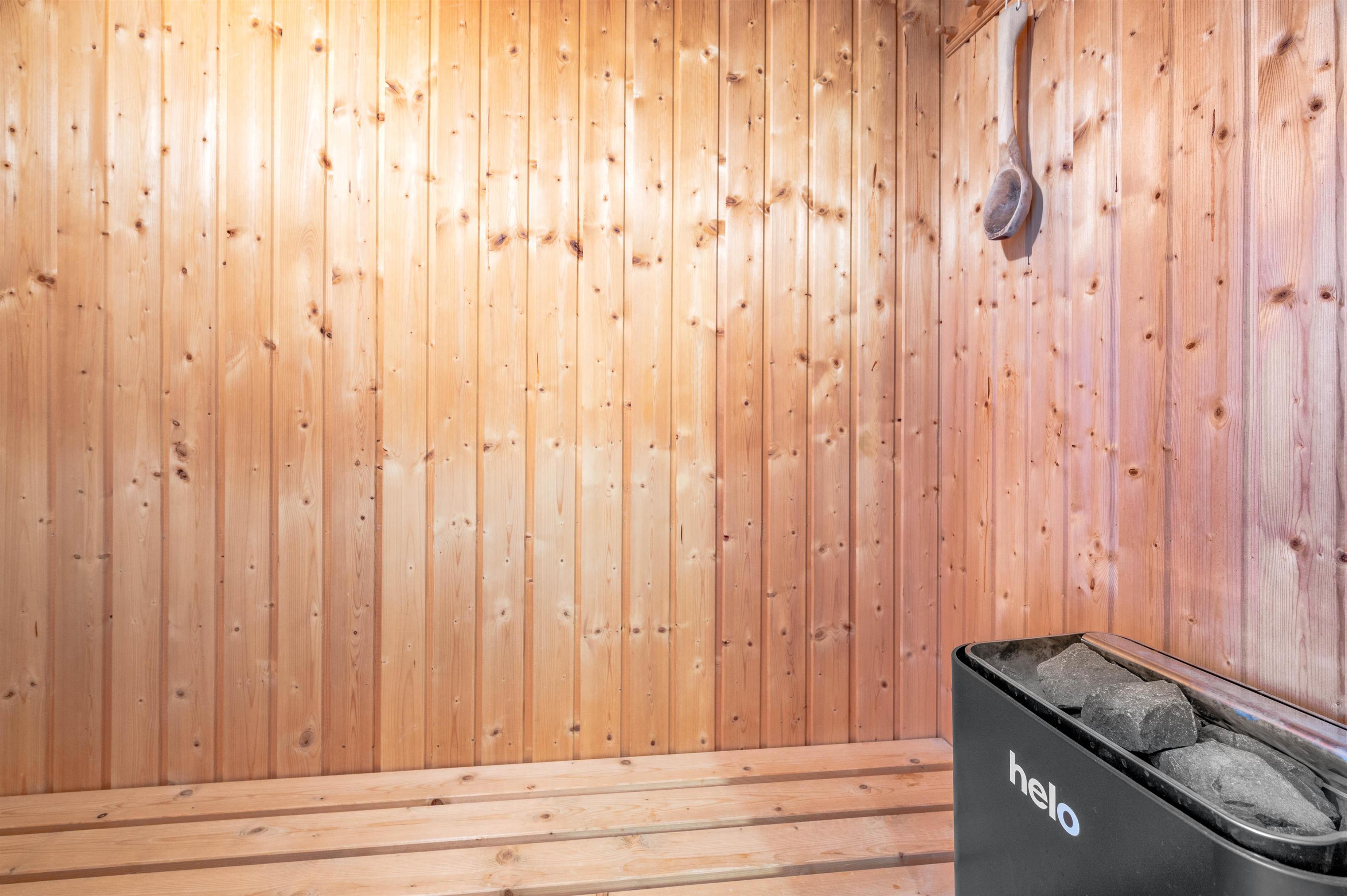 Planløsningen i sommerhuset byder derudover på 3 rummelige soveværelser med gulvtæppe samt ét badeværelse. I de 2 soveværelser finder I en dobbeltseng, mens det sidste er indrettet med en enkeltmandsseng. Fra badeværelset har I adgang til saunaen, som bidrager med lidt ekstra luksus på jeres ferie. Her kan I for alvor få ladet batterierne op efter en skøn dag ved stranden. I sommerhuset finder I også en vaskemaskine.