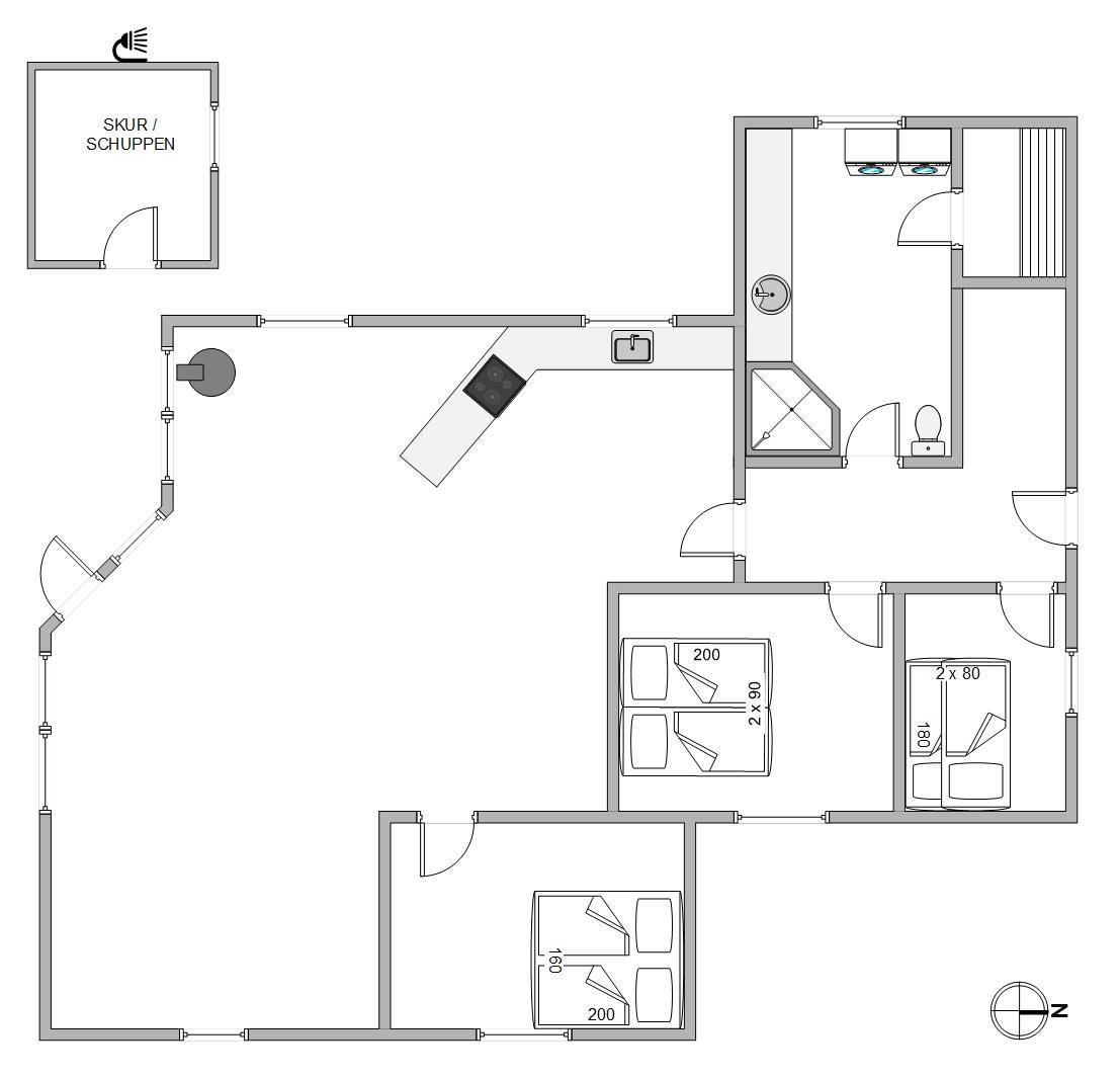 Beliggenheden giver også anledning til gode naturoplevelser væk fra feriehuset, for Vesterhavet med den gode sandstrand ligger kun en god gåtur herfra, så I på en god sommerdag nemt kan komme ned og nyde den friske luft og lege i vandkanten. Og når I kommer tilbage til feriehuset, kan I bruge den praktiske udebruser til at skylle salt og sand af med. Men på køligere dage tiltrækker Vesterhavet også besøgende, da det er forfriskende med en god gåtur, hvor I sikkert også vil blive fascineret af de brusende bølger.
