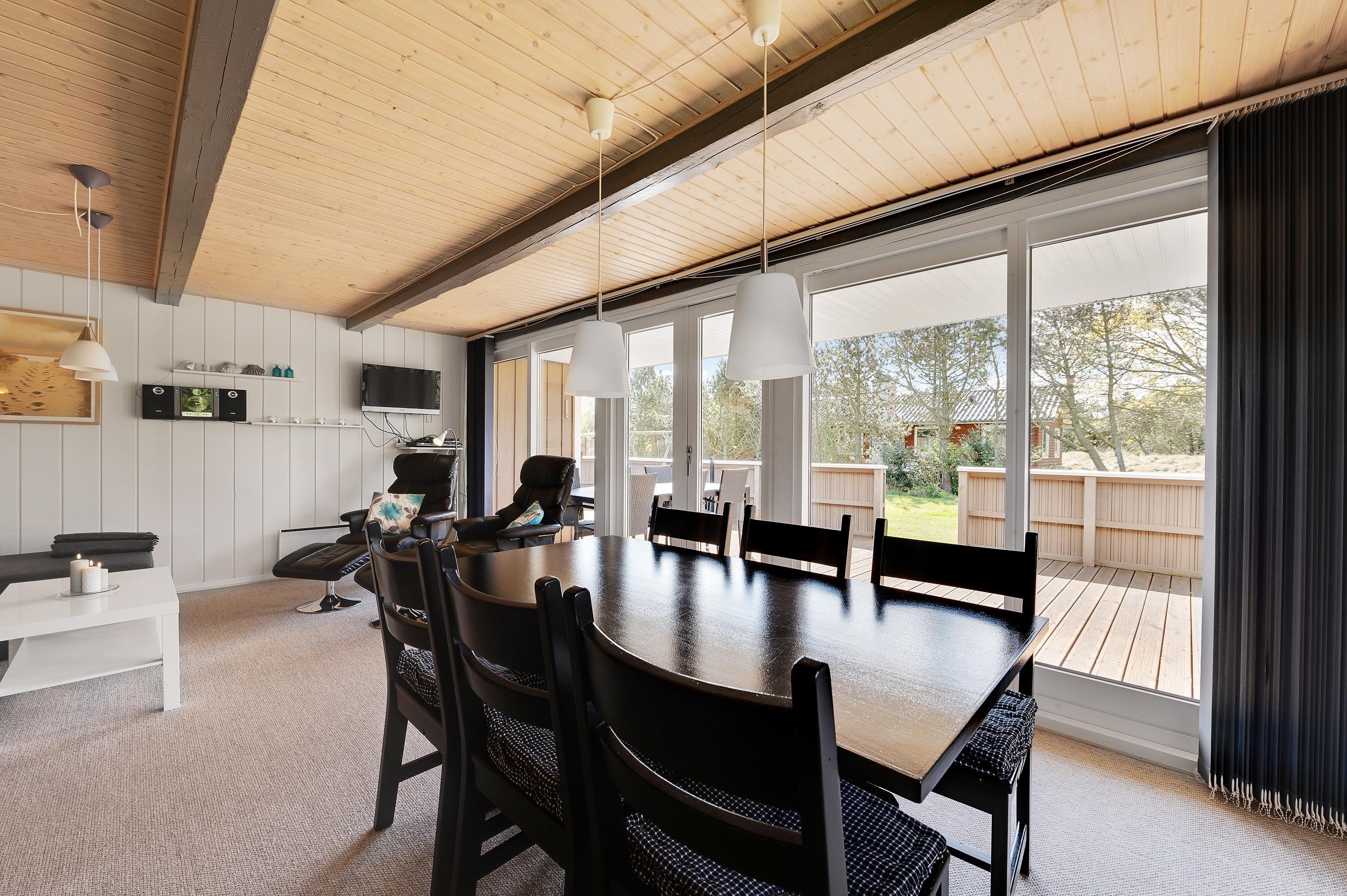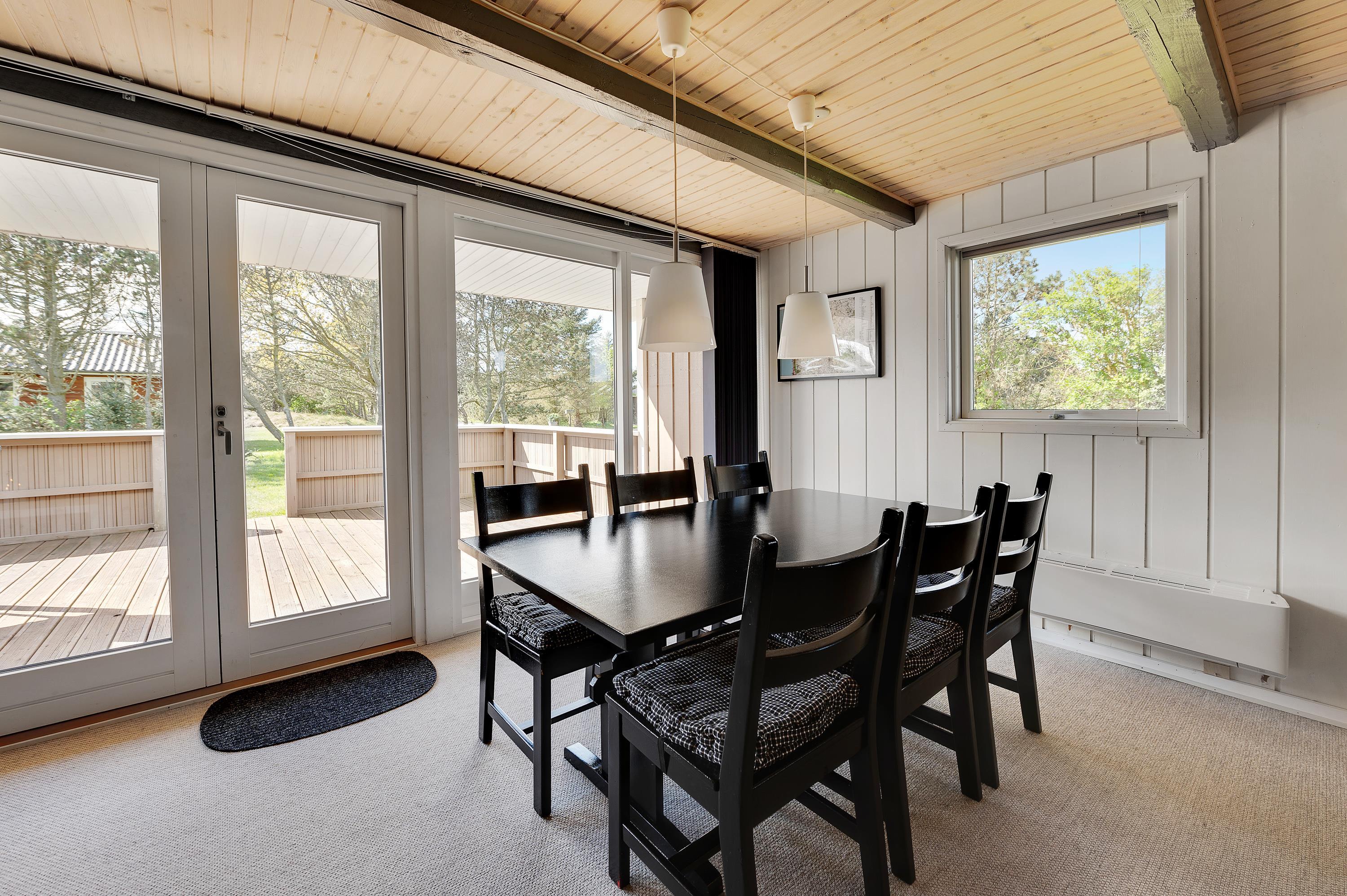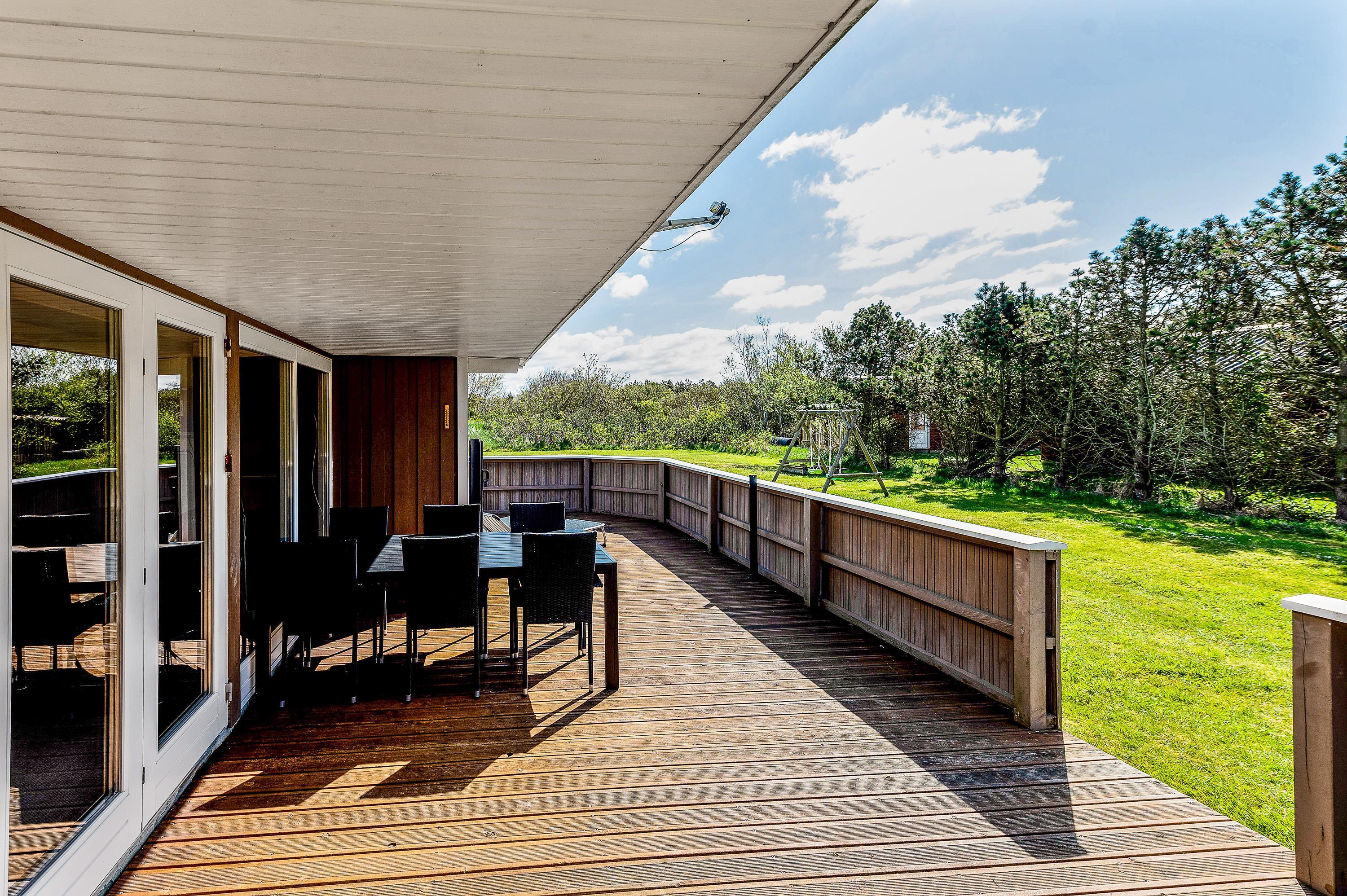 Her kan I holde en hyggelig familieferie i et meget velindrettet feriehus med lys og venlig indretning. Sommerhuset har 2 gode, store dobbeltværelser med masser af skabsplads samt et fint værelse med køjesenge. Feriehuset har en rolig beliggenhed på en afskærmet grund med plads til leg og boldspil i den smukke natur i Vestjylland ved Vesterhavet.