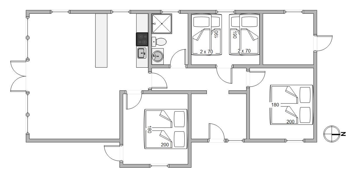 Her er 3 indbydende soverum, 2 med dobbeltsenge og 1 med etagesenge, som giver god plads til familien på 6 personer. Det er deuden tilladt at have 1 hund med i sommerhuset, så jeres firbenede ven også kan komme med på ferien.