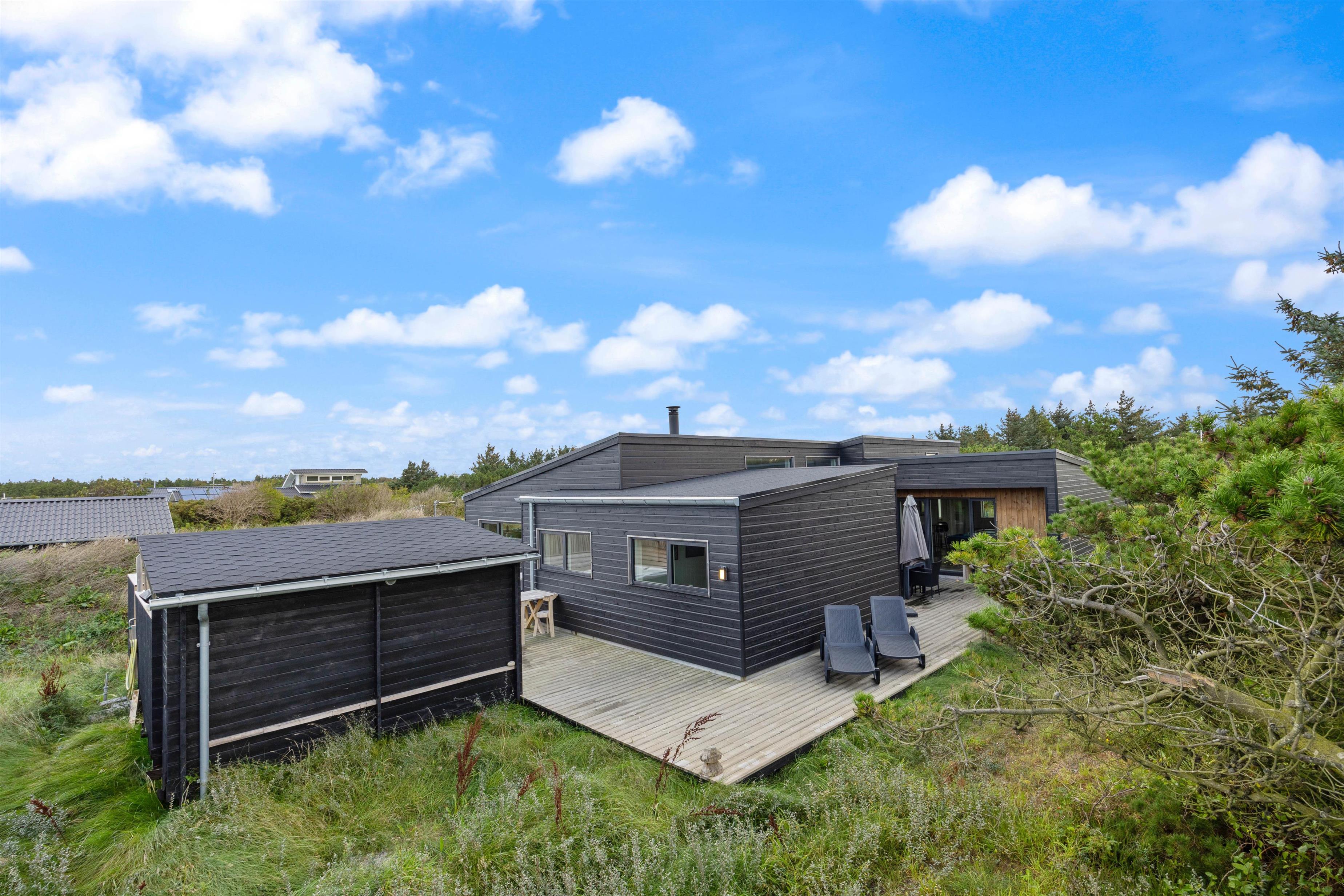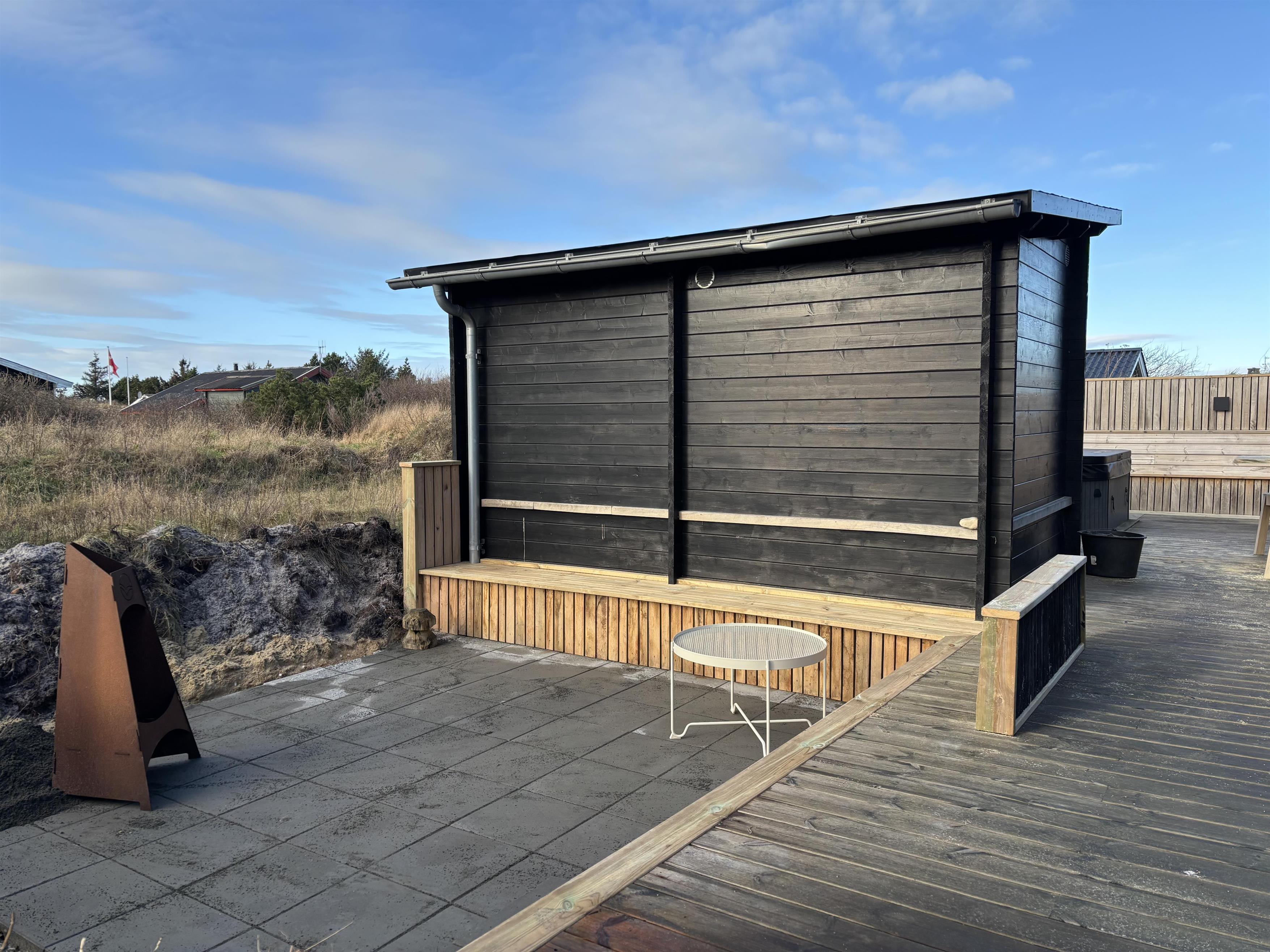 Dette femstjernede feriehus i Bjerregård inviterer til en luksuriøs ferie ved Vesterhavet med noget for enhver smag. Den moderne og stilfulde indretning til 8 personer indbefatter blandt andet et stort aktivitetsrum med billard, bordfodbold og airhockey. Prikken over i’et er det fantastiske udendørsområde med udendørs spabad og sauna på terrassen.