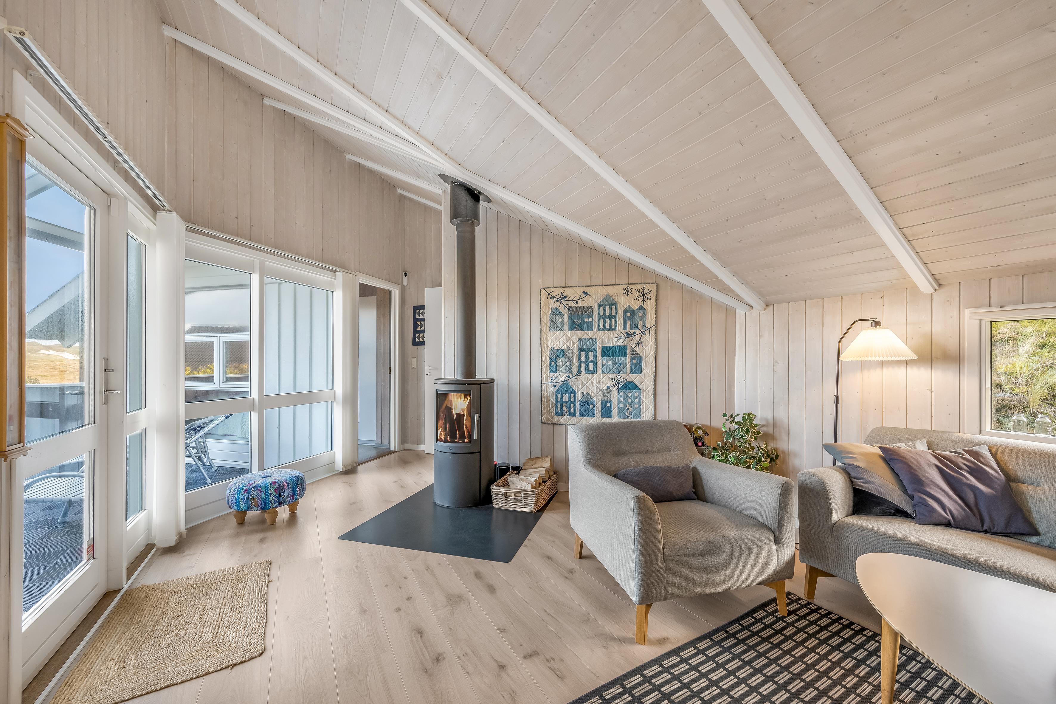 Brændeovnen er et naturligt samlingspunkt i opholdsområdet og skaber ekstra hygge på køligere aftener. Komforten suppleres af en varmepumpe, som sikrer en behagelig temperatur året rundt. Efter en dag i den friske luft kan saunaen varme kroppen igennem, og I kan lade ny energi fylde jer – et højdepunkt, der gør opholdet endnu mere afslappende.