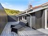 Der er gode terrasser tilhørende sommerhuset, som strækker sig rundt fra øst, mod syd og mod vest. Mod øst er terrassen særdeles anvendelig i morgen og formiddagstimerne og til hen på eftermiddagen. Herefter kan I benytte den sydvendte del, hvor I er helt uforstyrret, ligesom I er på den vestvendte terrasse. Mod vest er terrassen endvidere delvis overdækket, ligesom den er delvis afskærmet både mod syd og mod vest. Der er en sandkasse og en gynge til de små.