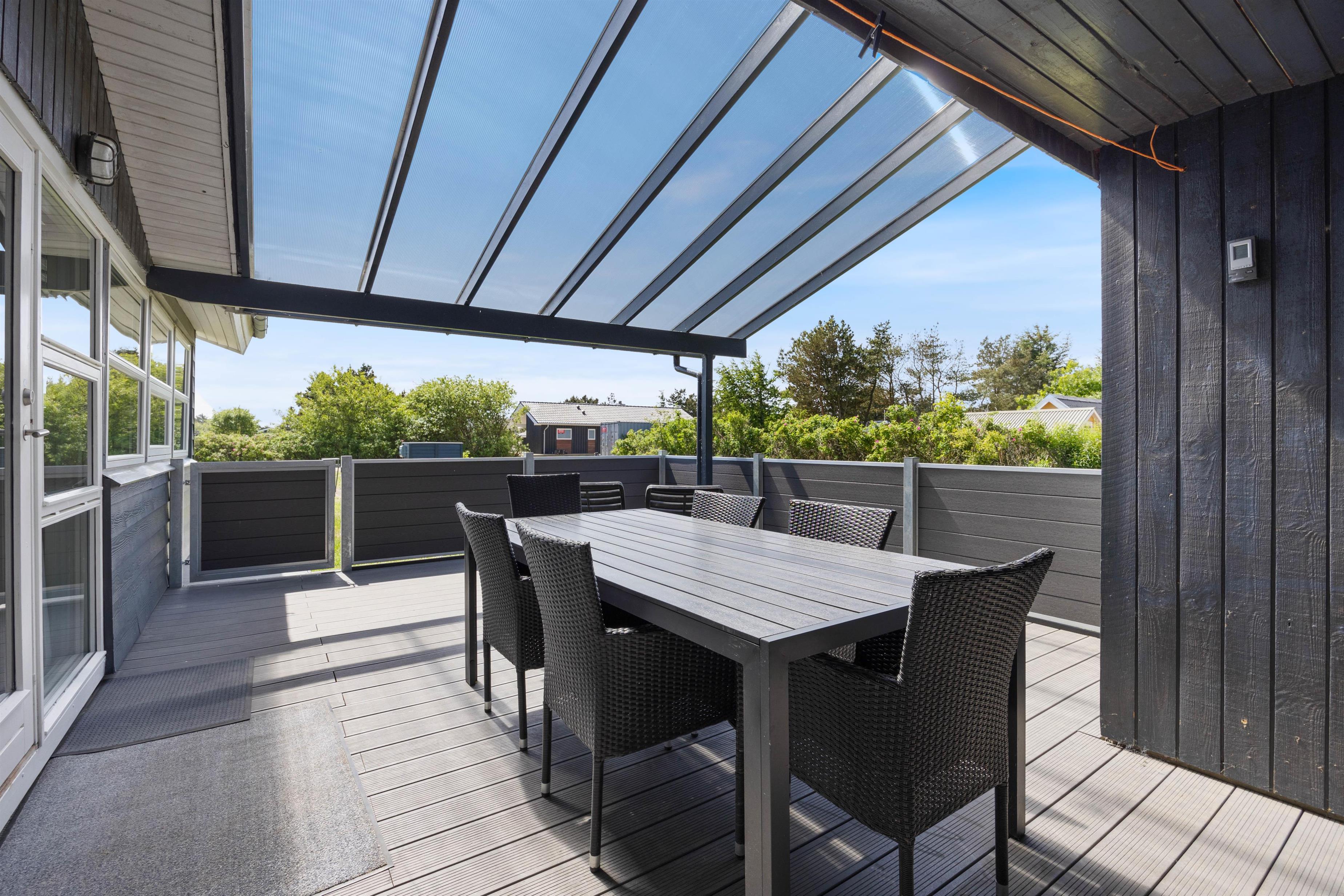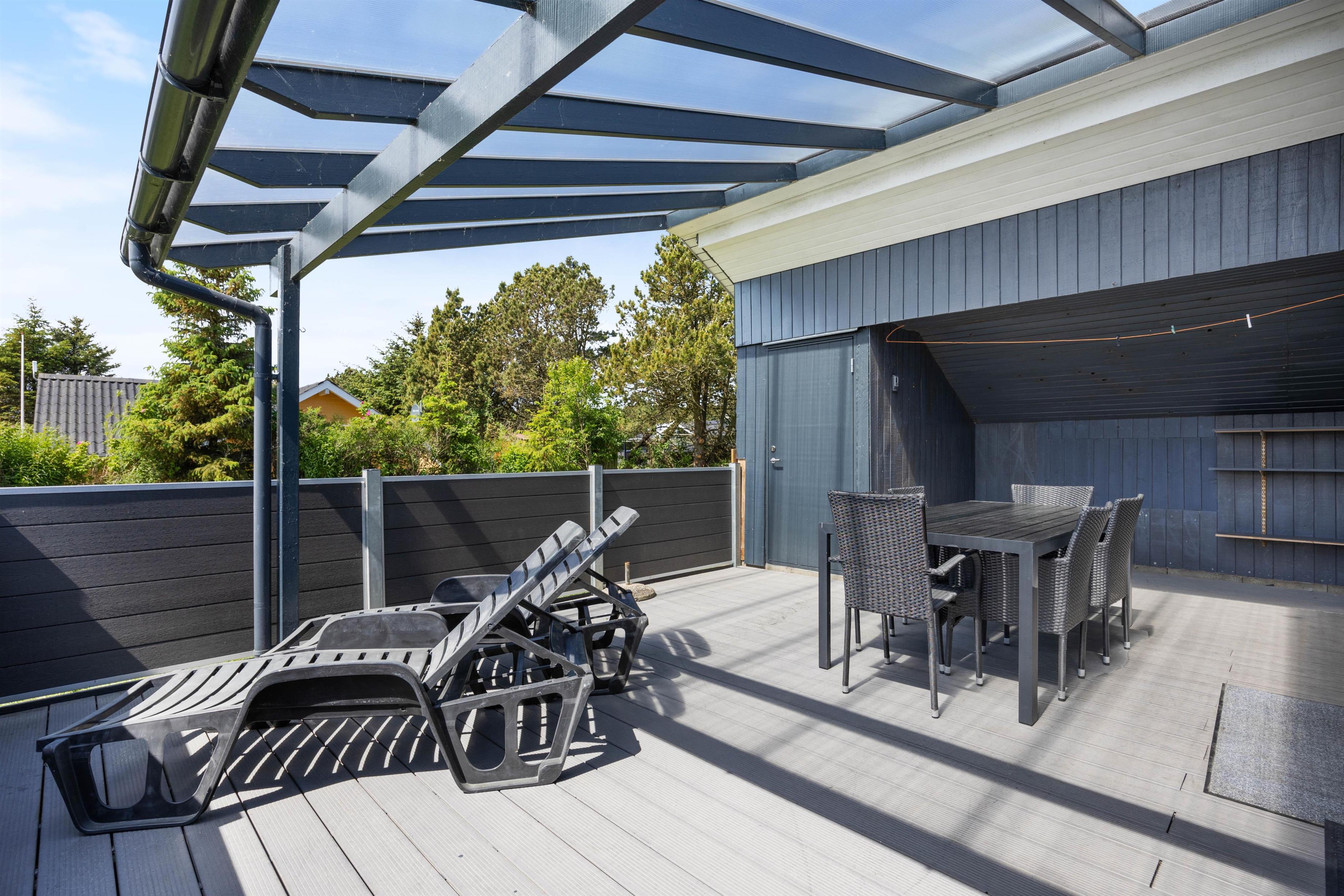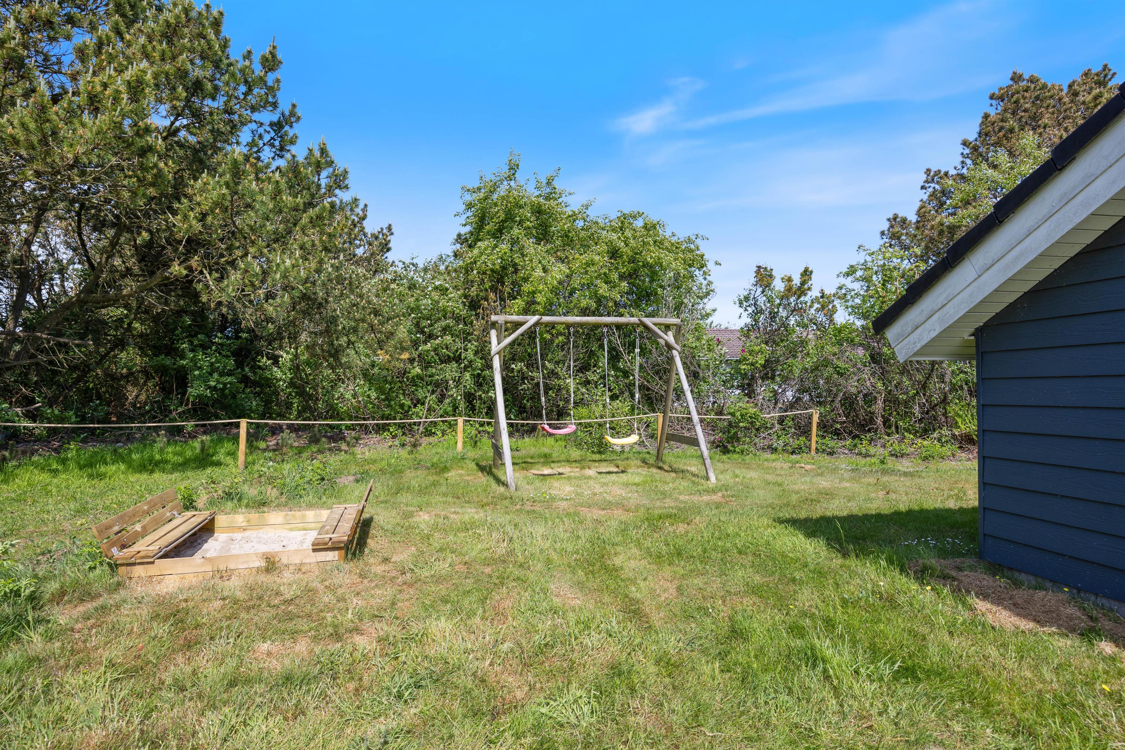 Sommerhuset er virkeligt hyggeligt og har de perfekte forhold til dig, der gerne vil opholde dig så meget som muligt ude i den friske luft. Terrassen er simpelthen skabt til udeliv, idet en stor del er overdækket og der er god afskærmning. Det gør at I altid har mulighed for at hygge jer i læ for vestenvinden. Terrassen er udstyret med havemøbler, liggestole og grill. Til de små er der opstillet gynge og sandkasse.