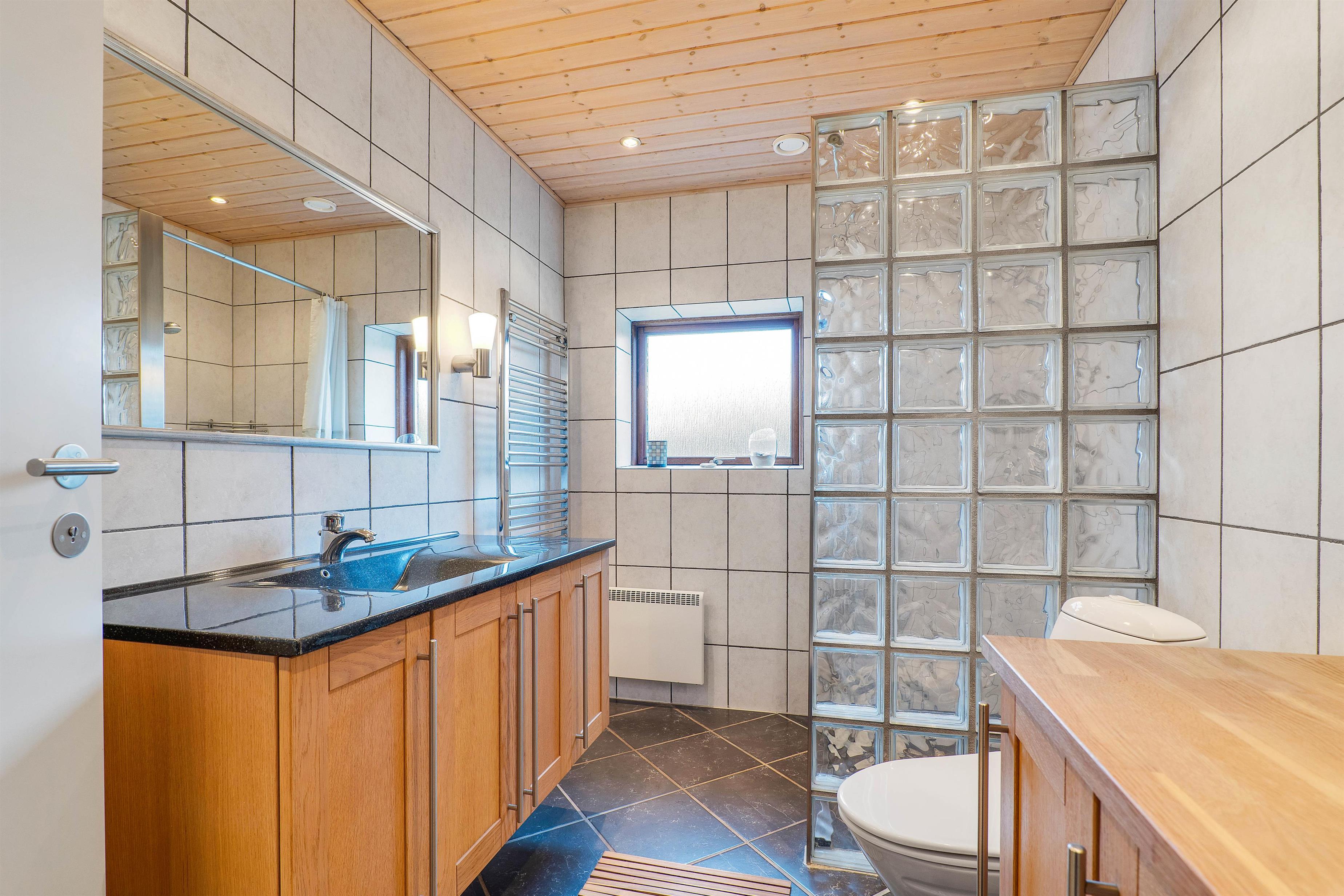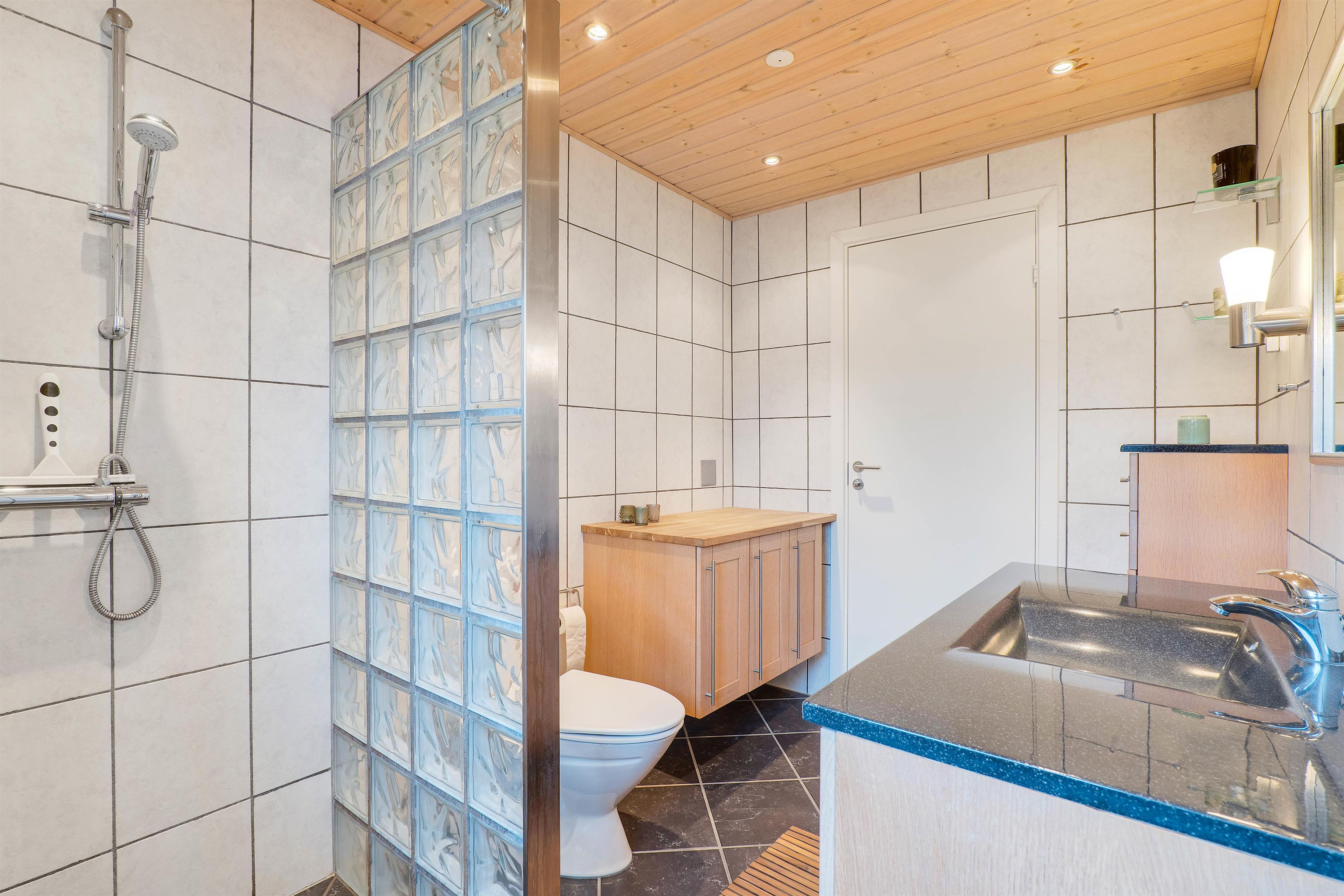 Spiseafdelingen ligger i forbindelse med køkkenet. Her finder I både opvaskemaskine, mikroovn og en 80 liters fryser. Badeværelset er lækkert indrettet med en dejlig bruseniche og håndklædetørrer på væggen. Sommerhuset har desuden en vaskemaskine, så I har mulighed for at vaske lidt tøj eller håndklæder. Feriehusets 2 soveværelser er rummelige og begge med gode dobbeltsenge og udgang til terrassen.