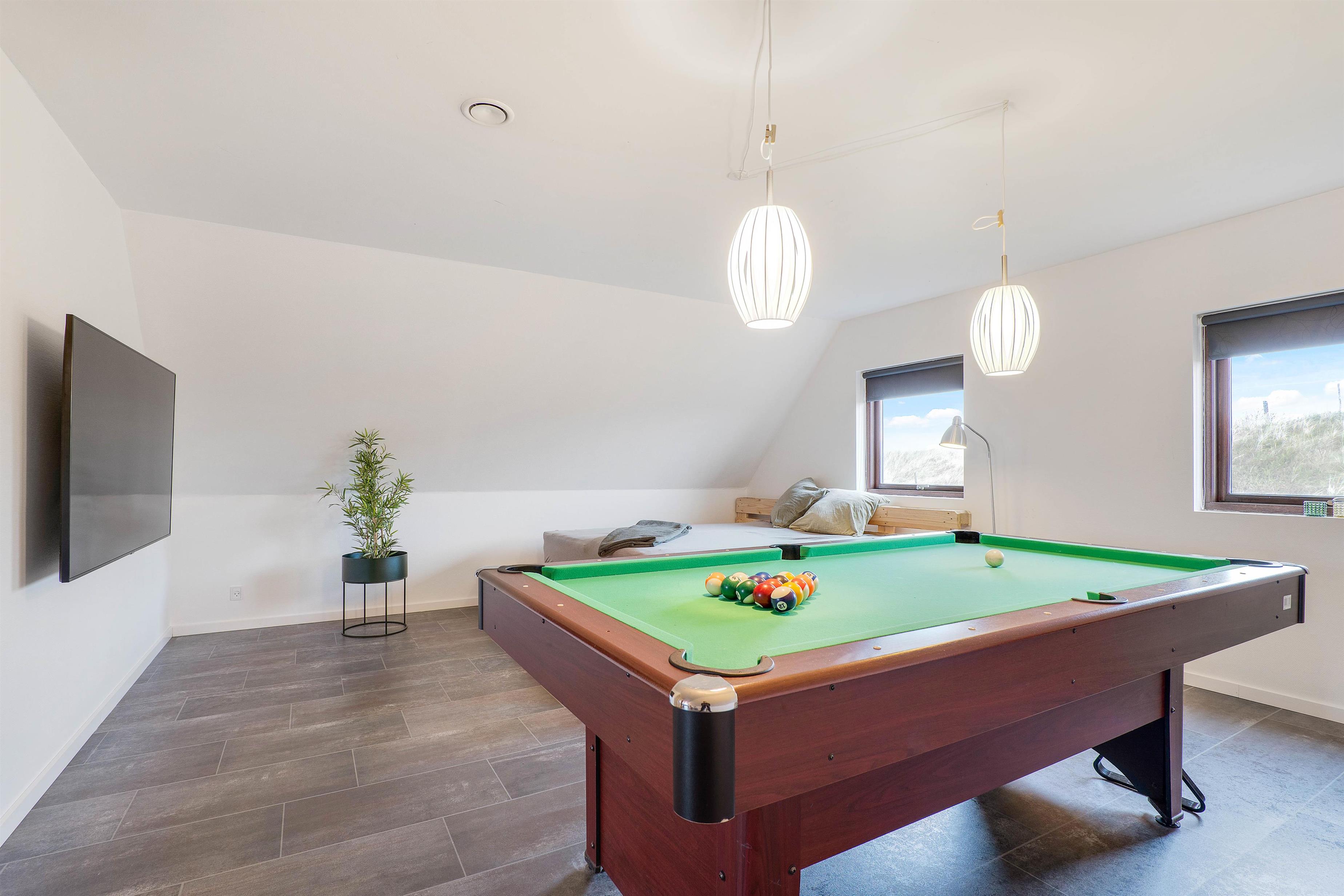 Sommerhusets absolutte highlight er aktivitetsrummet på 1. sal. Her vil både store og små kunne bruge mange timer med de forskellige spil, bl.a. billard.