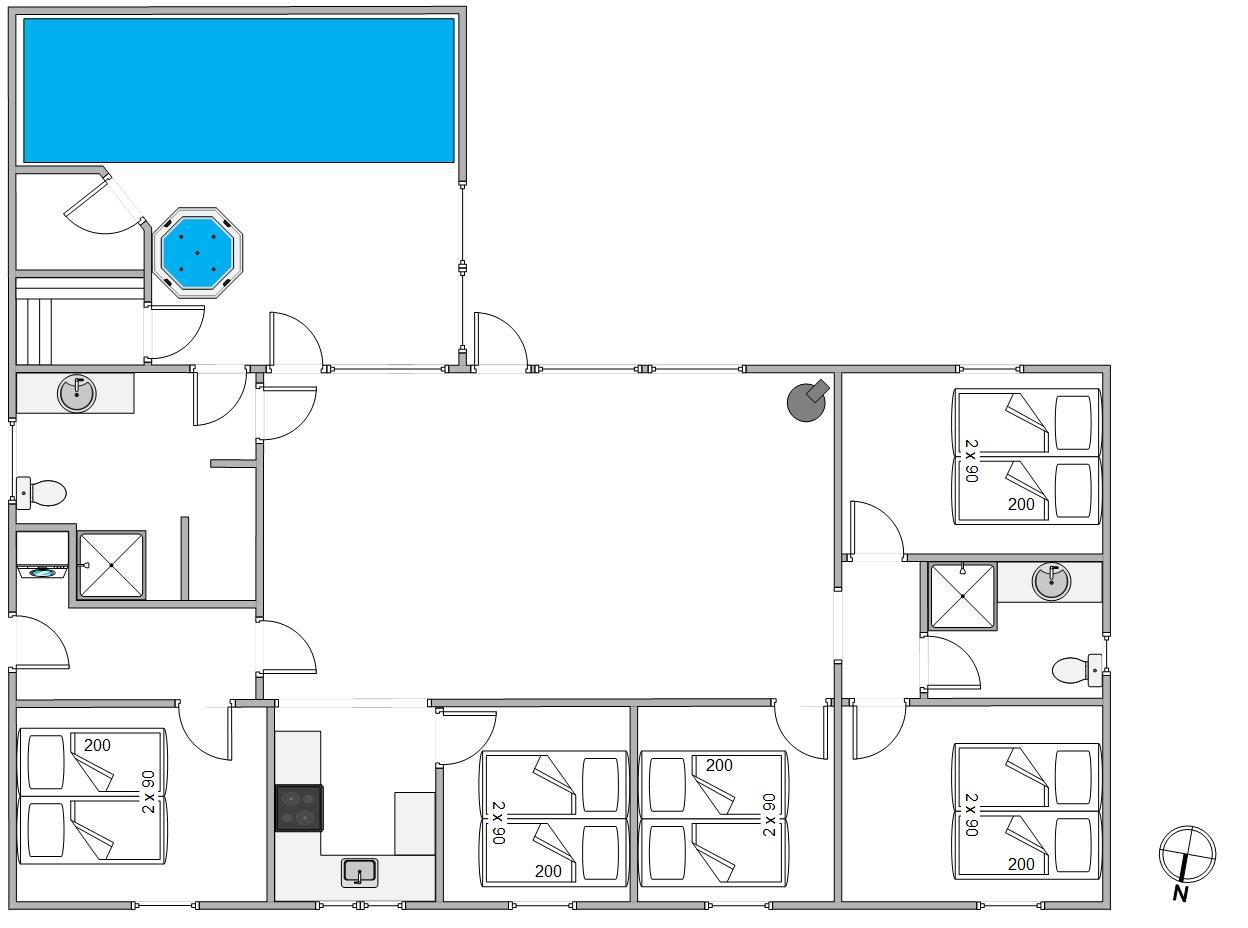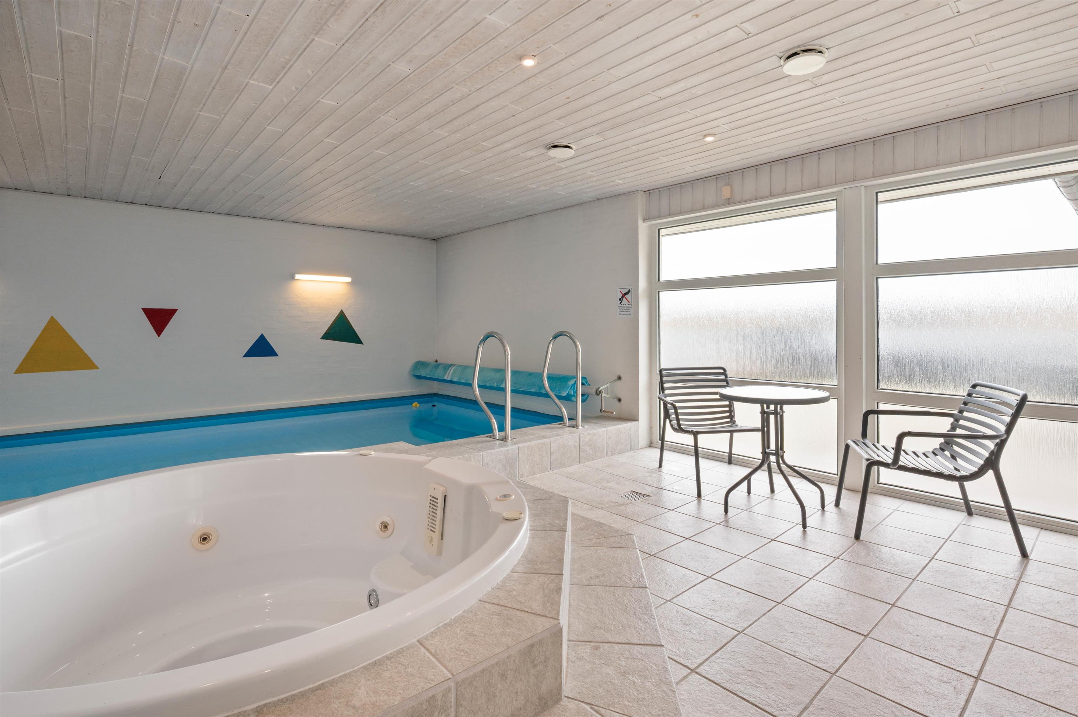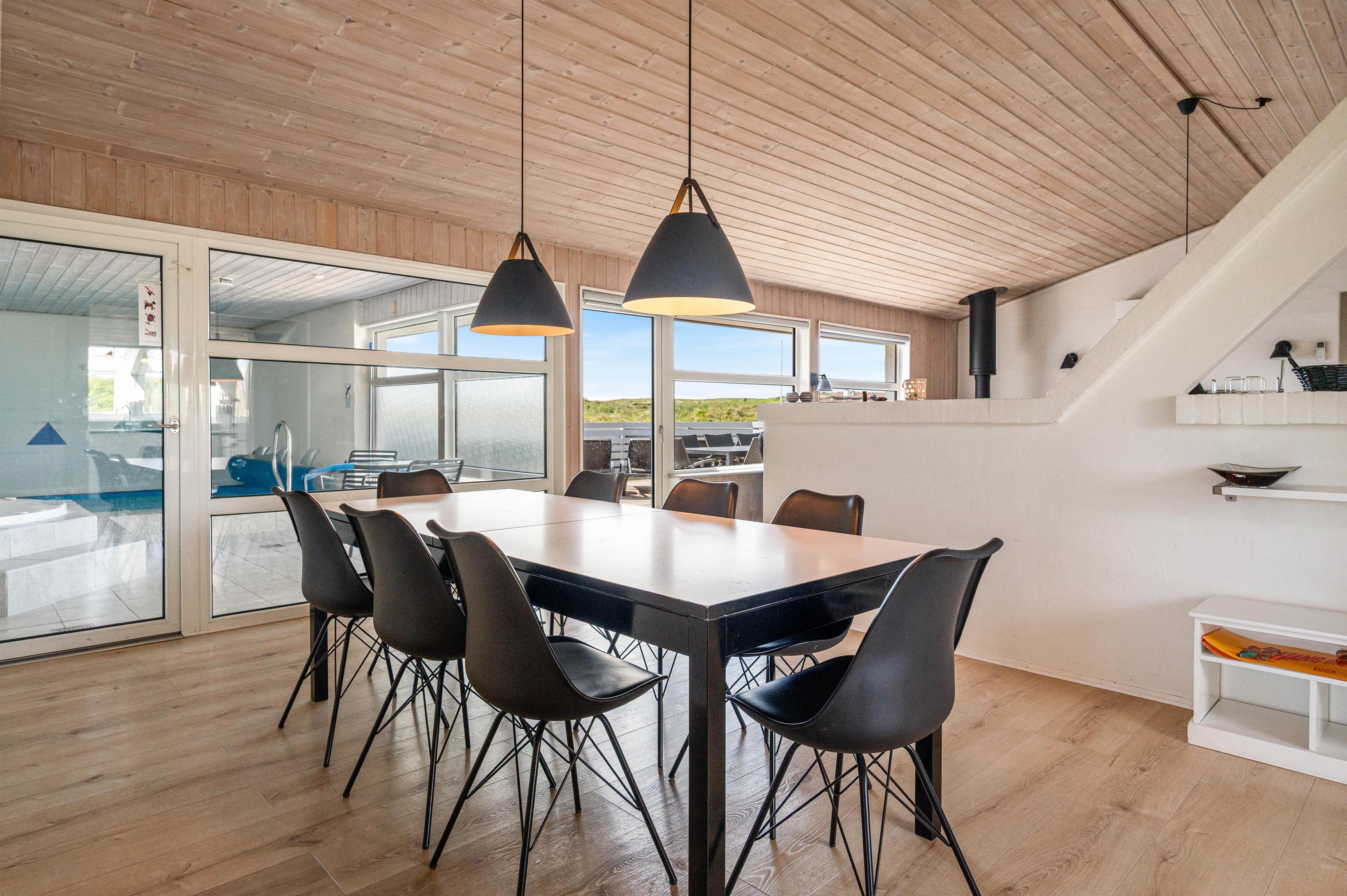 Ta’ jeres vennepar, forældre eller børnebørn med på ferie i dette dejlige feriehus. Her er plads til hele 10 personer og her har I jeres helt egen pool med integreret spa og sauna. Poolområdet bliver opvamet via en energibesparende luft til vand varmepumpe og en yderligere luft til luft varmepumpe opvarmer resten af huset.