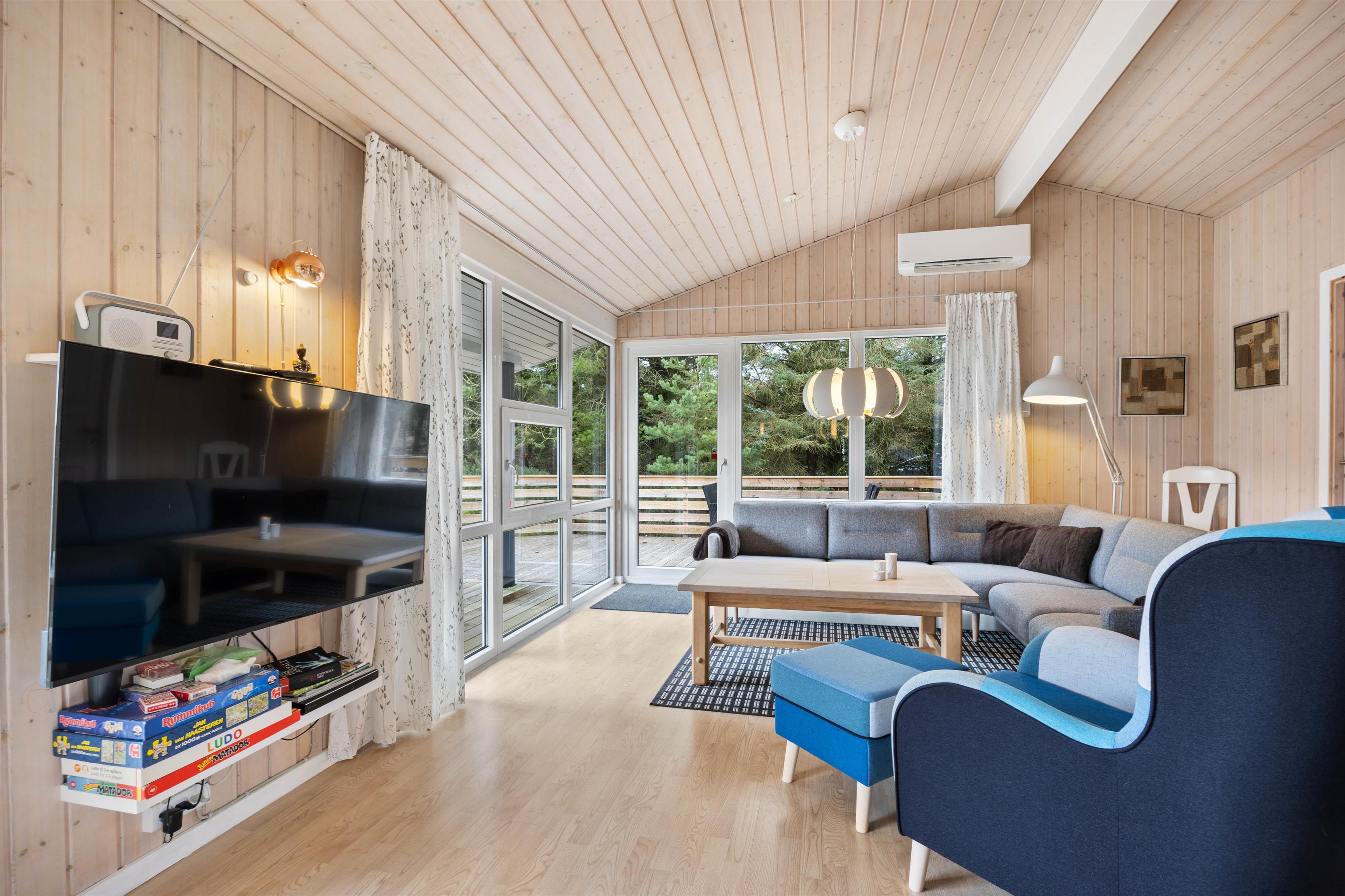 Feriehuset er hyggeligt indrettet, så der er plads til samvær og kvalitetstid. I stuen er der fx plads til at samles omkring et spil, planlægning af feriens udflugter eller bare ren afslapning med en god bog eller film. Der findes også bordtennis-bat i sommerhuset.