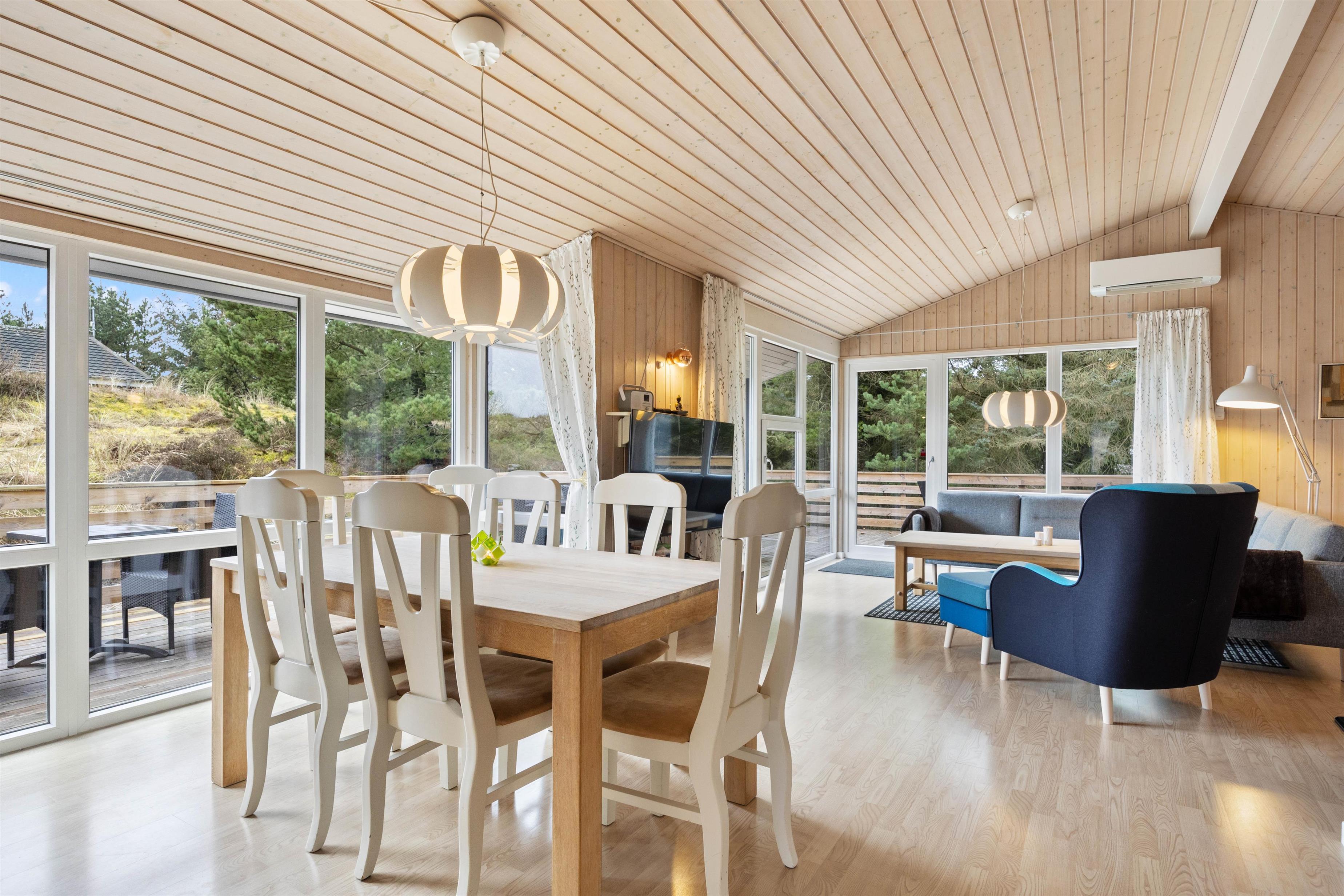 Feriehuset ligger kun en god gåtur fra Vesterhavet, hvor sandstranden indbyder til gåture hele året rundt. Om sommeren er det skønt at nyde solen og blive kølet ned på stranden. Og om vinteren er det opkvikkende med en frisk tur langs vandet for eferfølgende at slappe af foran brændeovnen.