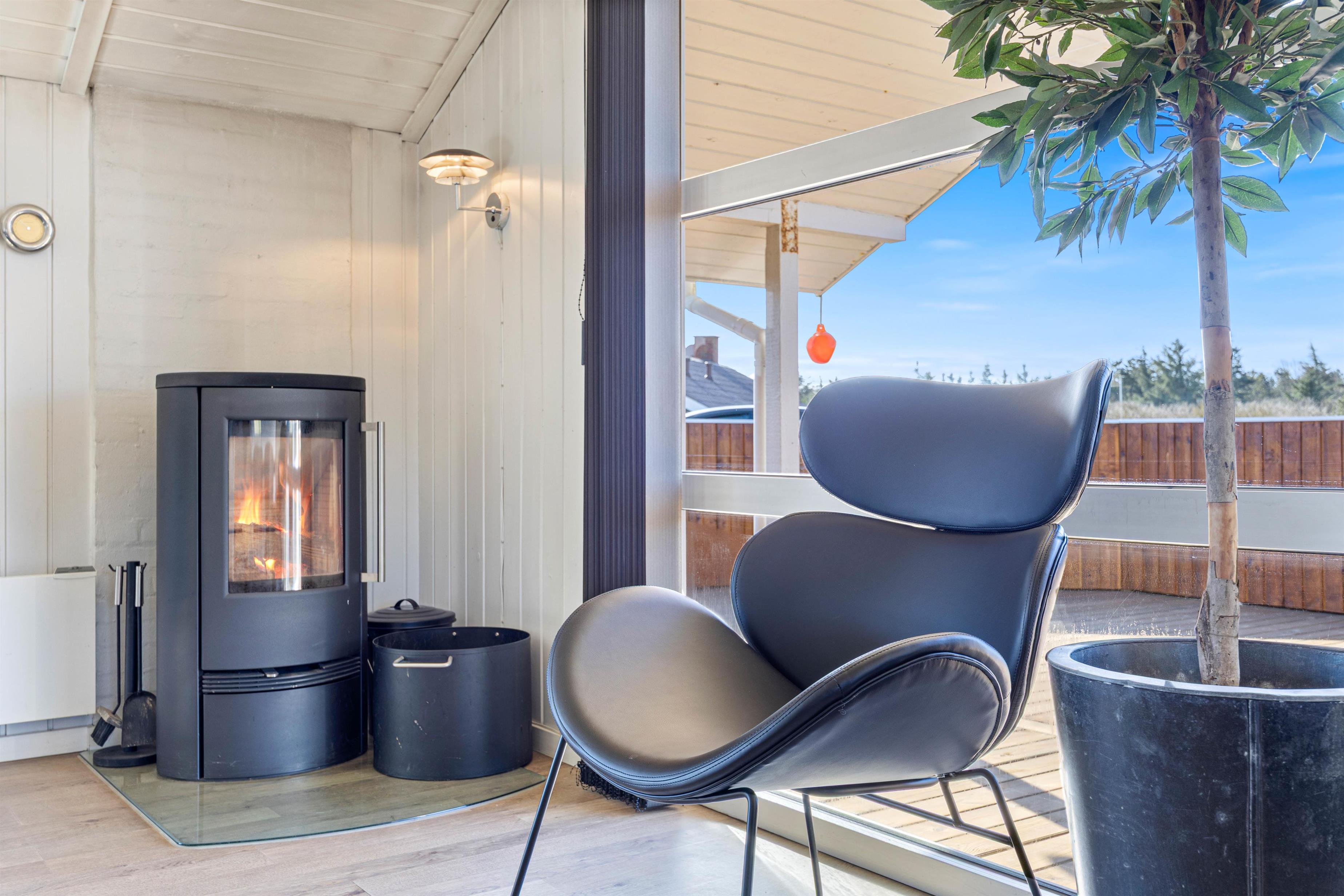 Den smagfuldt møblerede stue har en flot brændeovn, et fladskærms-TV og DVD, og en rigtig hyggelig alkove. Derudover er der gratis trådløst internet i feriehuset.