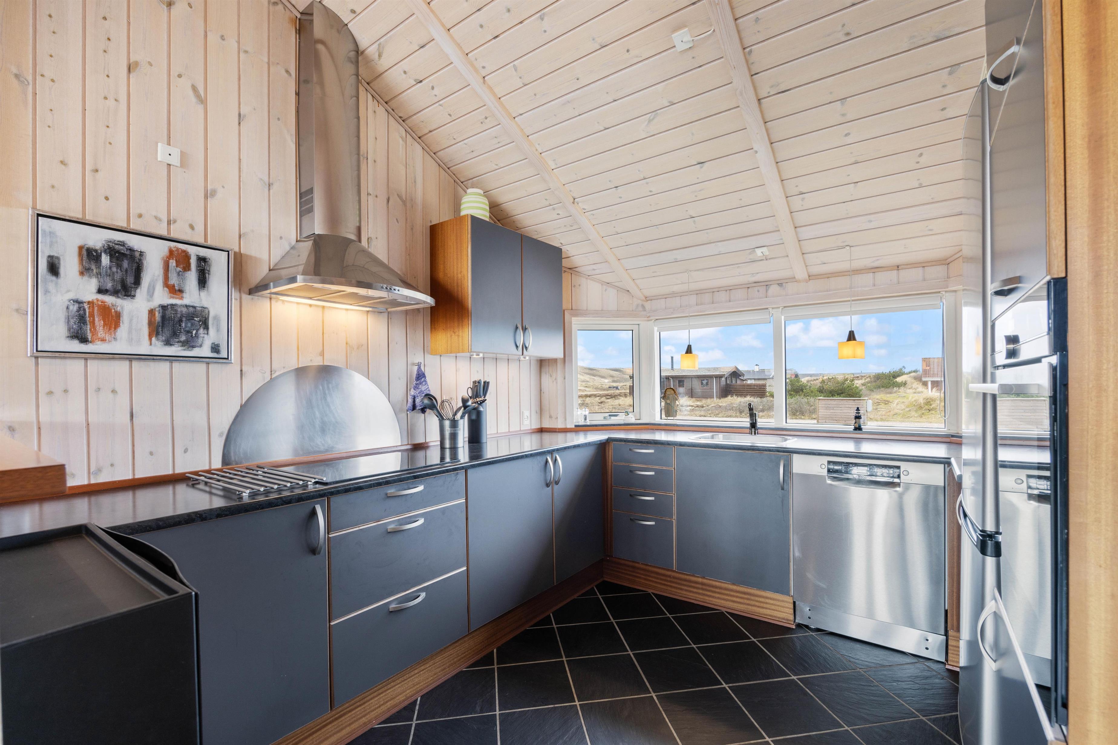 Dette skønne sommerhus er indrettet med god smag og i sikker stil. Sommerhuset er bygget med øje for detaljen og har et veludstyret køkken med alt, hvad feriekokken har brug for.