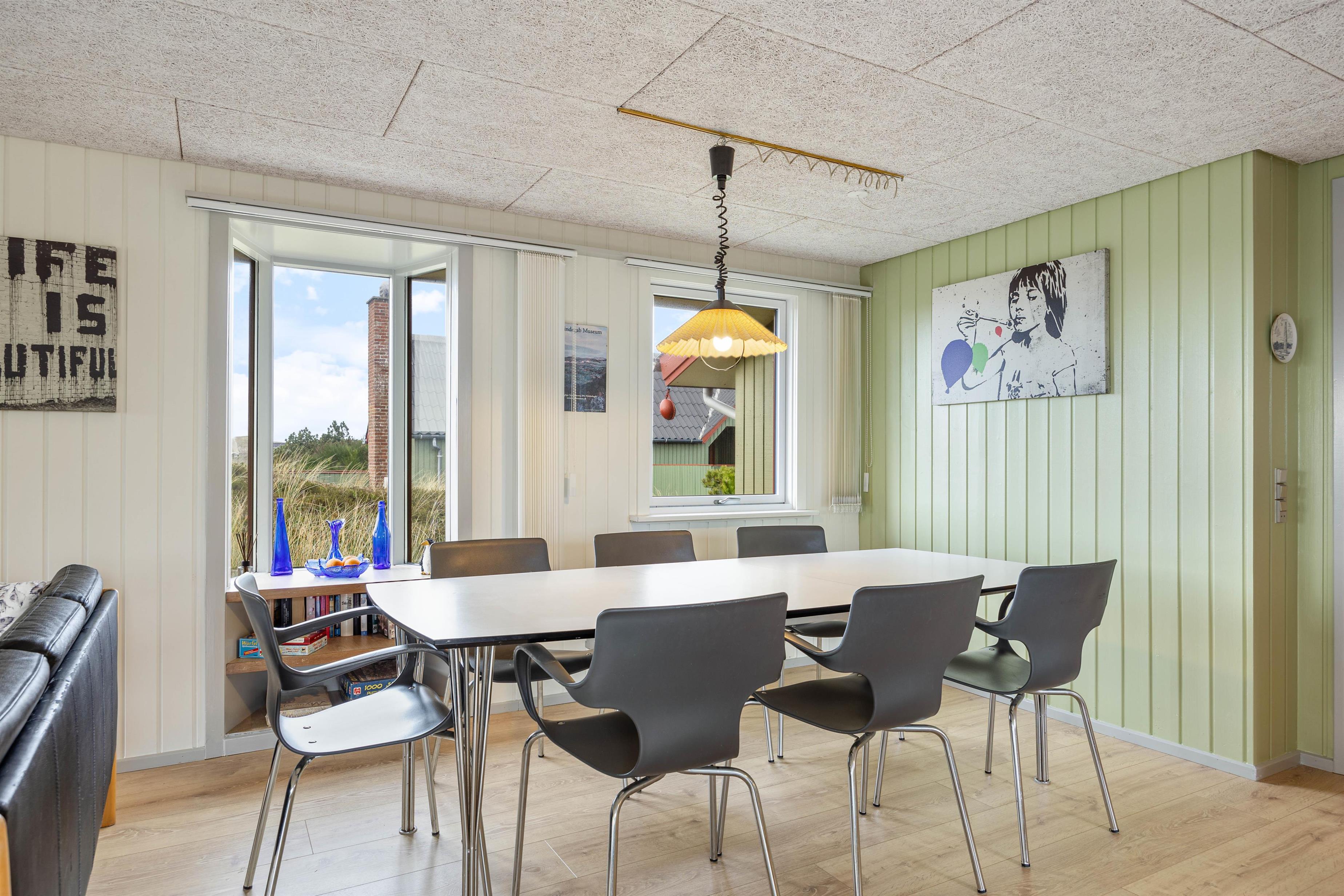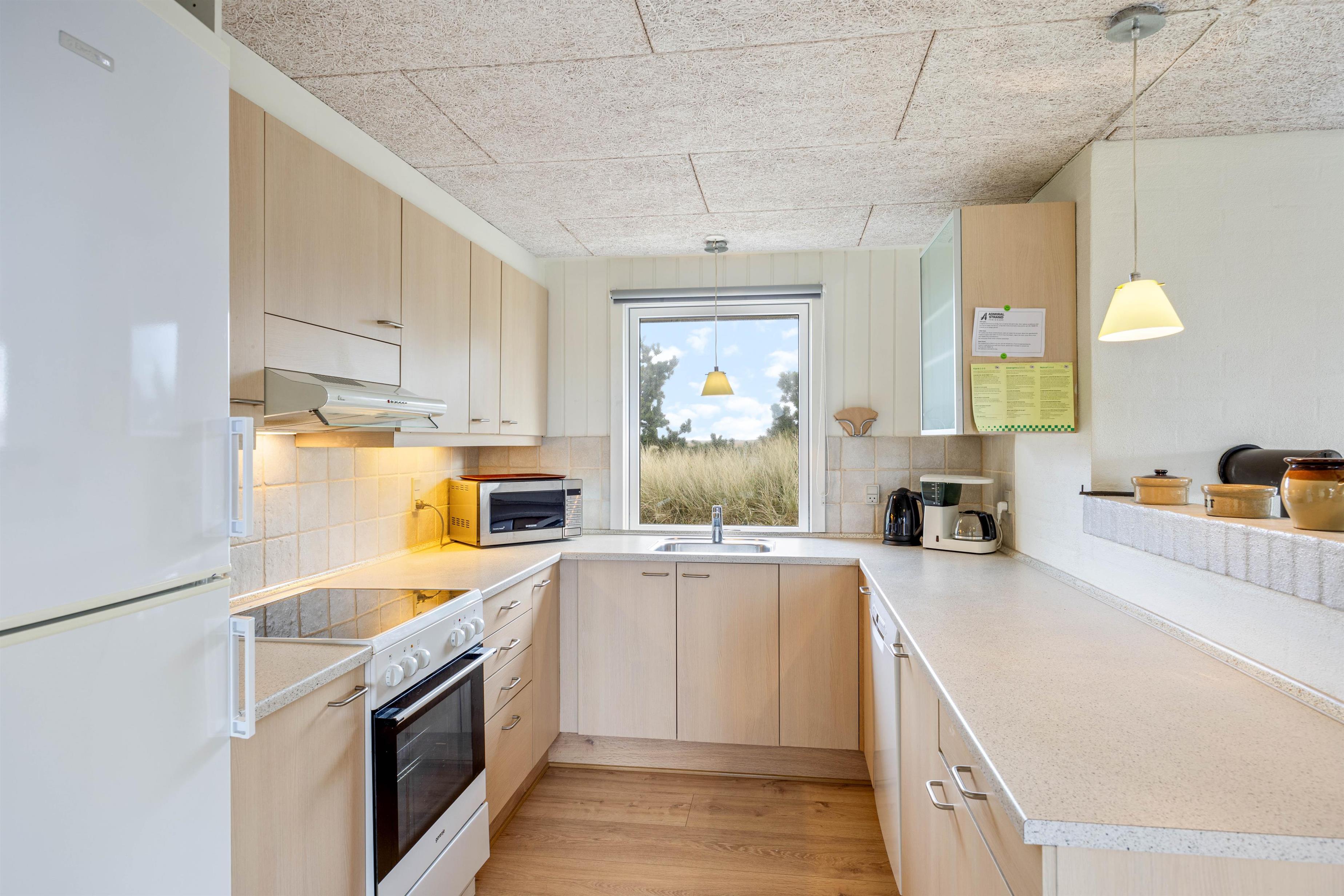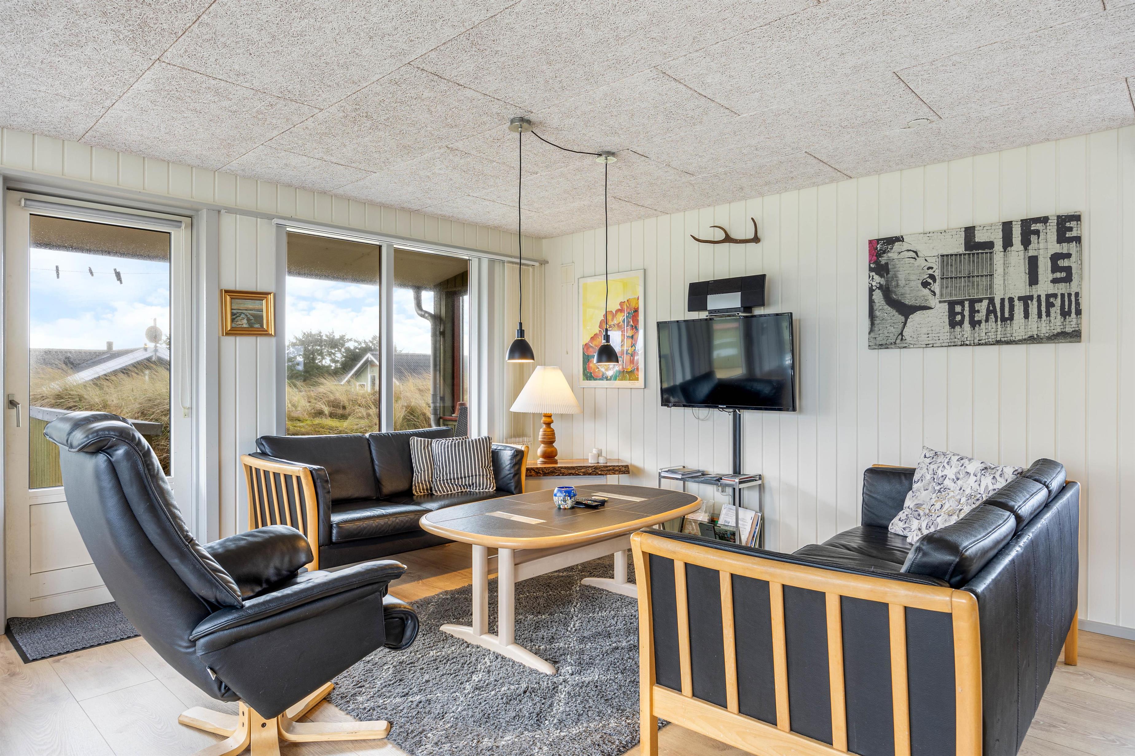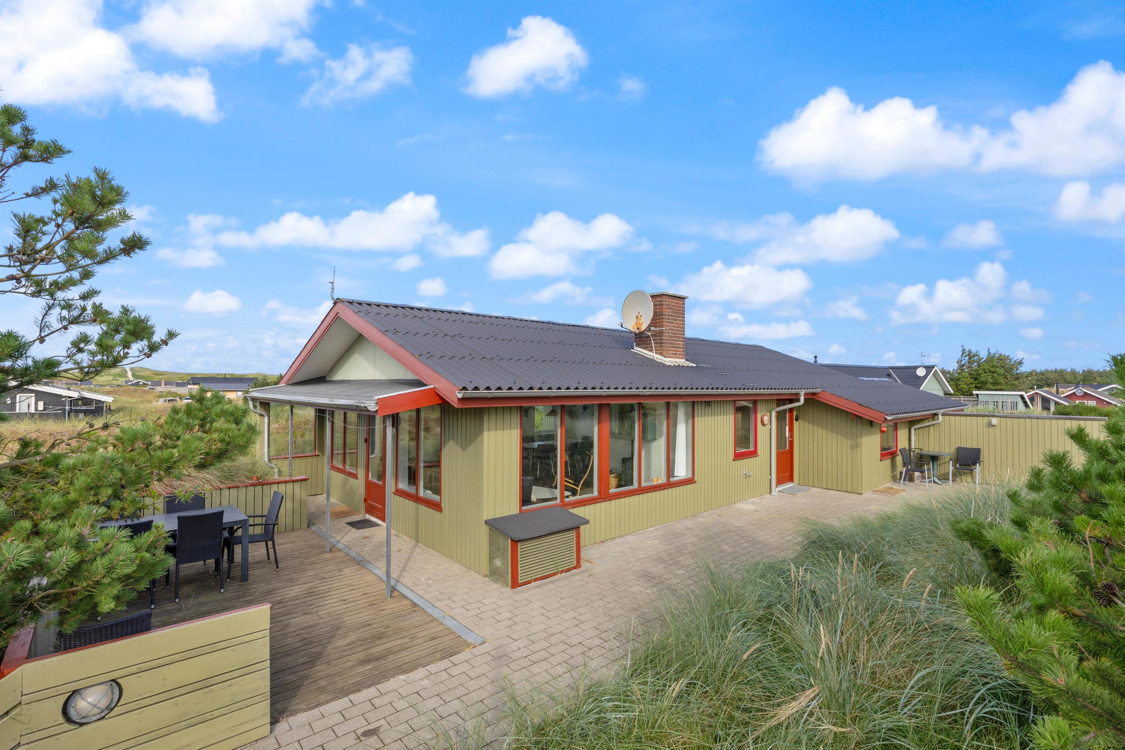 Der er både en fin terrasse ved feriehuset og en stor forsænket terrasse lidt længere nede på klitgrunden. I kan slappe af i havemøblerne ved sommerhuset eller solbade på den lavereliggende terrasse, imens børnene gynger eller leger i sandkassen. Tænd op i grillen til aften og nyd et lækkert grillmåltid sammen, imens skyggerne bliver lange. Bagefter kan I gå en dejlig tur til stranden og opleve solnedgangen i Vesterhavet – det er altid en oplevelse.