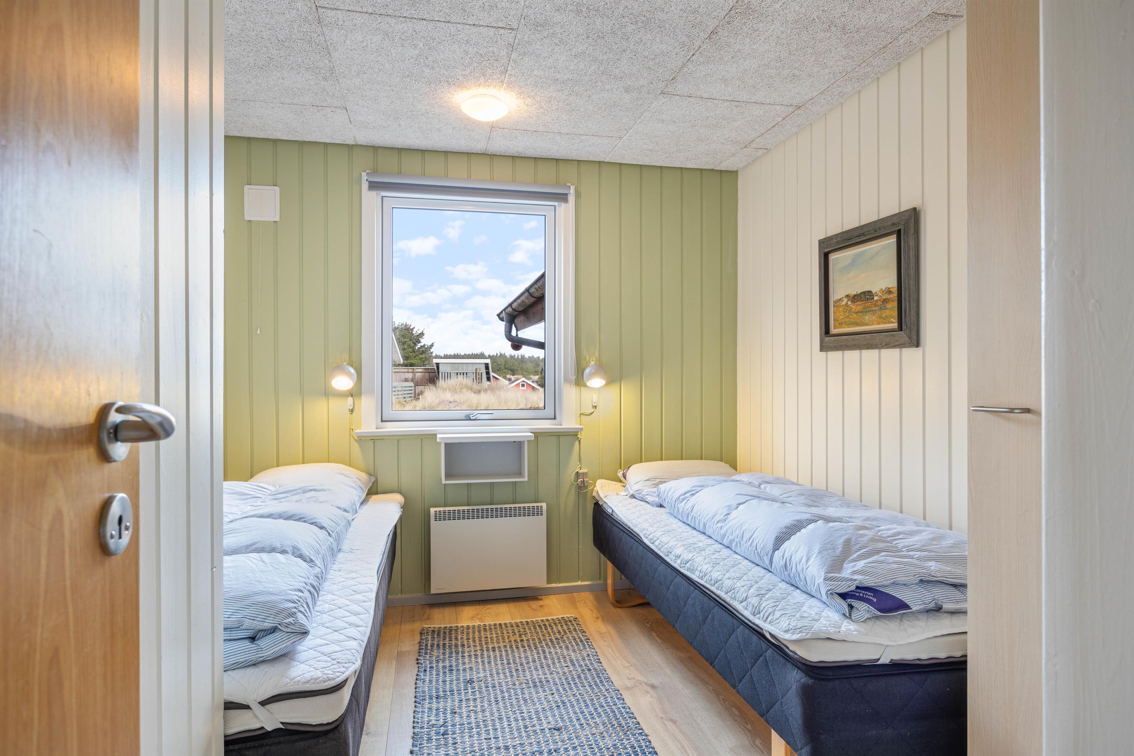 I badeværelset med gulvvarme er også vaskemaskine og tørretumbler til rådighed for jer, så I kan opfriske garderoben eller håndklæderne i løbet af ferien. De 3 soveværelser har hver 2 komfortable enkeltsenge, som er skubbet sammen til dobbeltsenge. Her kan I hvile godt ud i den friske vesterhavsluft og vågne frisk op til næste dags oplevelser.