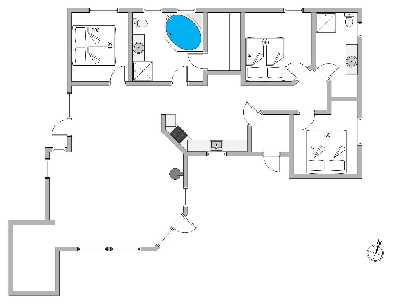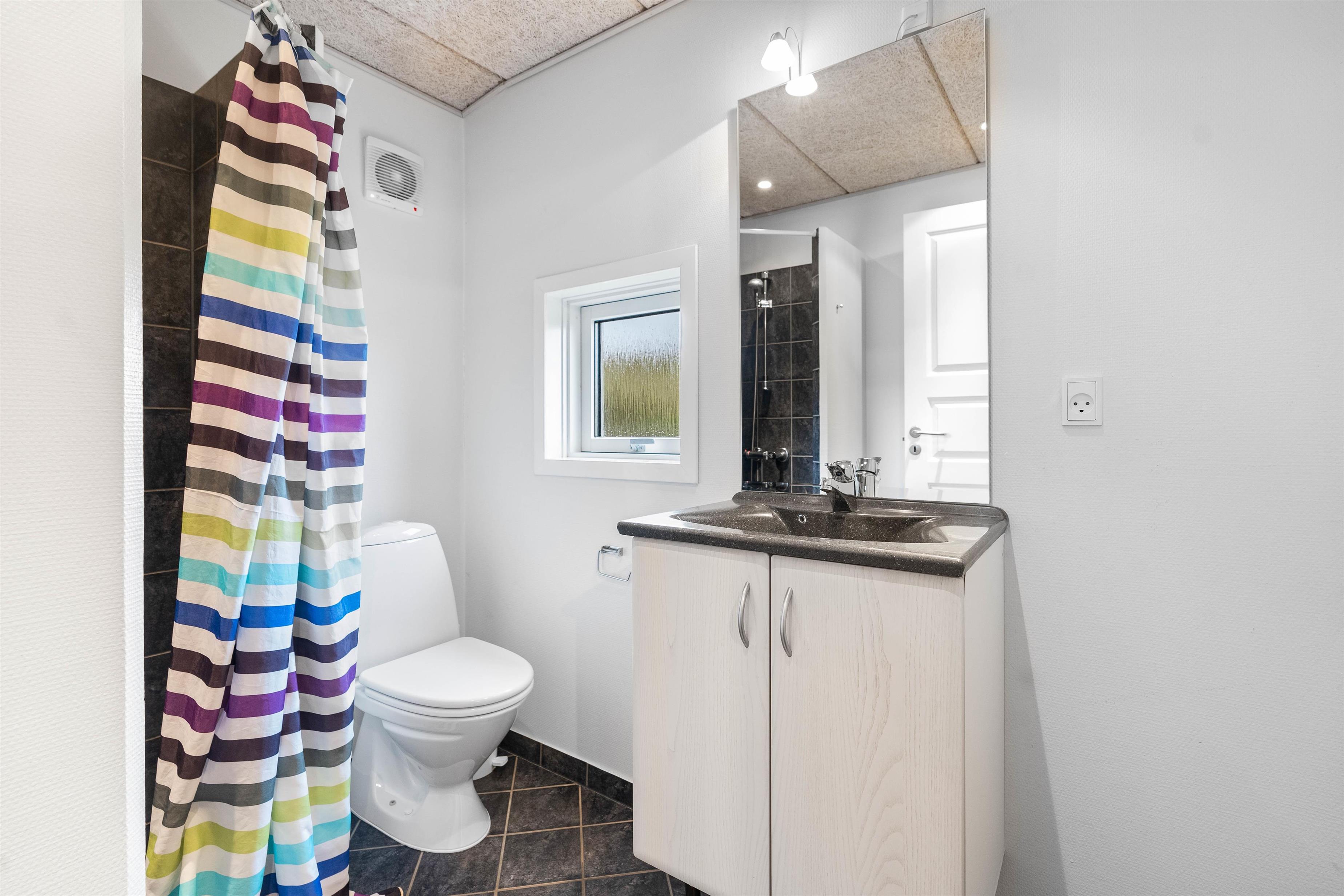 Det rummelige badeværelse har både sauna og spa. Her kan I slappe af og blive varmet igennem efter en lang tur i naturen. Således kan I sove rigtigt godt i et af de tre soveværelser med dobbeltsenge – Vesterhavsluften gør noget ekstra godt for nattesøvnen.