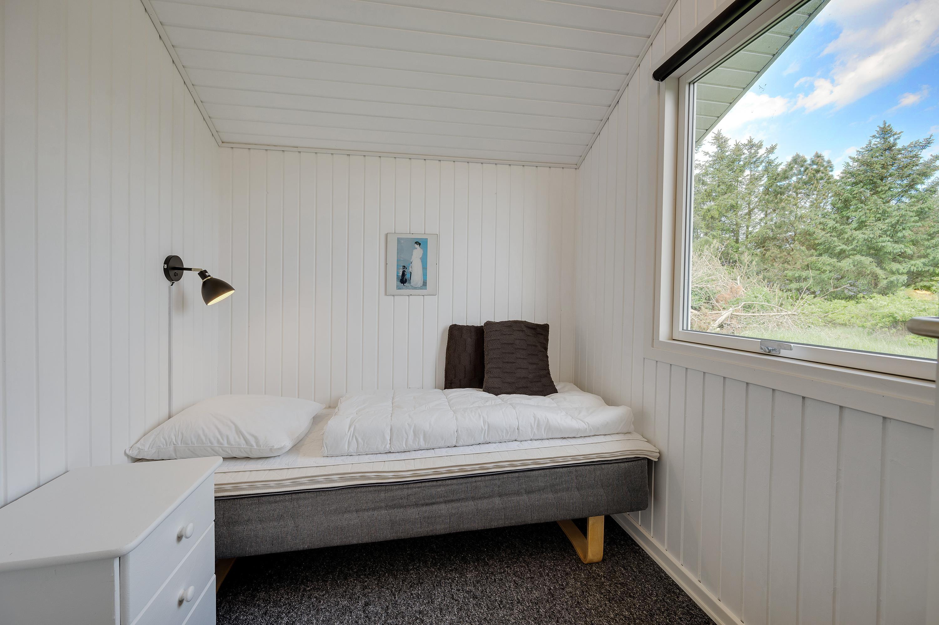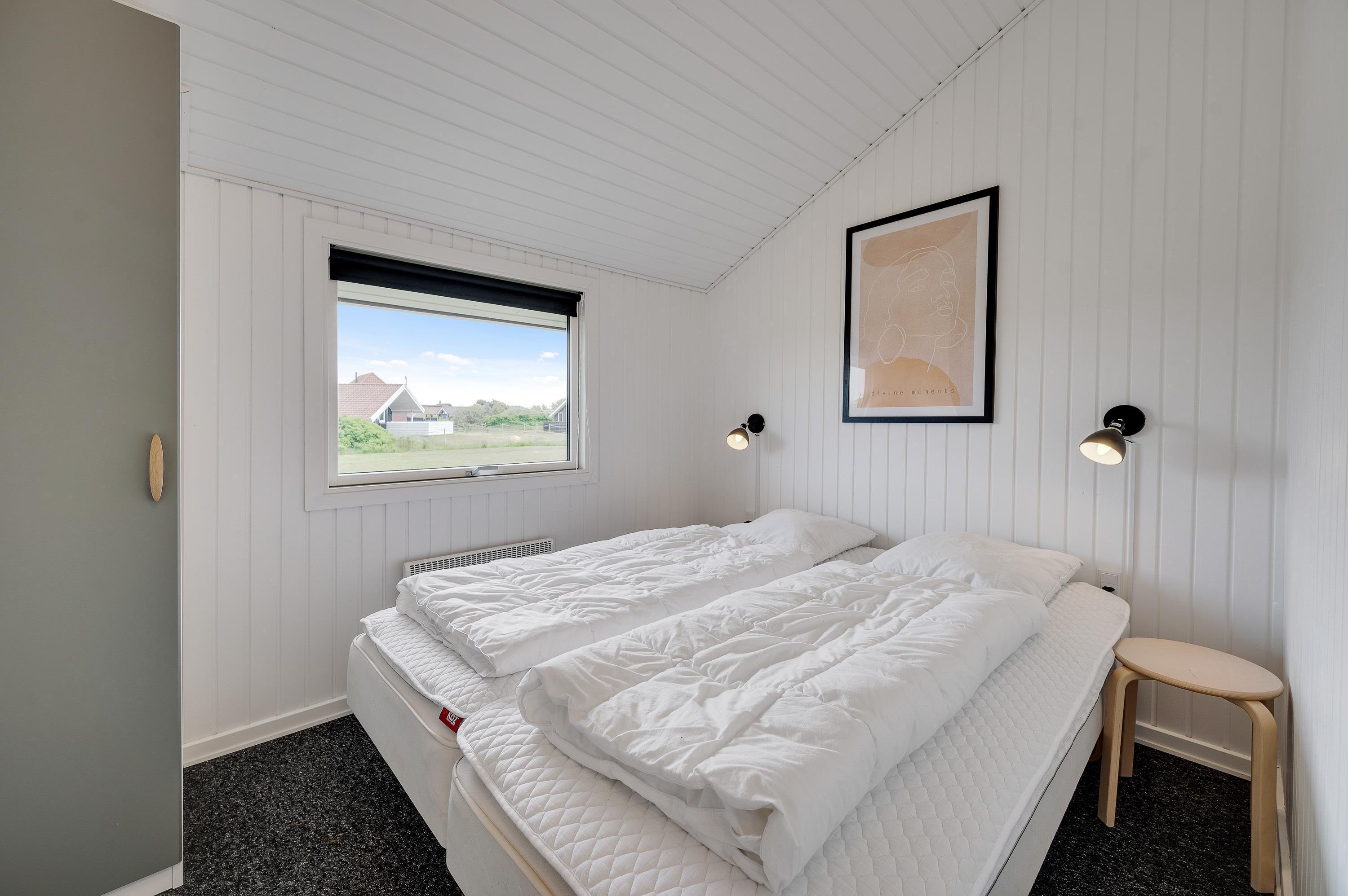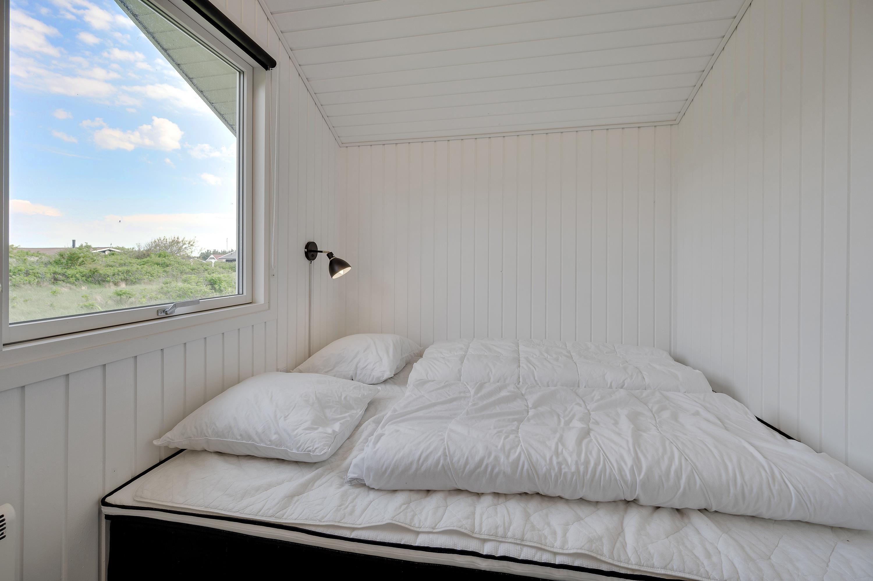 Sommerhuset har plads til i alt 4 personer i de 3 soverum. Her er to soveværelser med en dobbeltseng, et soveværelse med 1 enkeltseng.