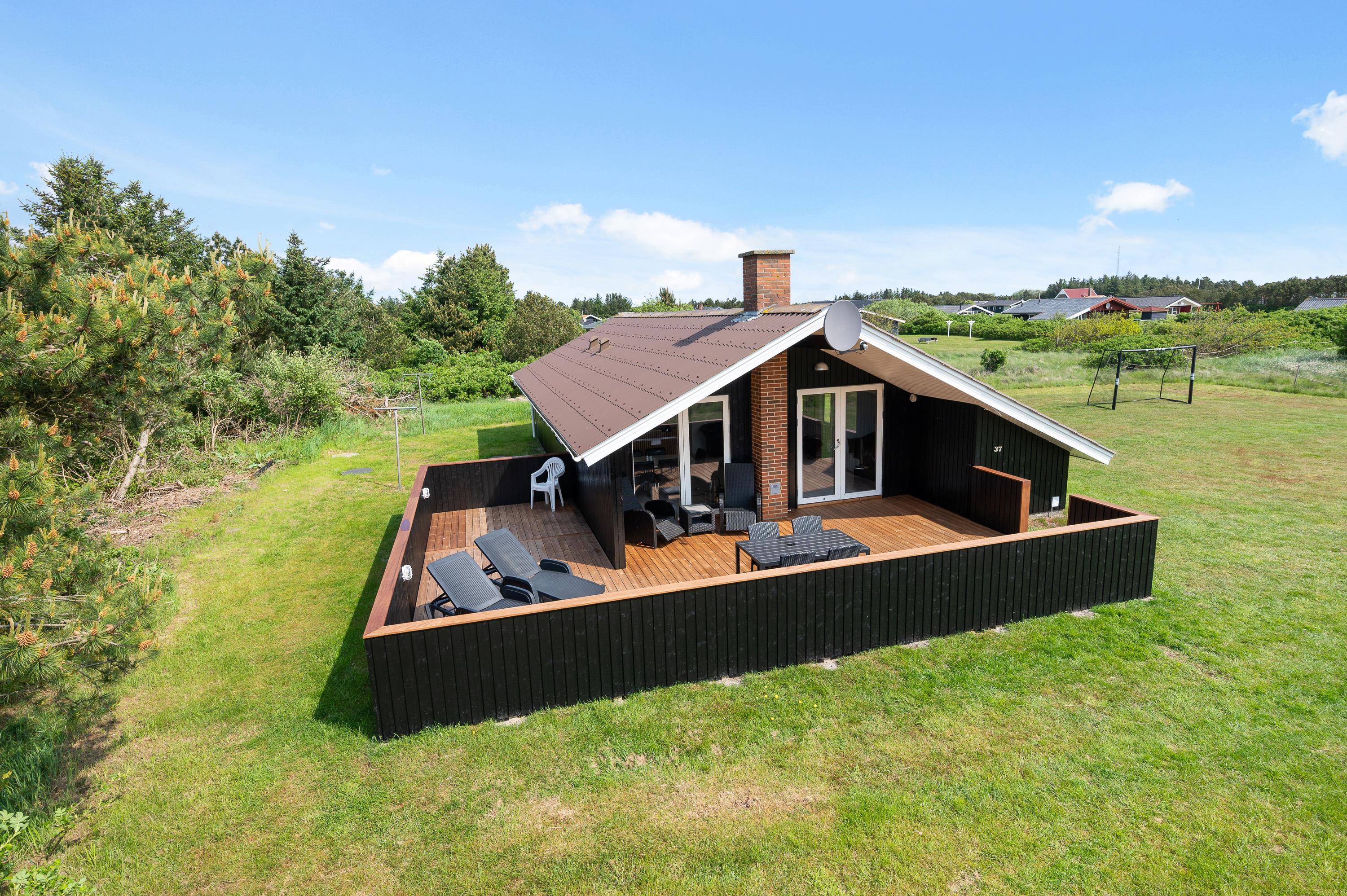 Det hyggelige og pæne sommerhus ligger på en stor naturgrund i et roligt kvarter i Bjerregård. Her er plads til ungernes leg udenfor, og en dejlig, delvist overdækket terrasse, som er perfekt til hyggelige dage og lange sommeraftner.