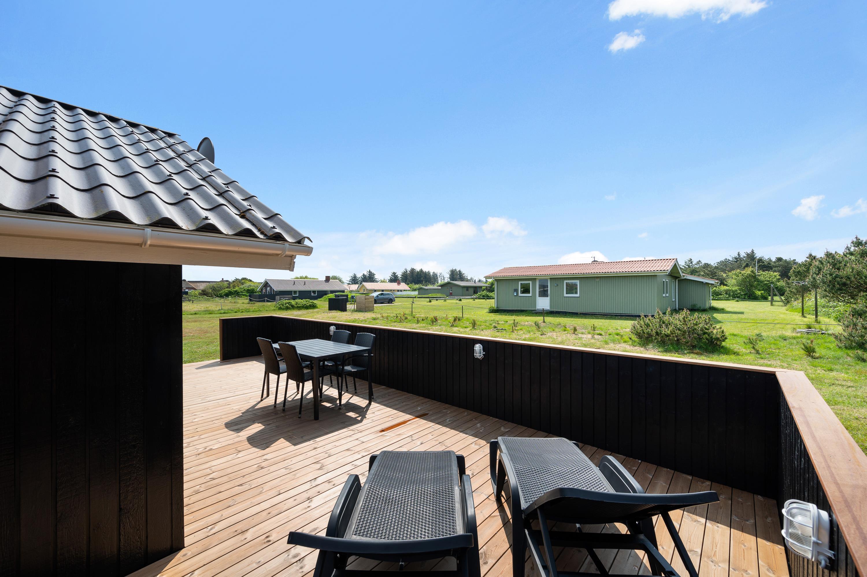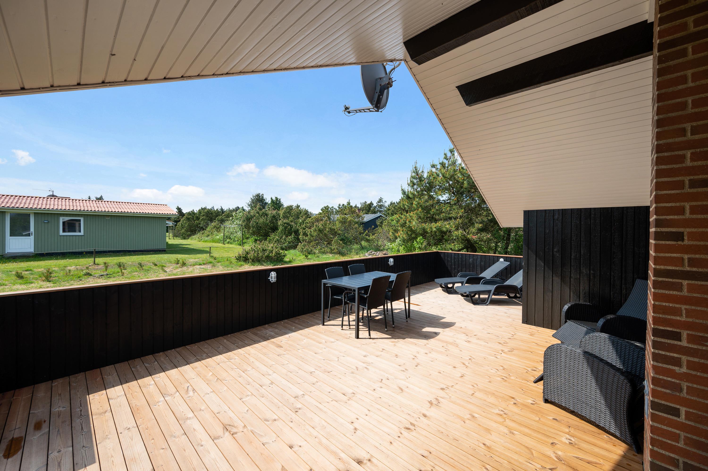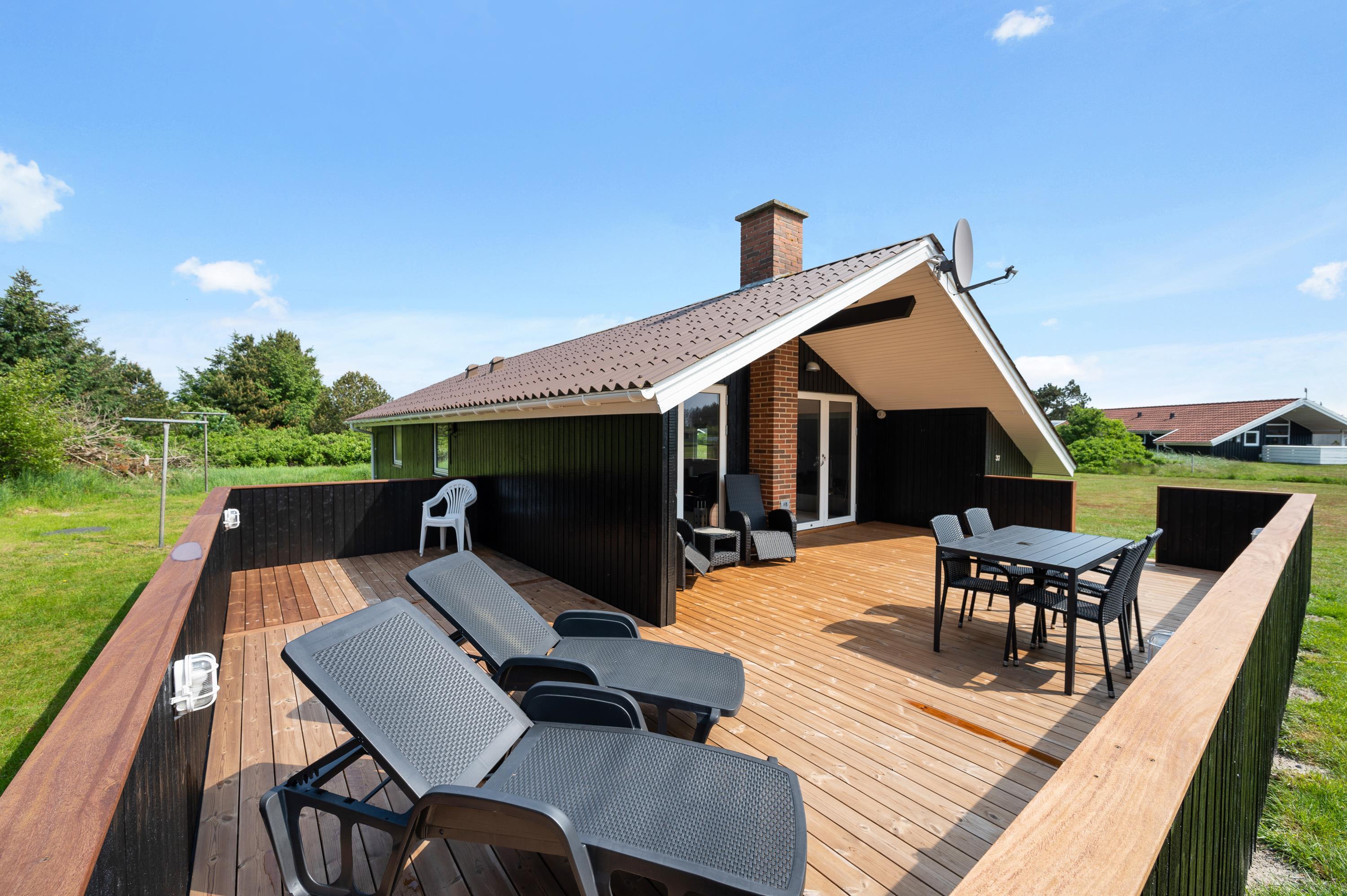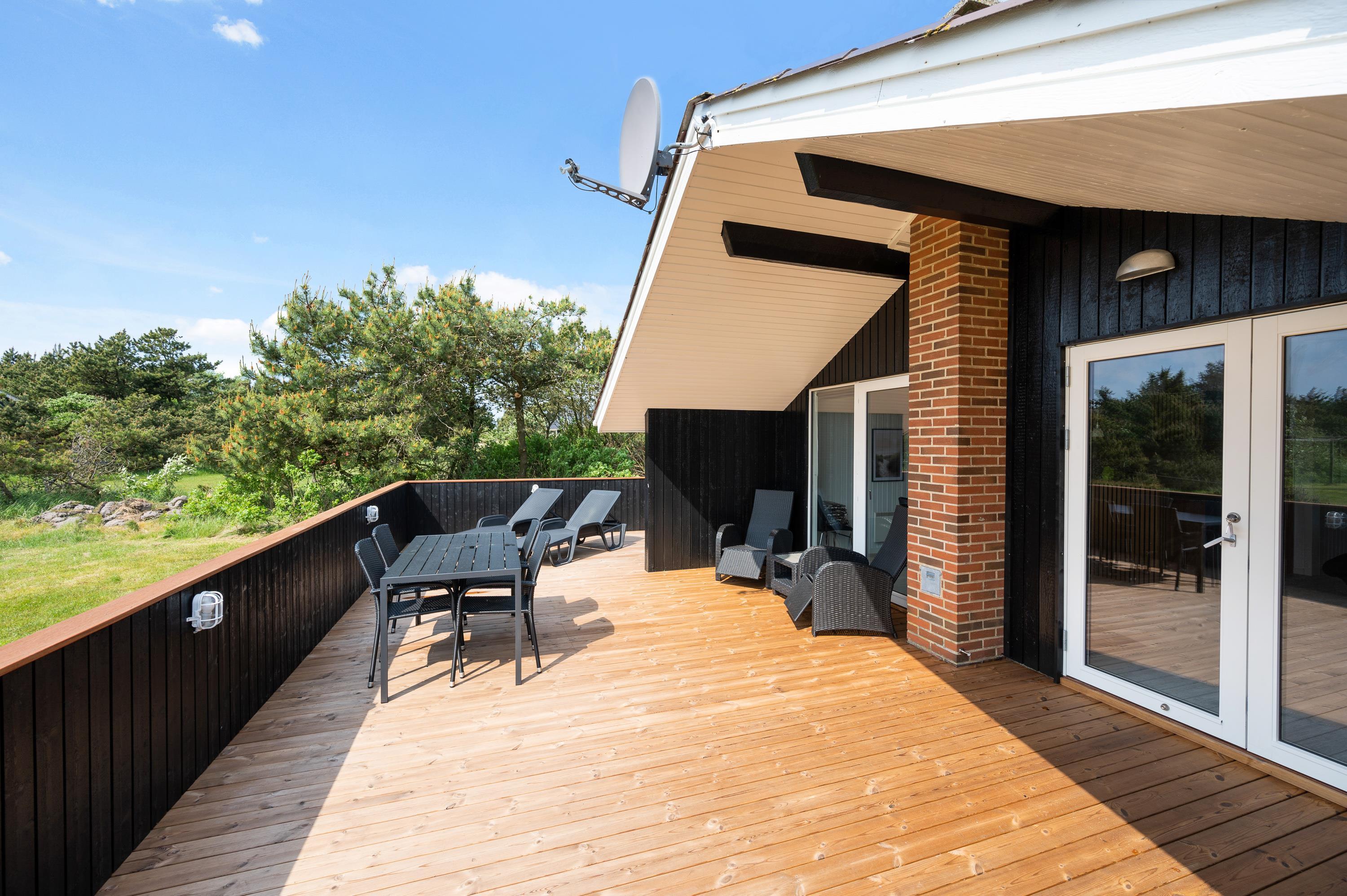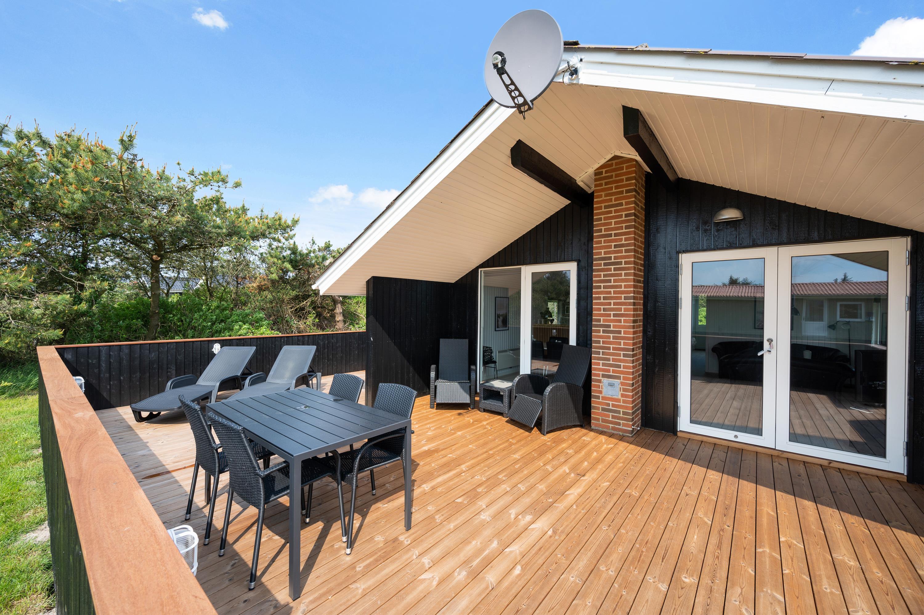 Terrassen er udstyret med liggestole, havemøbler og grill, så her er rig mulighed for hyggelige grillaftener med hele familien.