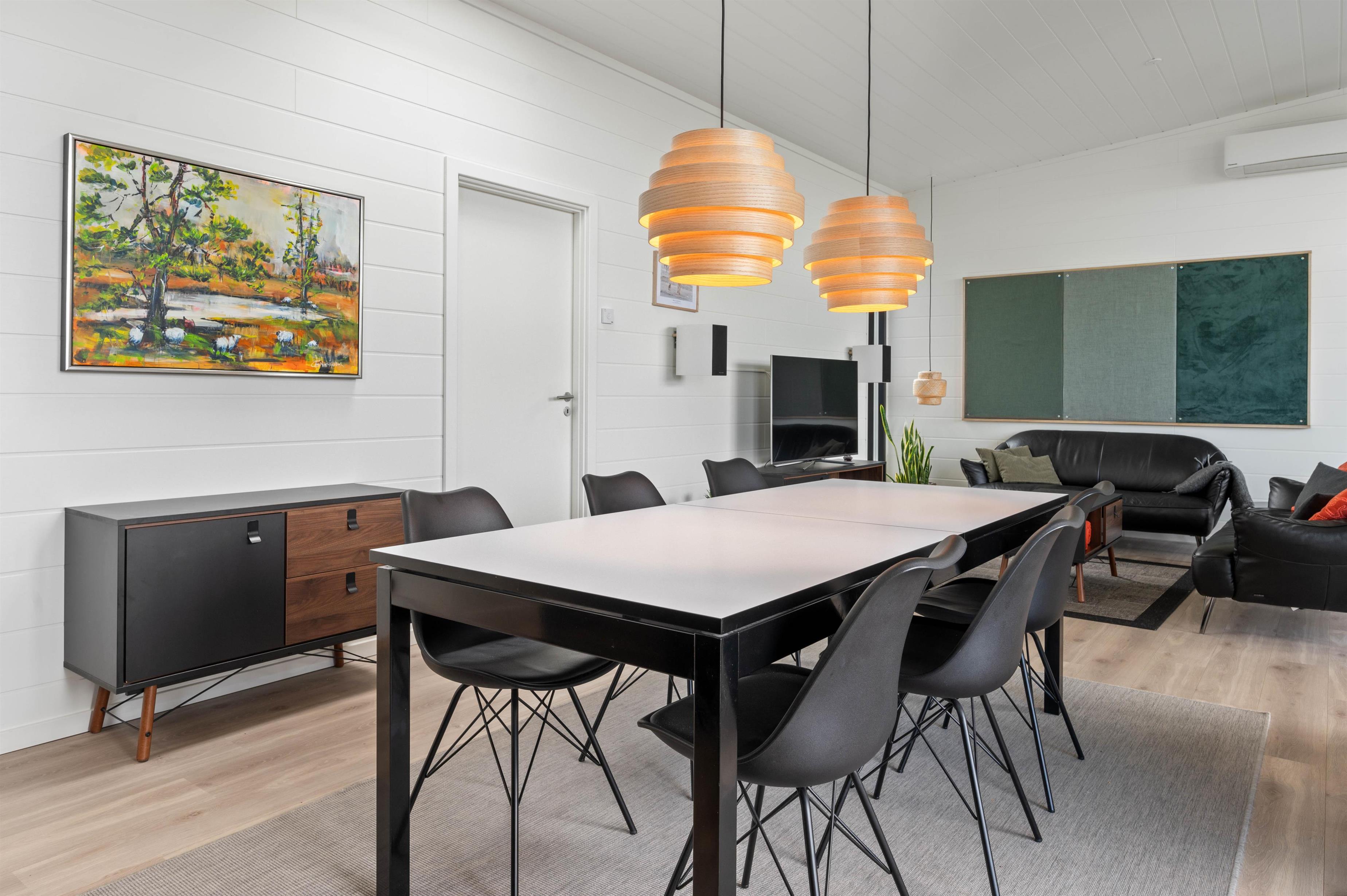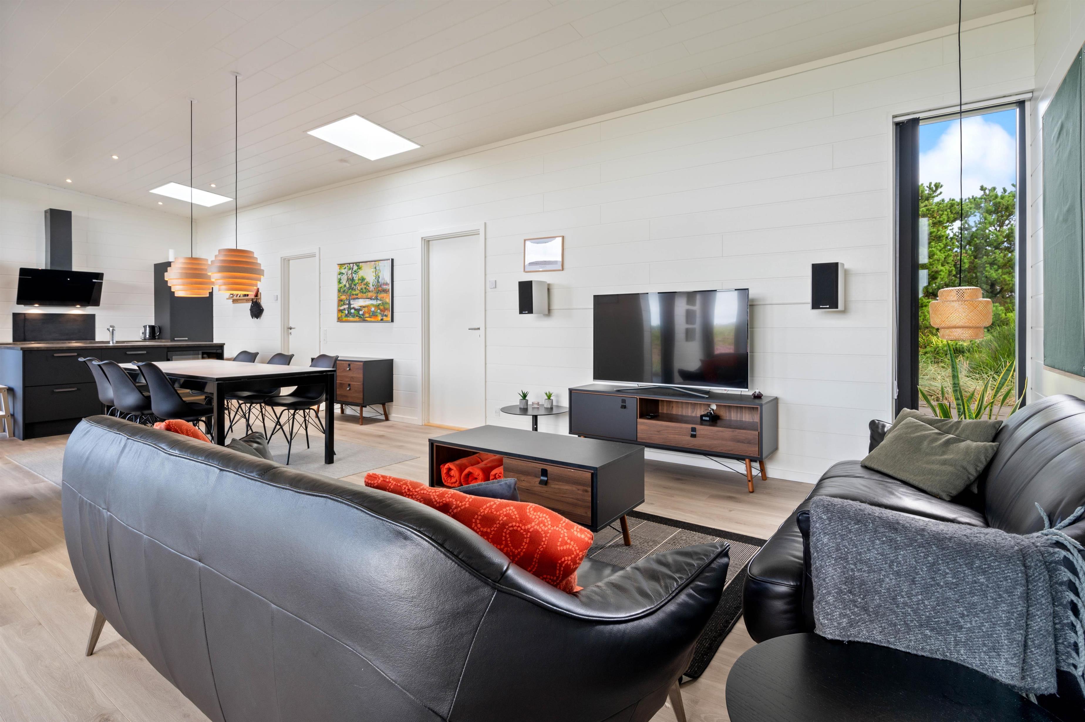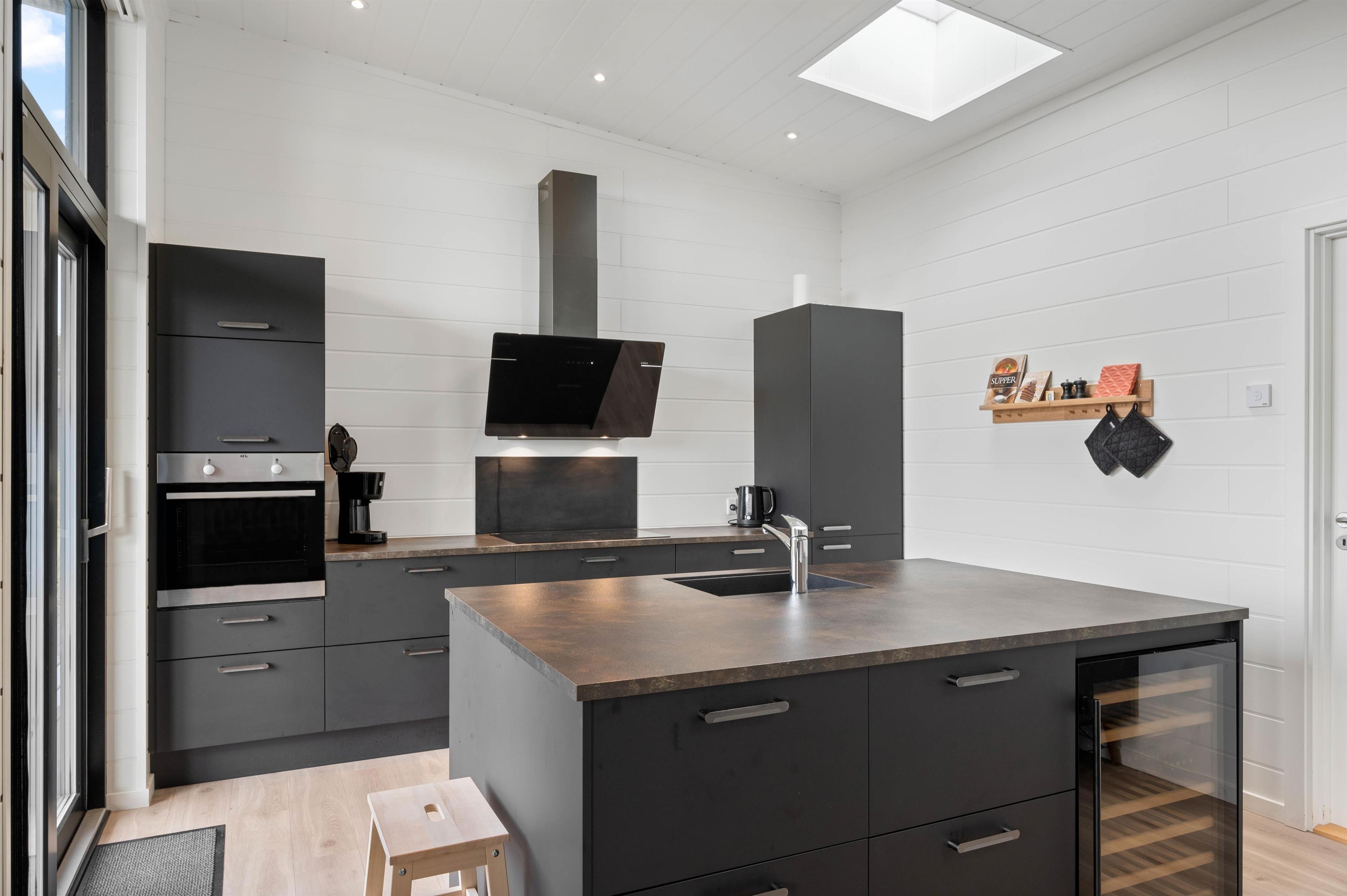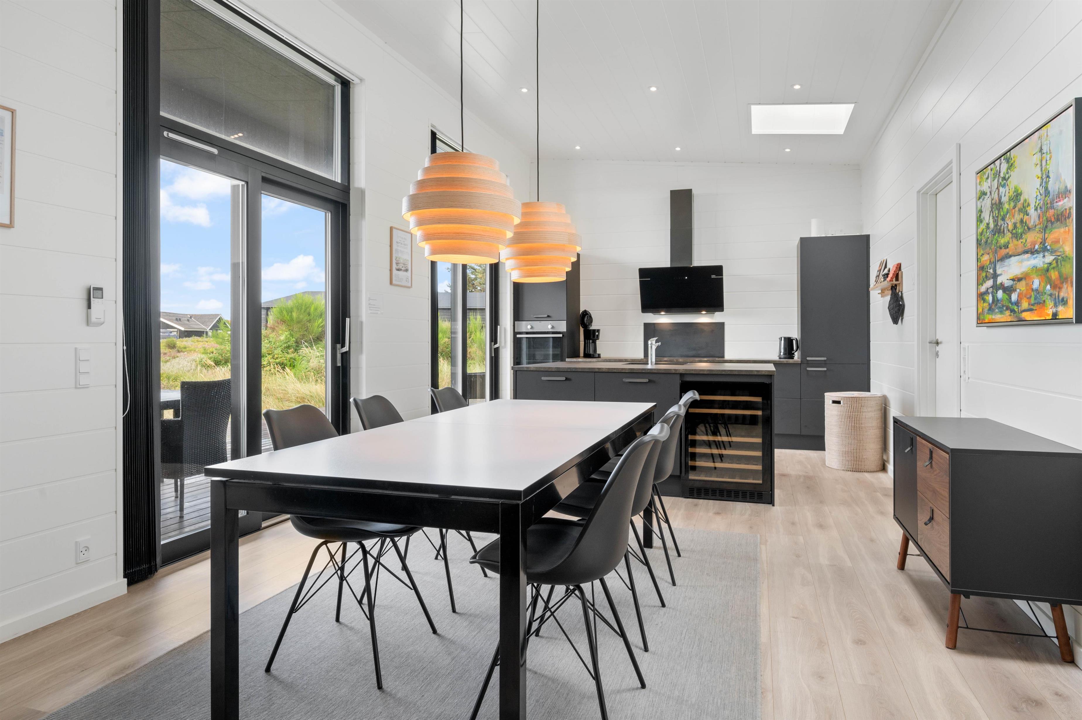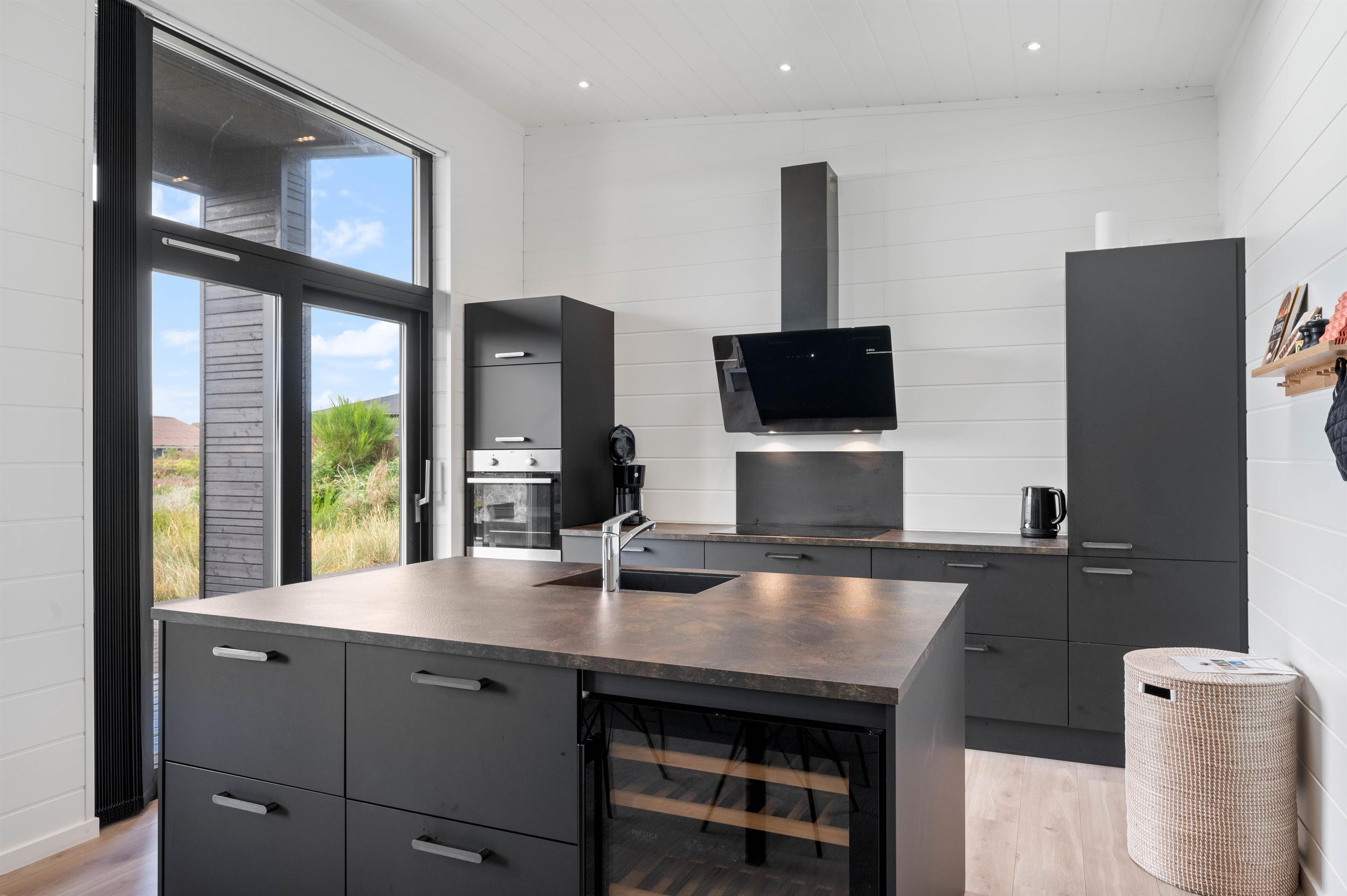 Sommerhuset lader ikke meget tilbage at ønske, da alle former for moderne installationer som varmepumpe, vaskemaskine, tørretumbler, opvaskemaskine og mikroovn står til jeres rådighed. Induktionskomfuret gør det til en leg at tilberede dagens måltider, hvis I ikke vælger at tænde op i grillen. Til maden kan i nyde et glas vin, som er nedkølet i køkkenets vinkøler. Imens der hygges på terrassen, kan børnene slå sig løs på den dejlige naturgrund, lege i gyngerne eller i sandkassen.