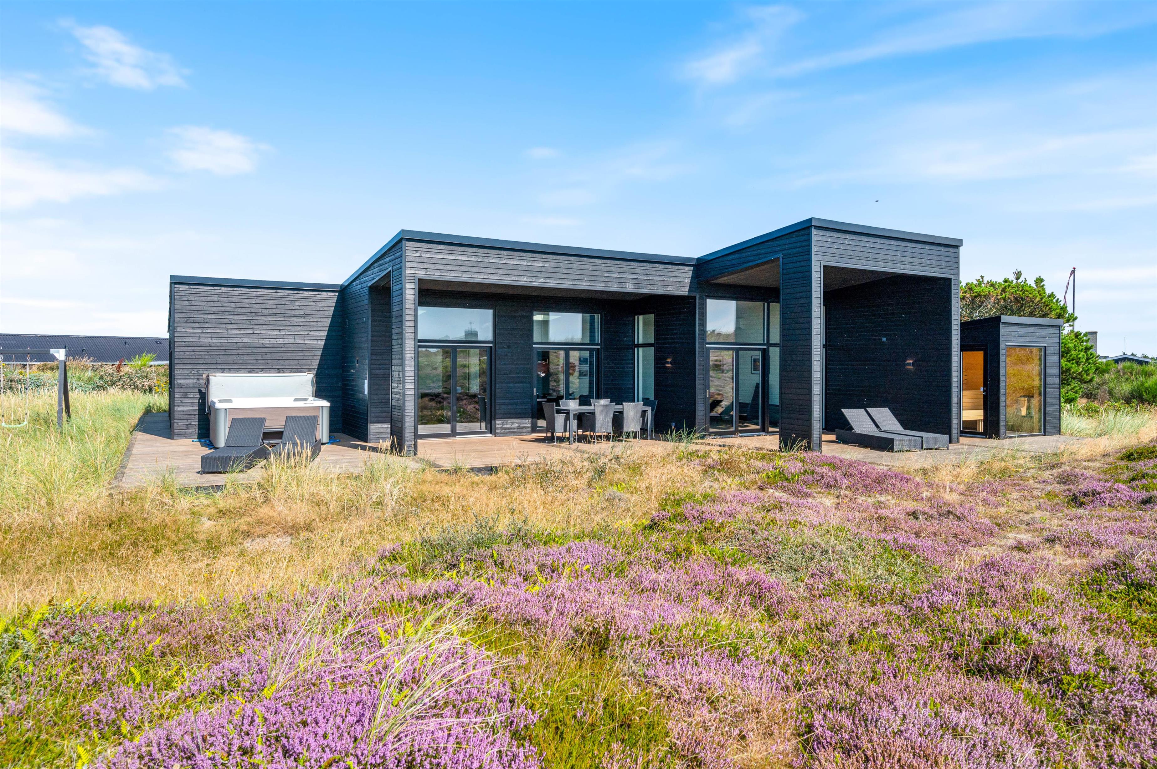 Er I på udkig efter et topmoderne sommerhus ved Vesterhavet, hvor der er gode muligheder for selvforkælelse? Så er Julianevej 29 i Bjerregård lige noget for jer. Feriehuset er bygget i 2021 og byder på både udespa og sauna med udsigt til det smukke klitlandskab.