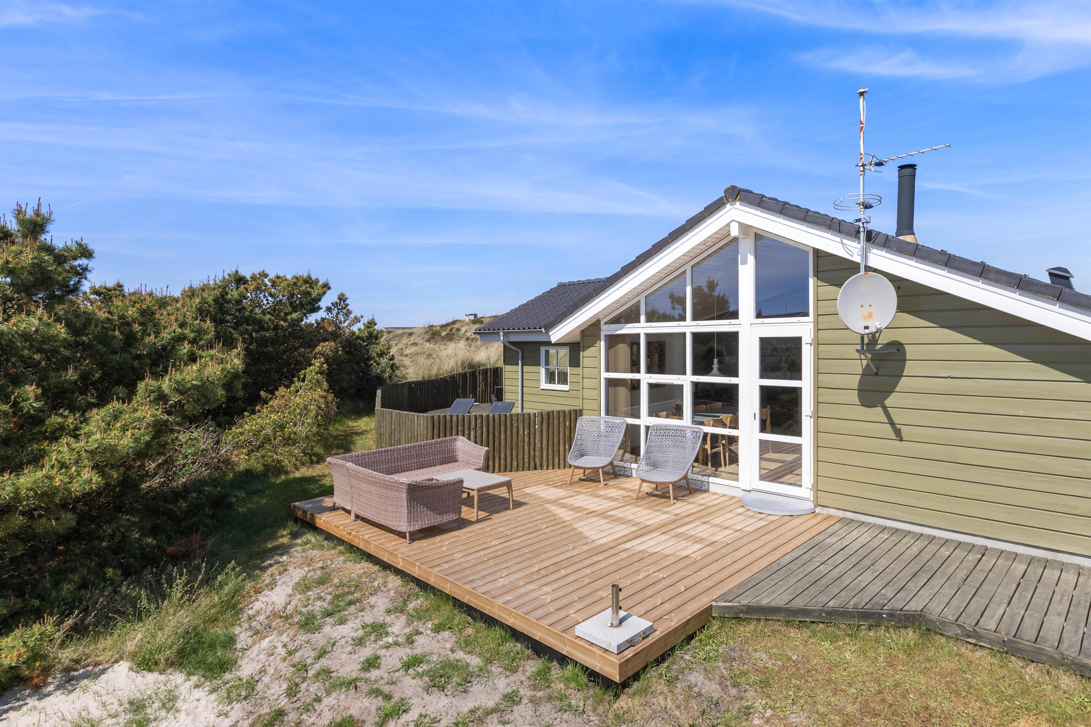 Et virkelig flot kvalitetssommerhus, som ligger på en stor naturgrund på en lille stikvej. Her er Vesterhavet og stranden kun en kort spadsertur væk, ligesom du hver dag nemt kan hente friske rundstykker til morgenkaffen ved den lokale købmand. Vesterhavet ligger blot 500 meter fra sommerhuset, og her kan I tilbringe mange timer ved vandet. Den kilometer lange sandstrand er særlig populær i sommerperioden, hvor I også kan medbirnge et badehåndklæde og tage en frisk dukkert i havet. Den lokale købmand i Bjerregård kan nås på både gåben, cykel eller i bil blot 1 kilometer fra sommerhuset.