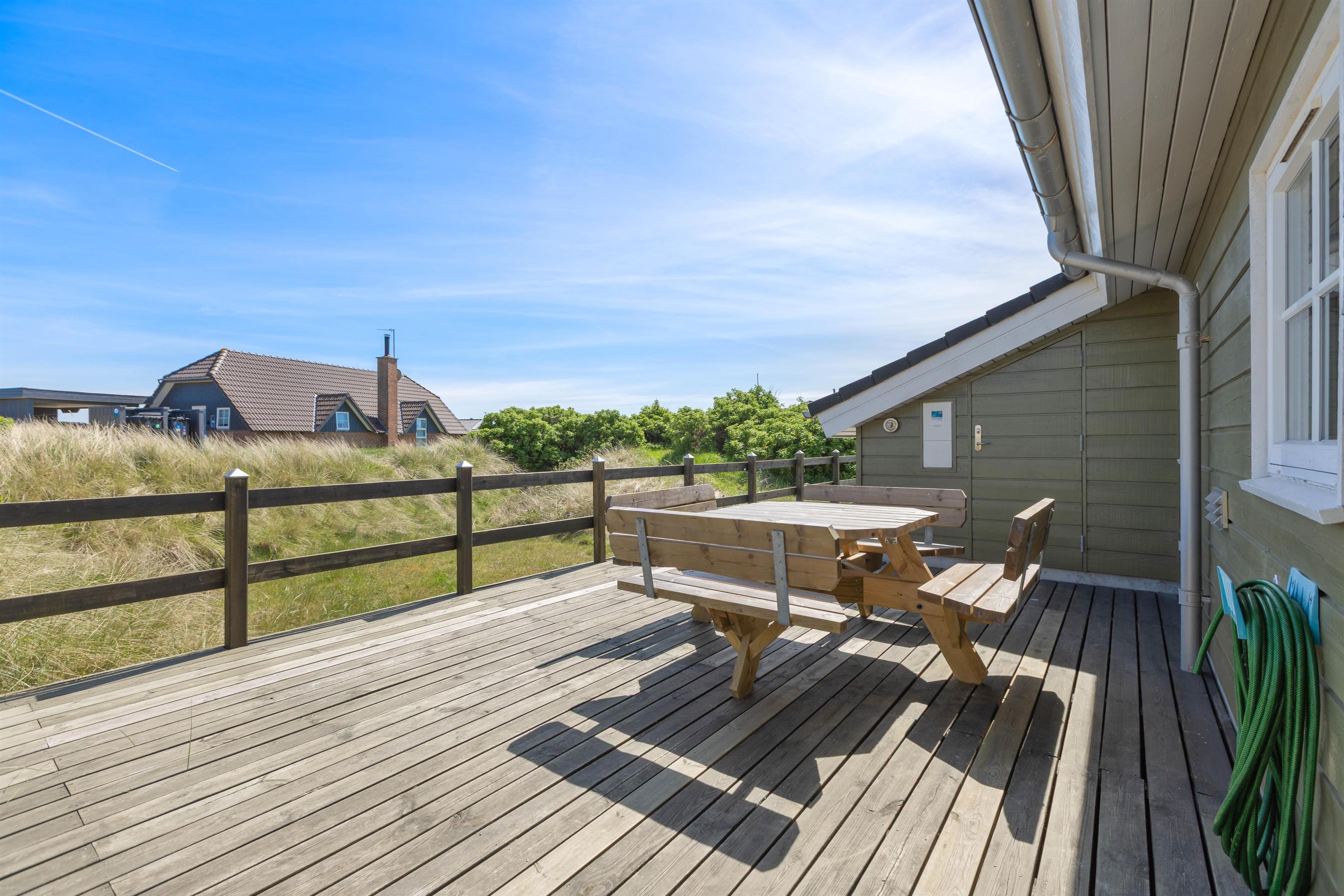 Sommerhuset er omgivet af terrasser, der er udstyret med gode havemøbler og liggestole. Her kan I følge solen rundt på himlen, og her kan I altid finde en herlig hyggekrog. Den vestvendte og overdækkede terrasse er perfekt til en herlig grillaften og et godt glas rødvin. Den delvist afskærmede terrasse gør også, at I altid kan finde en lækrog, hvor I kan nyde en dejlig kop kaffe. Den lukkede terrasse er praktisk, idet I kan lade hundene løbe frit, og de mindste kan lege for sig selv. Til de mindste er der også både sandkasse og gyngestativ, som de kan holde sig beskæftigede på.