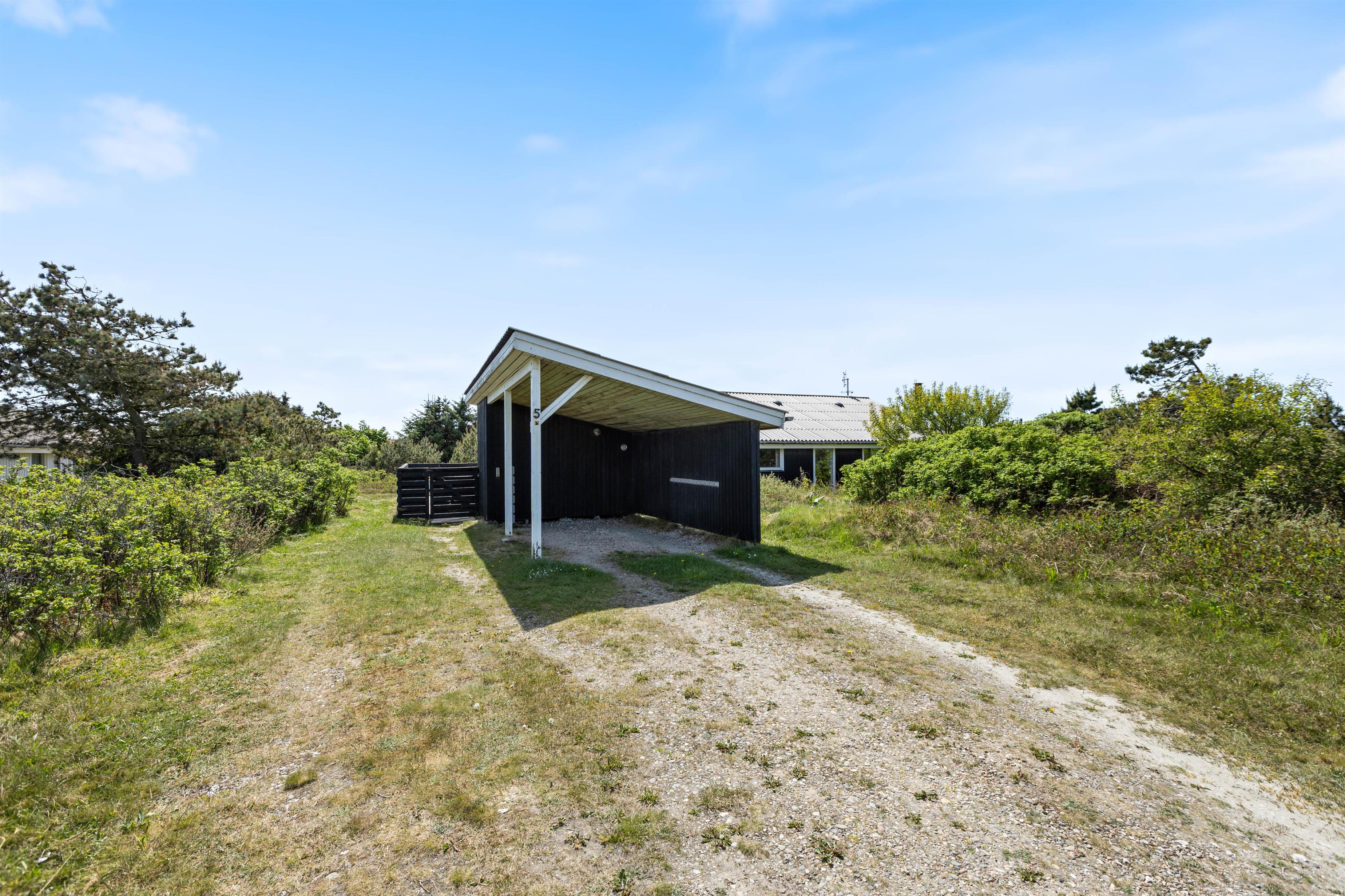 Beliggenheden i Bjerregårds populære ferieområde er også attraktiv. Stranden og Vesterhavet ligger kun 750 meter væk, og 5 minutters gang fra sommerhuset ligger den lokale købmand, som hver morgen sælger nybagte rundstykker i bagerafdelingen.