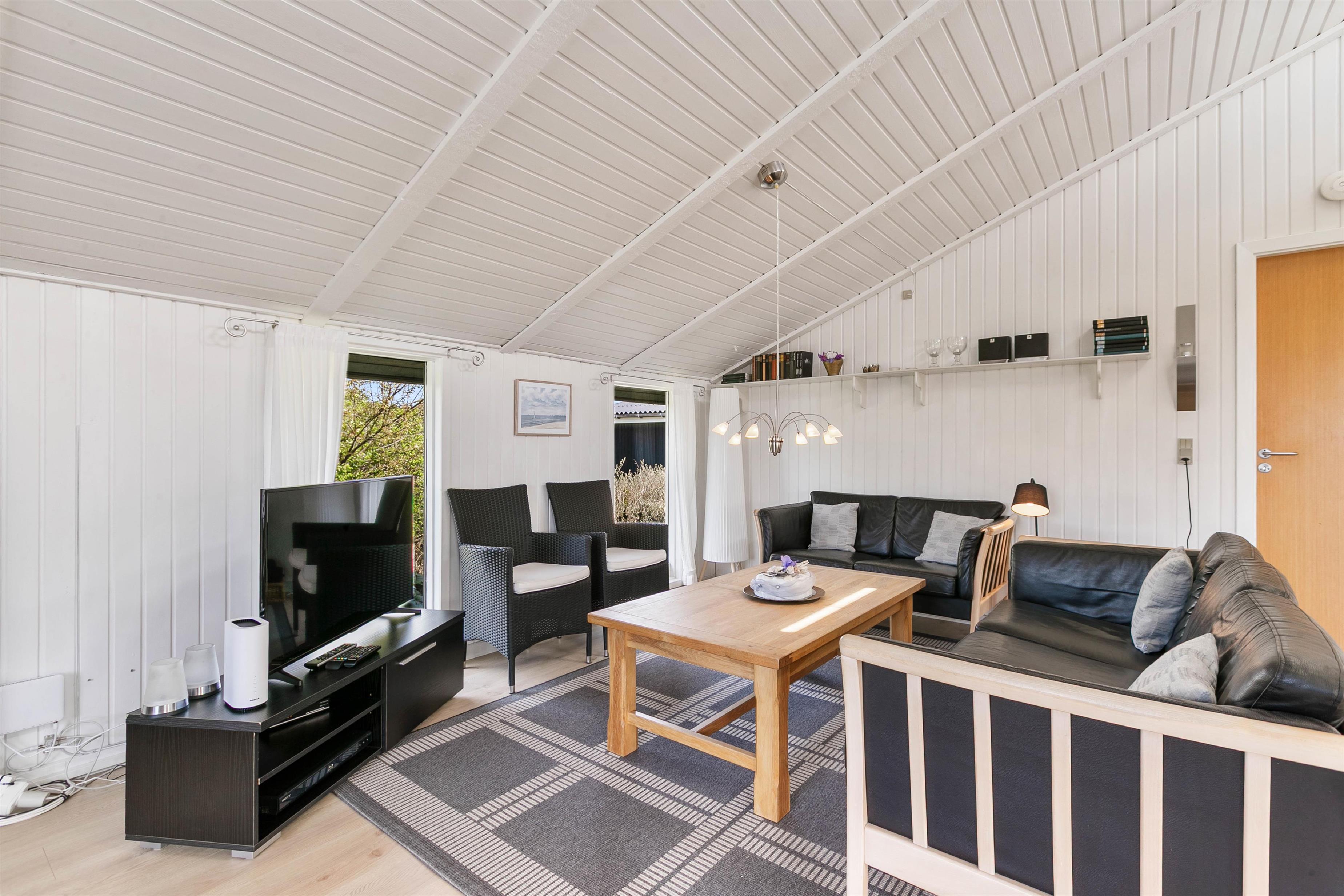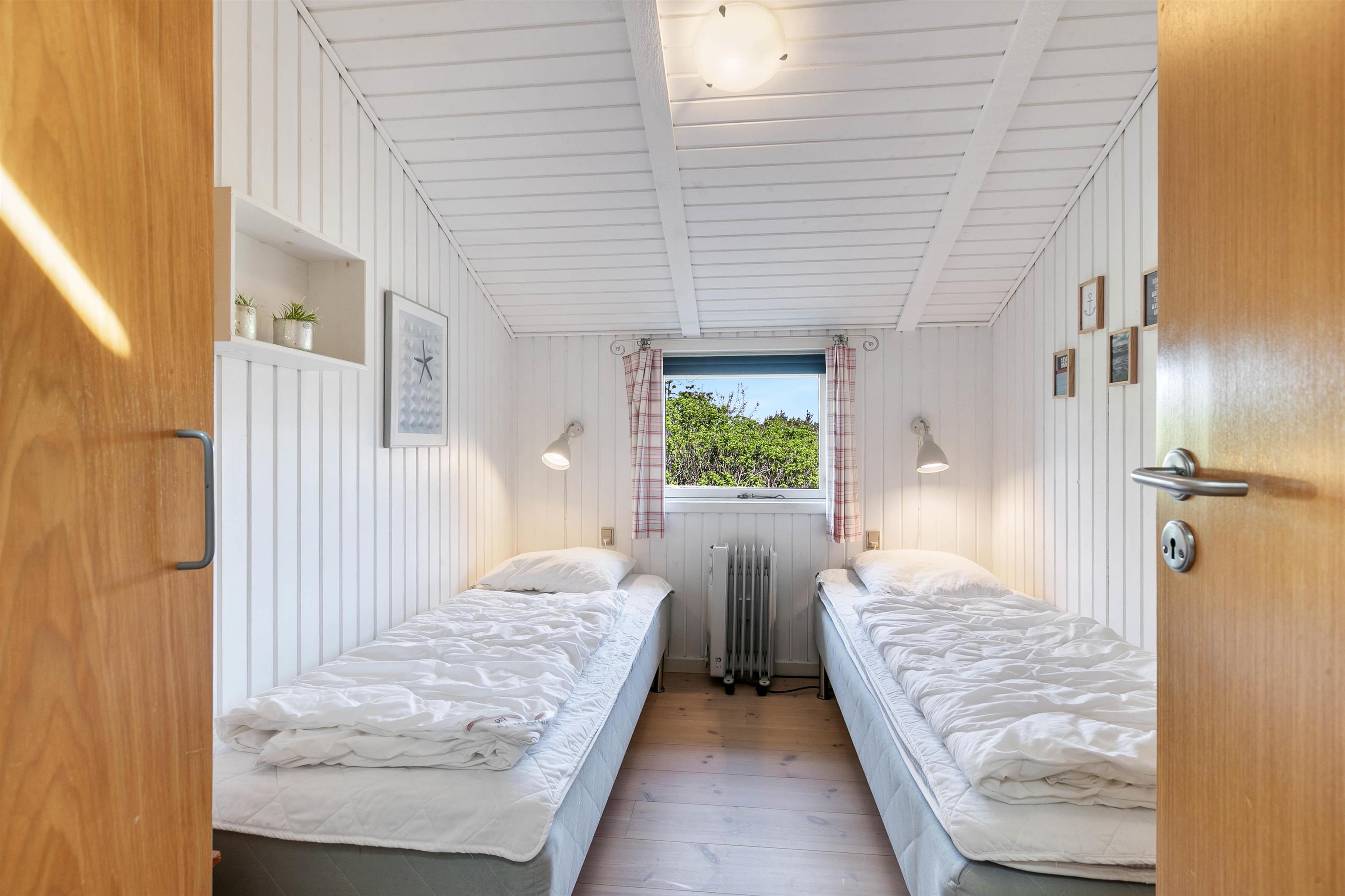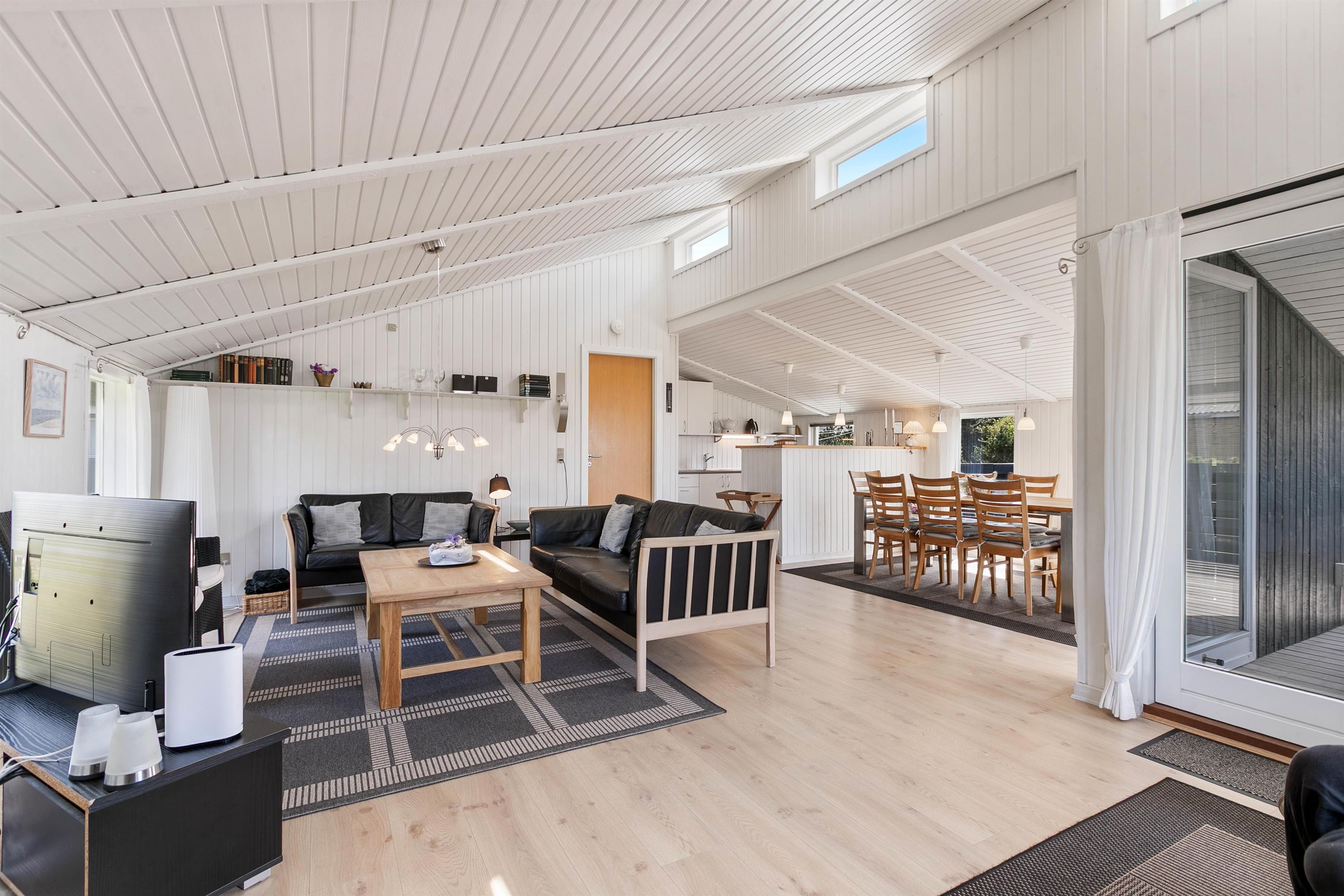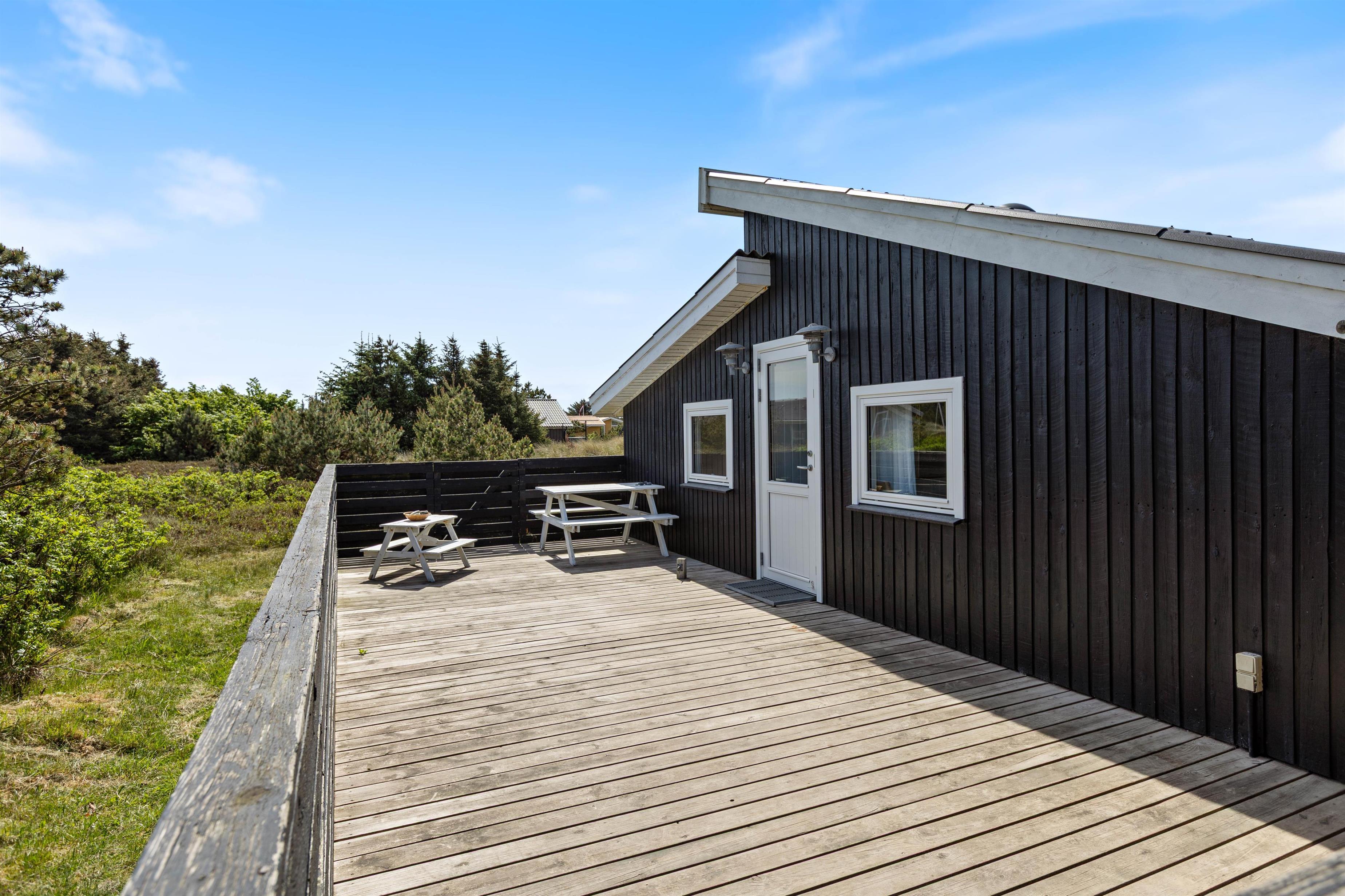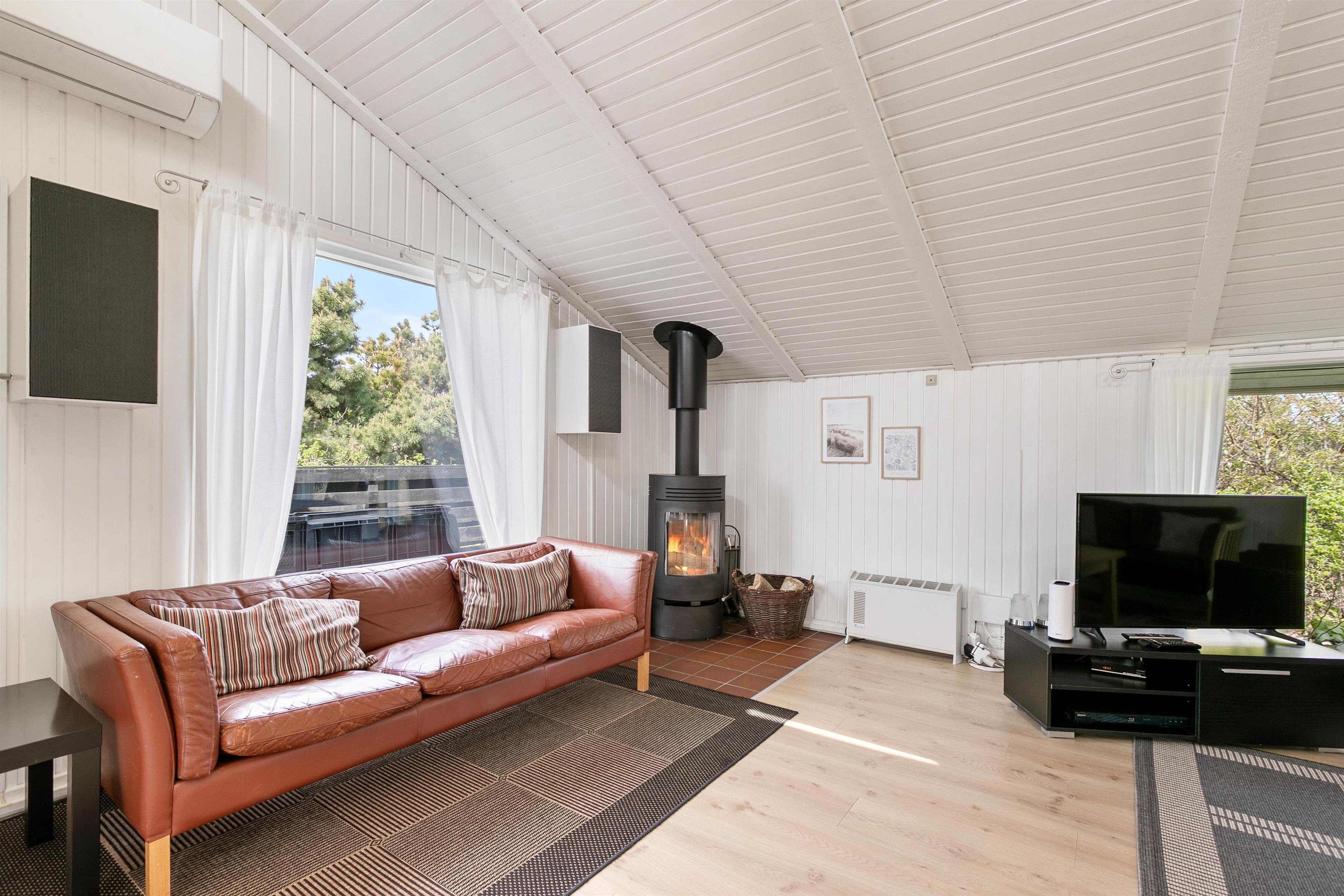 Sommerhuset er godt opdelt med de 4 soveværelser i den ene ende, og køkkenalrummet og stuen i den anden. Køkkenalrum og stue danner sammen sommerhusets hjerte. De store vinduer giver udsyn til det vestjyske klitlandskab, og brændeovnen varmer jer på selv de koldeste vinterdage.