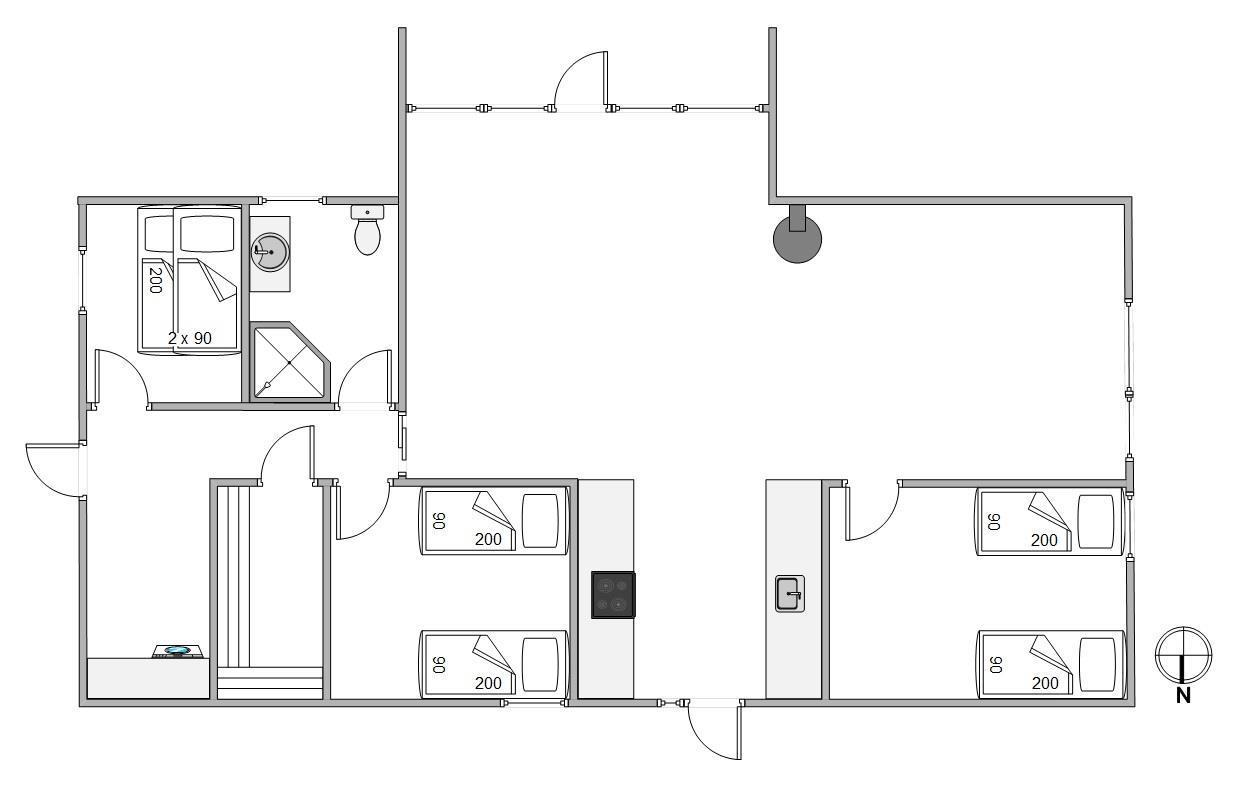 I sommerhusets hjerterum, det store opholdsrum hvor stue, køkken og spiseafdeling flyder sammen, kan I alle samles. Her står brændeovnen centralt placeret og skaber hygge samt en naturlig opdeling af rummet. Rundt om spisebordet kan I samles om lækre måltider, hyggelige brætspil eller planlægge morgendagens aktiviteter.