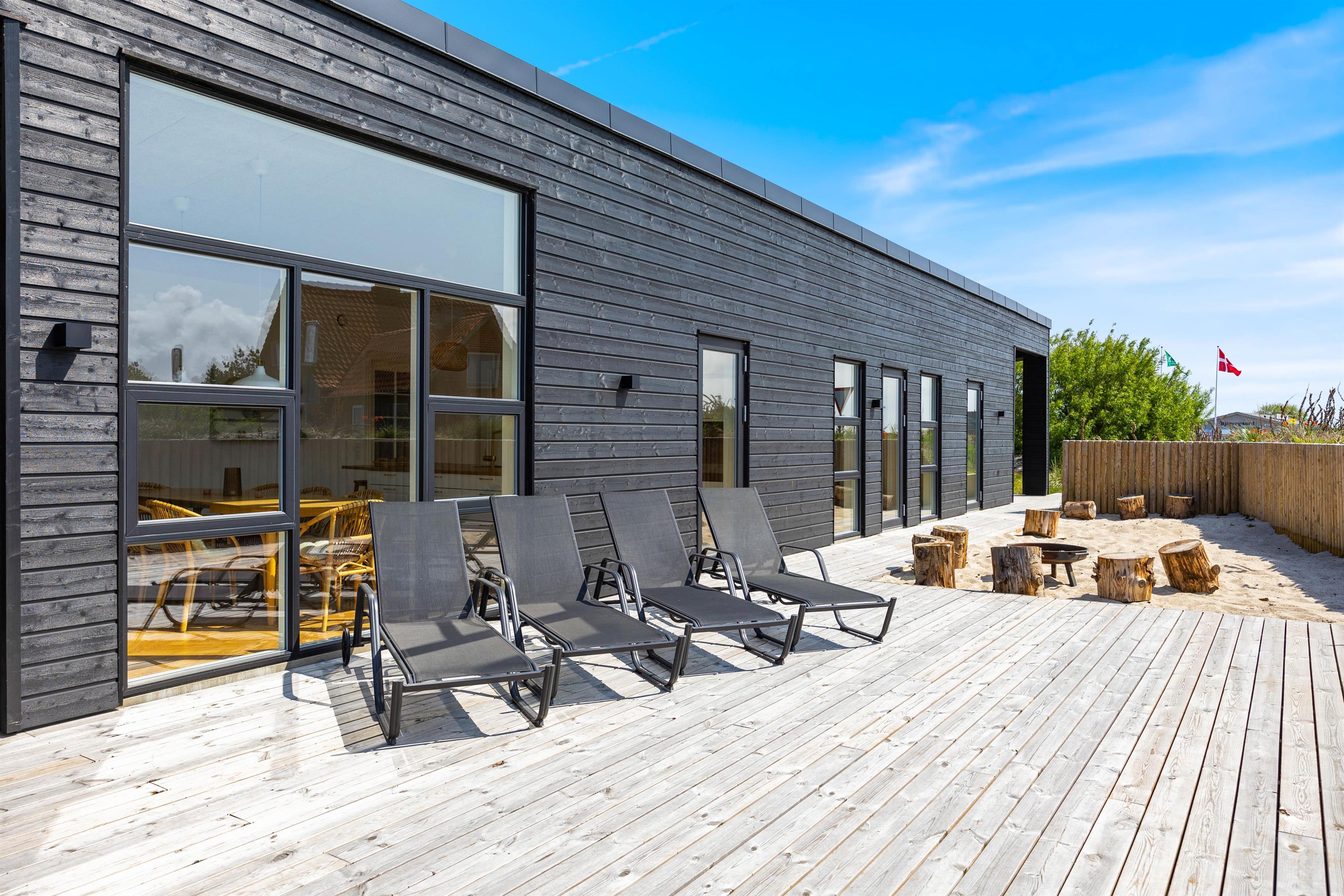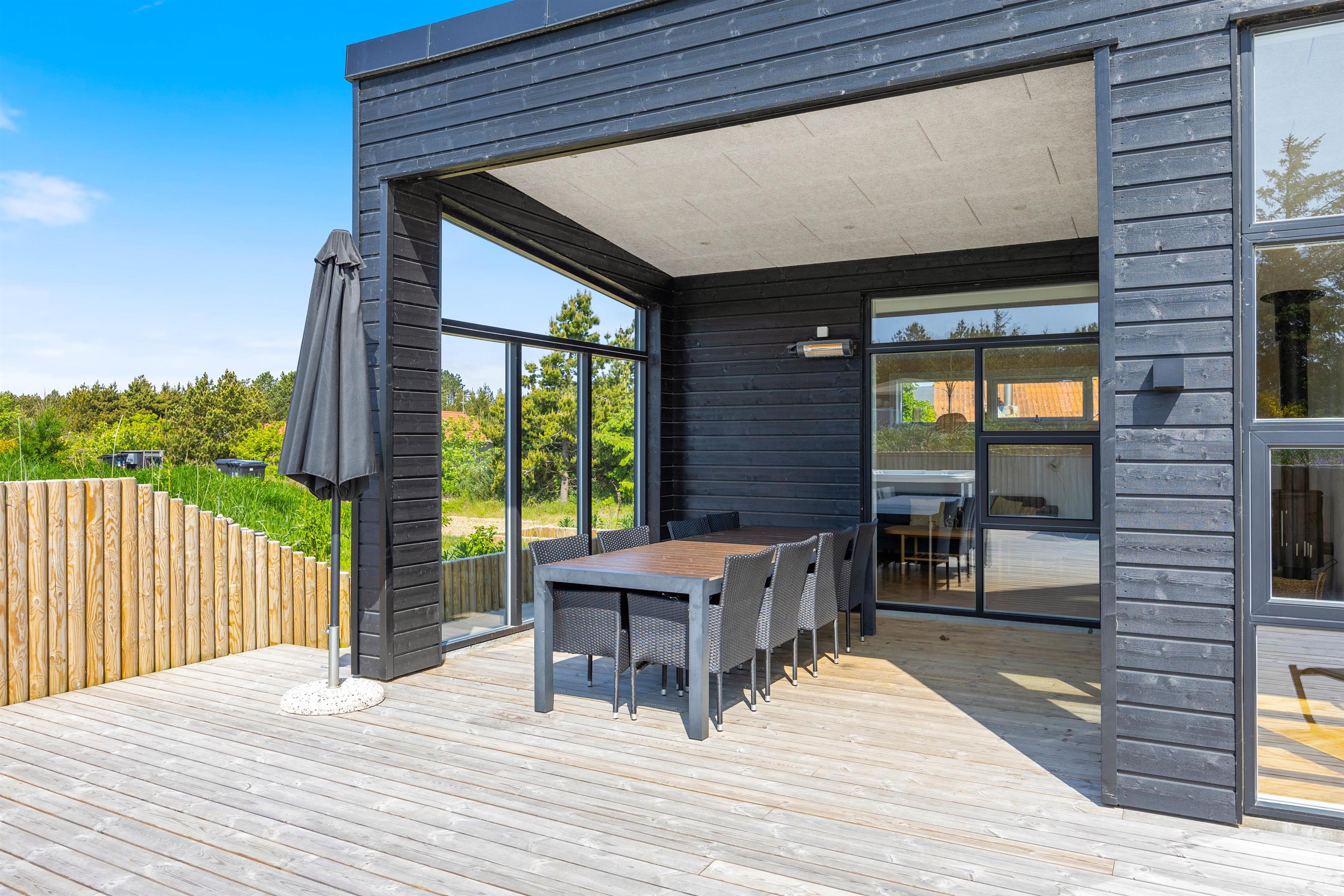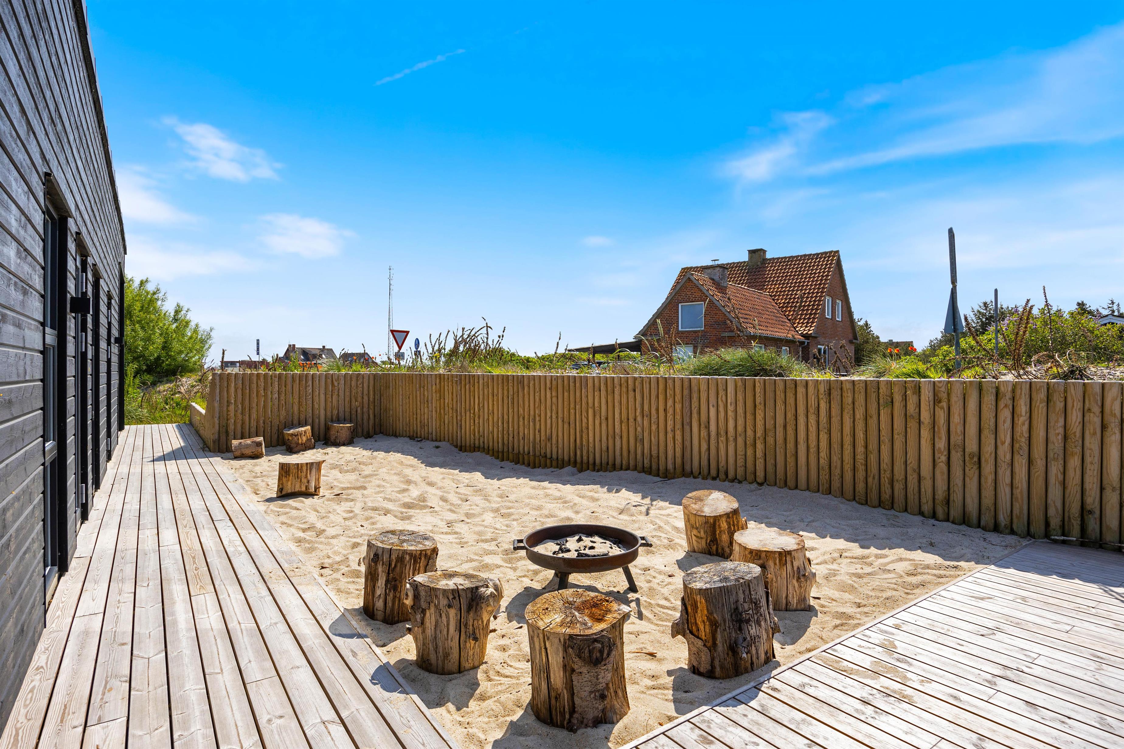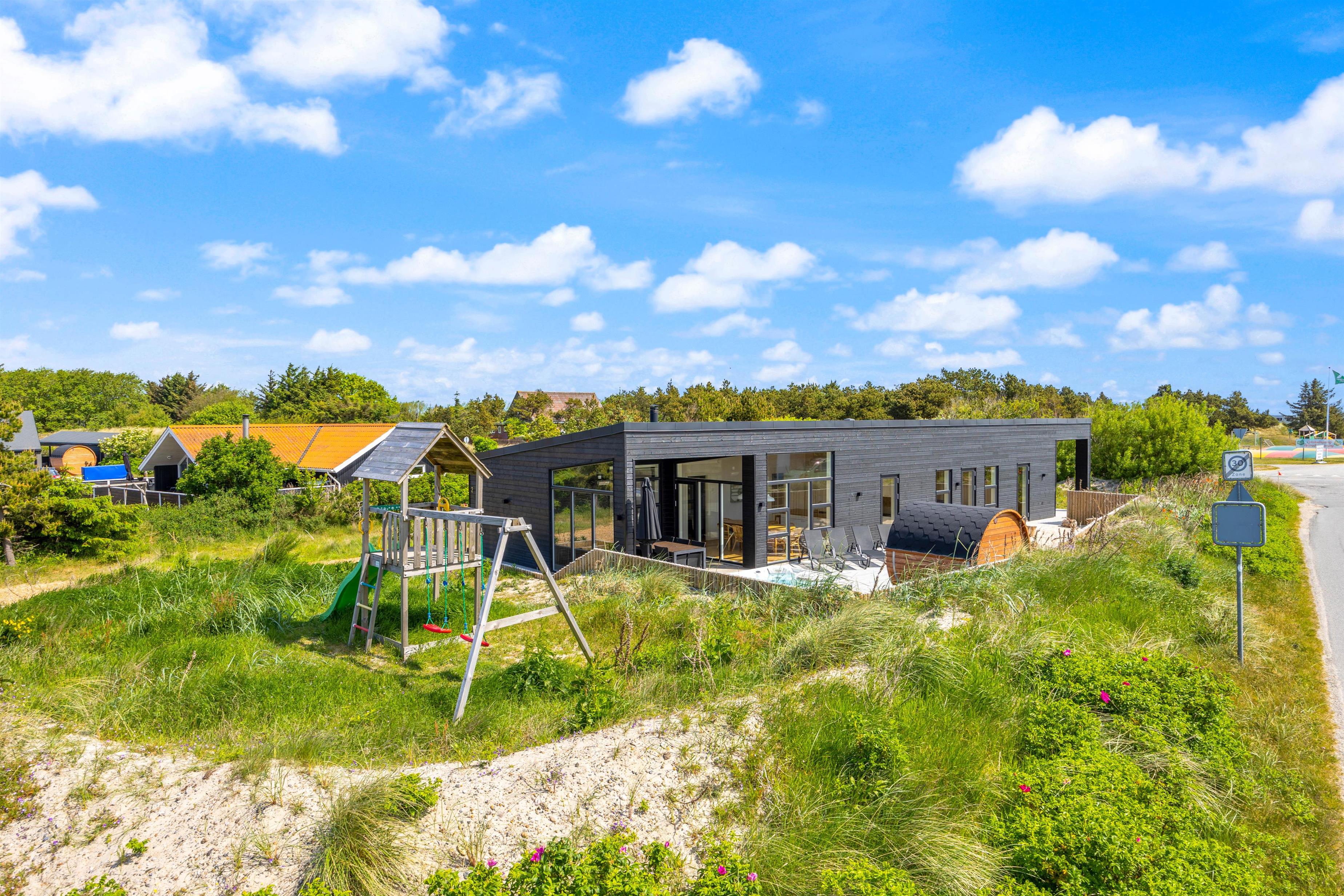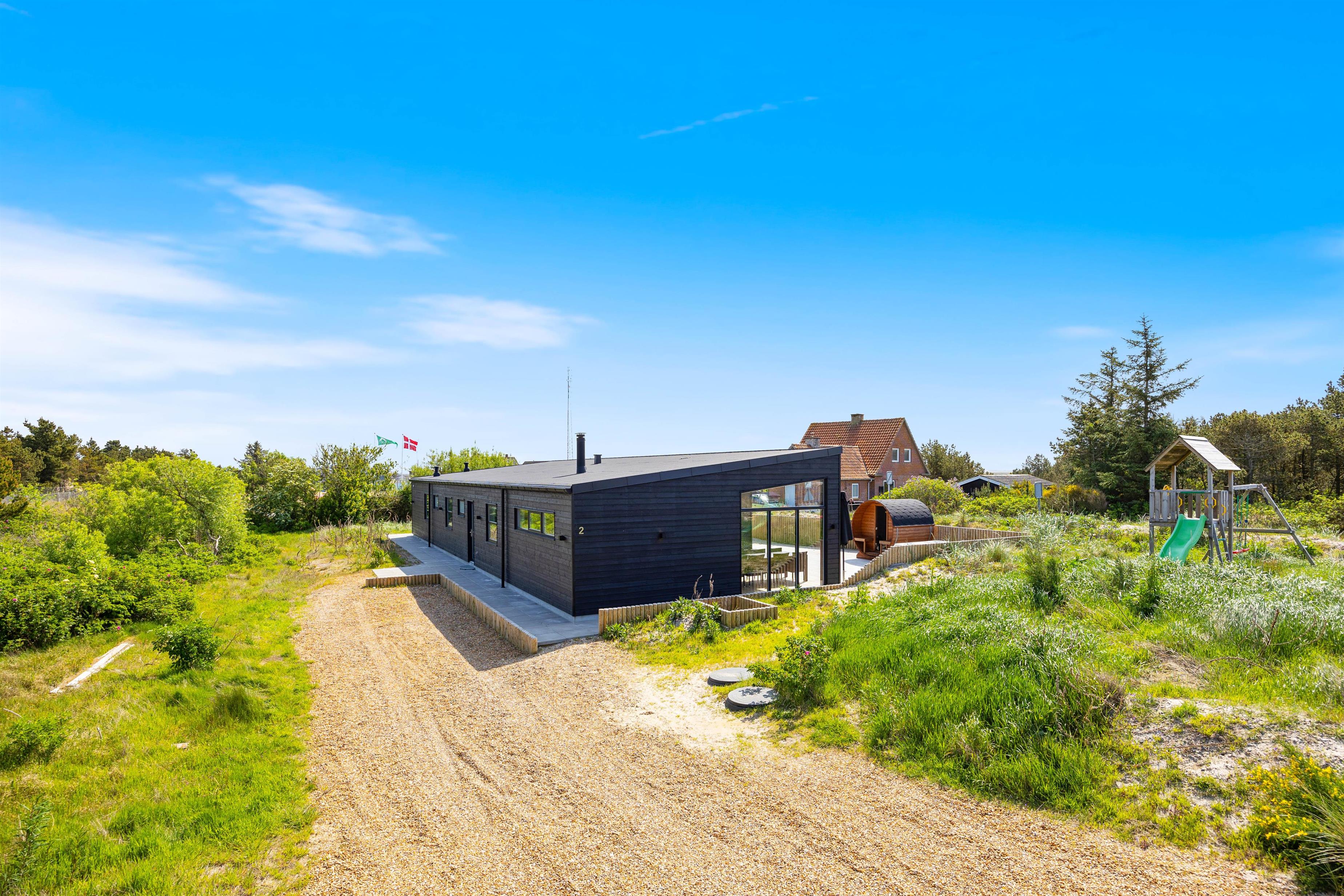Sommerhuset på Bjerregårdsvej 2 er omgivet af lyse sandvolde med marehalm og stolper, så den rummelige terrasse er helt ugeneret. Til de små børn er der gyngestativ og sandkasse. På den delvist overdækkede terrasse kan I sammen tilberede et lækkert grillmåltid, og derefter nyde udespa, bruser og sauna, imens aftenen falder på. Udebruseren kan benyttes fra april til november. I kan gå en frisk tur ned til den kilometerlange sandstrand og blive blæst godt igennem, før I afslutter endnu en dejlig feriedag.