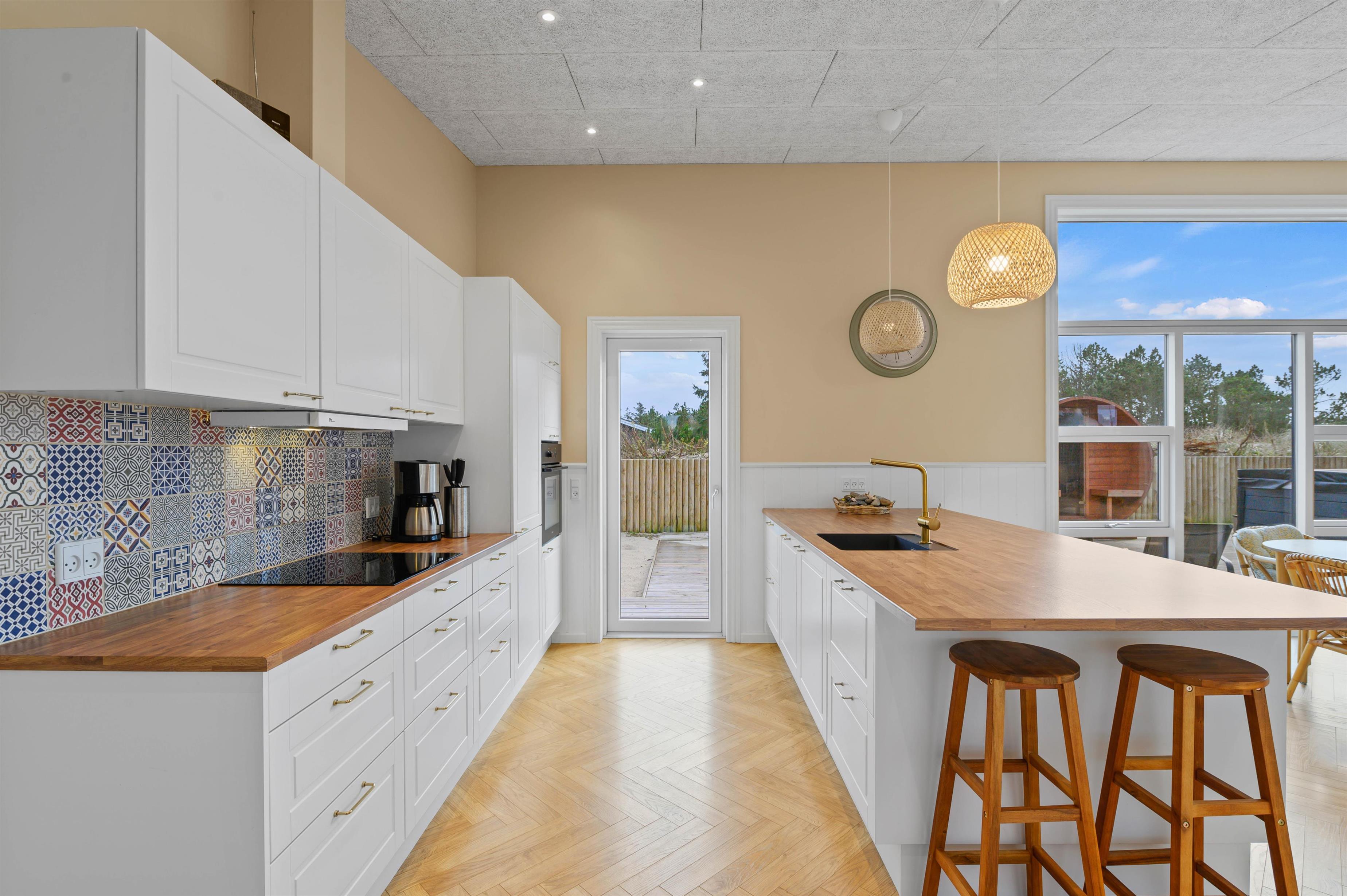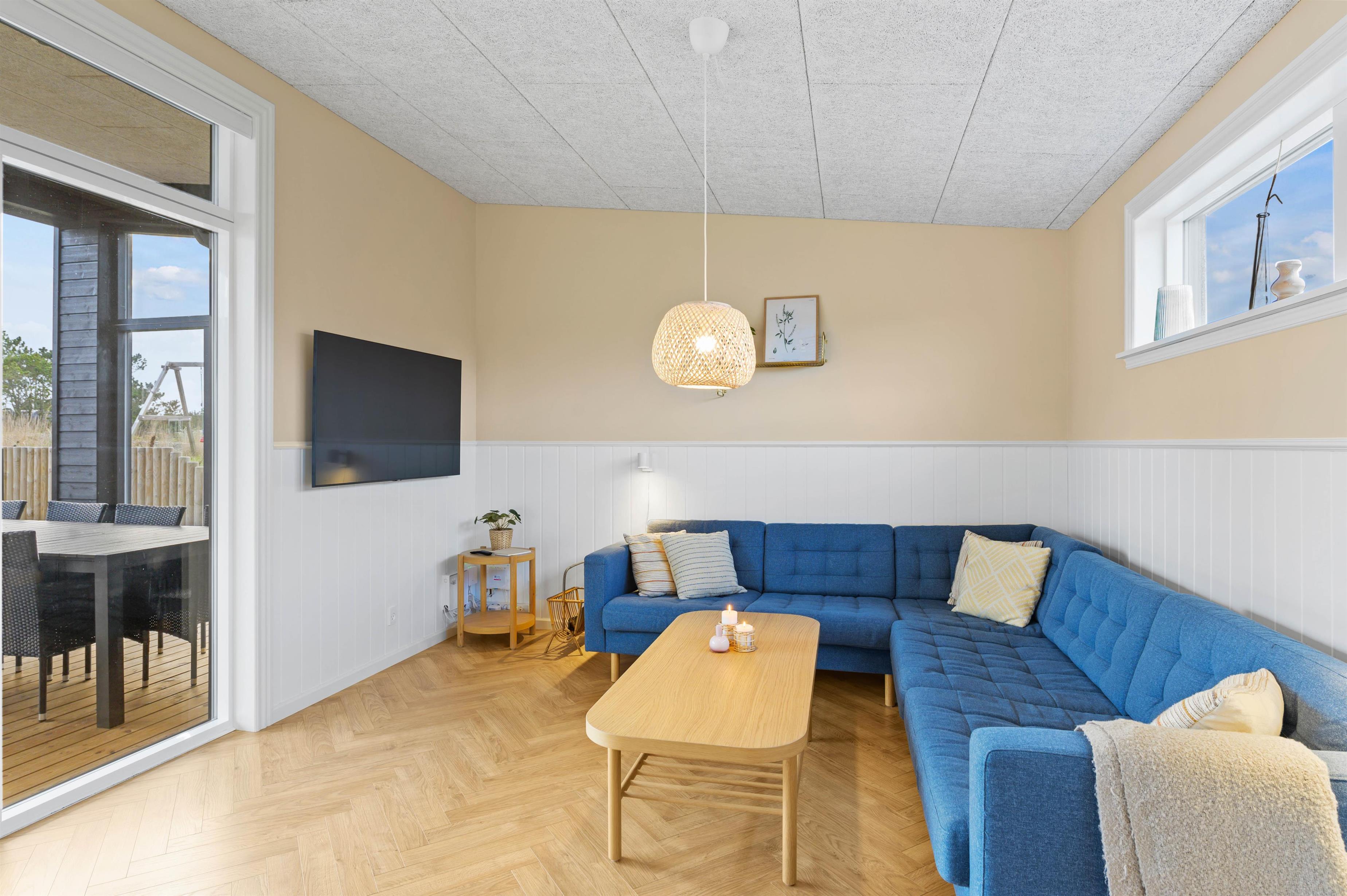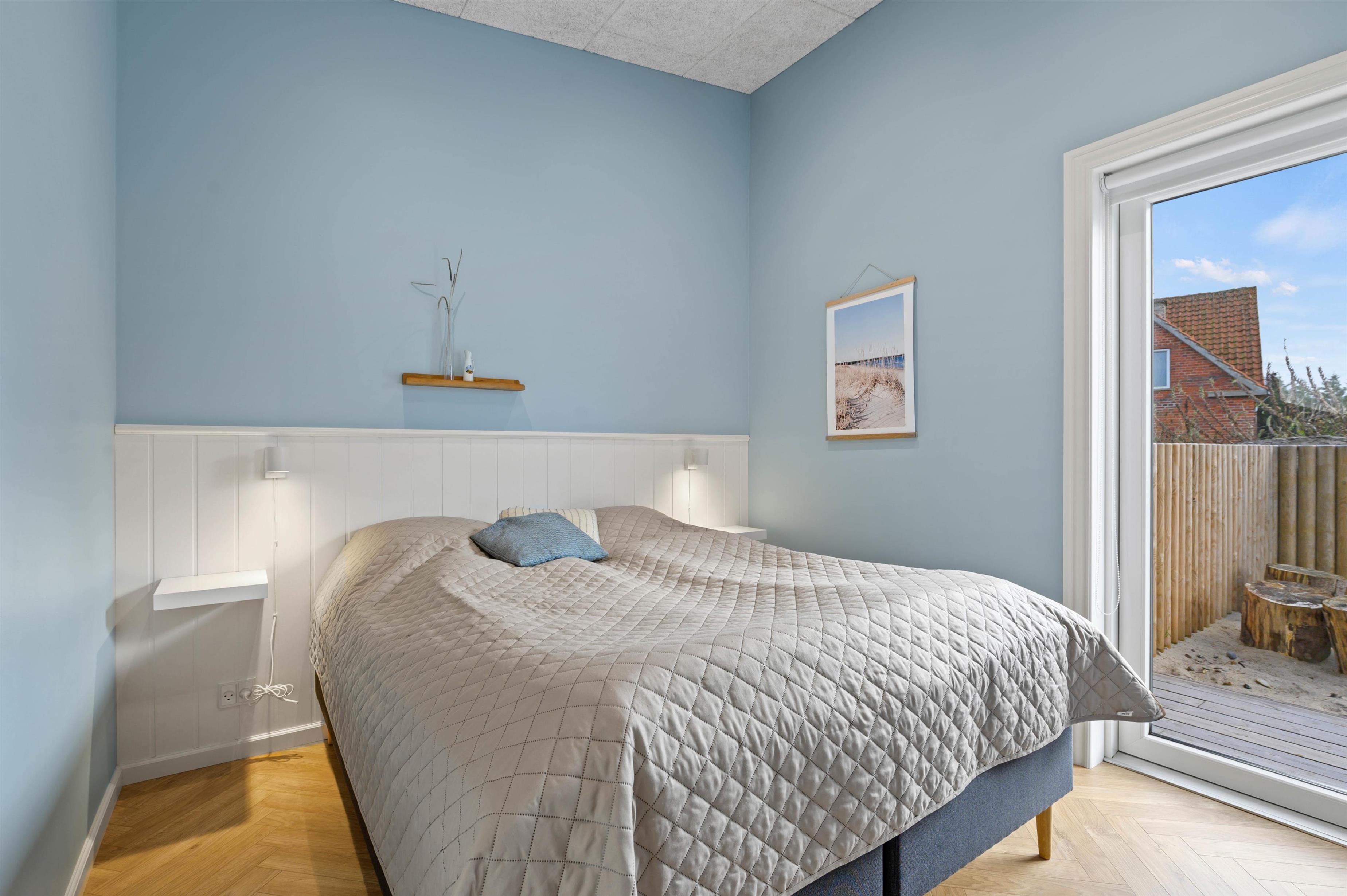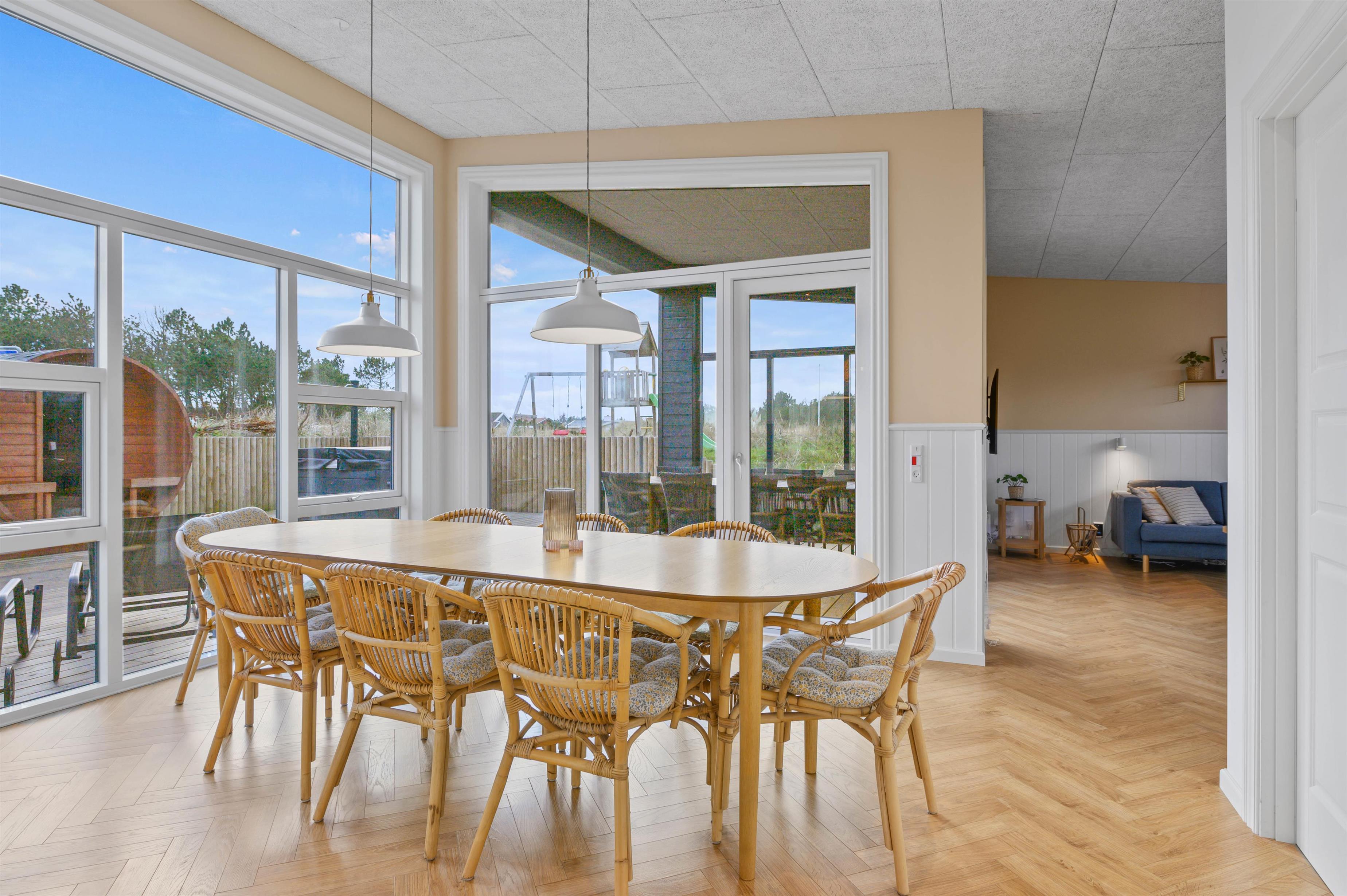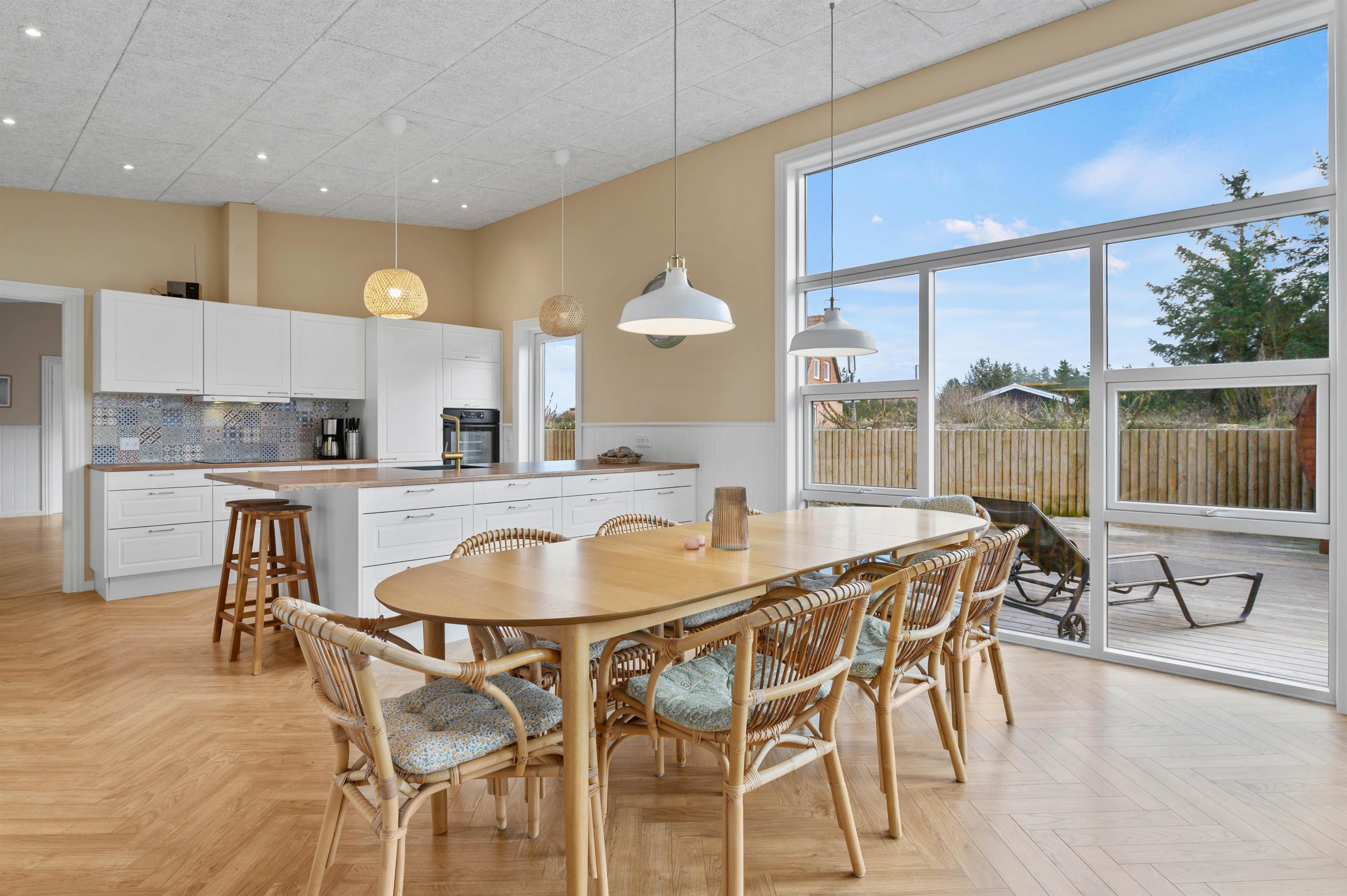 Sommerhuset på Bjerregårdsvej 2 er omgivet af lyse sandvolde med marehalm og stolper, så den rummelige terrasse er helt ugeneret. Til de små børn er der gyngestativ og sandkasse. På den delvist overdækkede terrasse kan I sammen tilberede et lækkert grillmåltid, og derefter nyde udespa, bruser og sauna, imens aftenen falder på. Udebruseren kan benyttes fra april til november. I kan gå en frisk tur ned til den kilometerlange sandstrand og blive blæst godt igennem, før I afslutter endnu en dejlig feriedag.