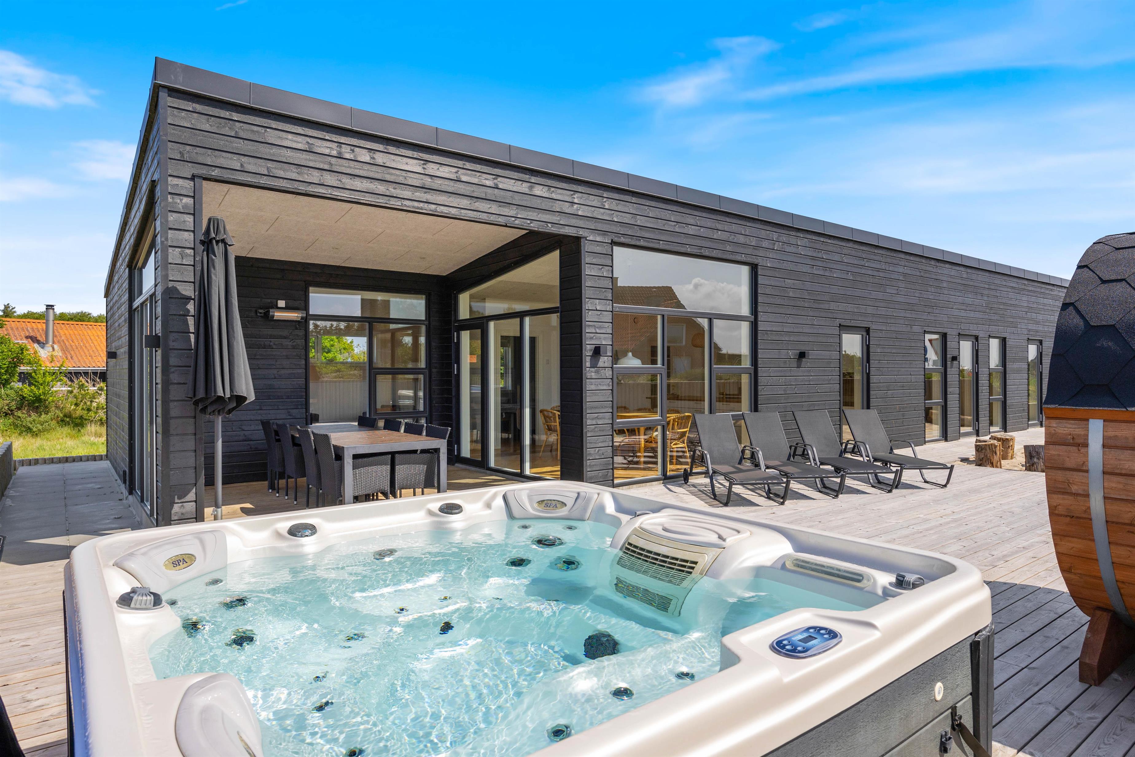 Dette unikke sommerhus i Bjerregård har fokus på velvære på alle plan. Her er udendørs område med spa, sauna og bruser på den afskærmede terrasse, så I sammen og helt ugeneret kan hygge og slappe af i fred og ro. Indendørs kan I dyrke forskellige spil og aktiviteter, som poolbillard, bordtennis, dart osv. Overalt er der indrettet lyst, lækkert og rummeligt, så oplevelsen bliver helstøbt.