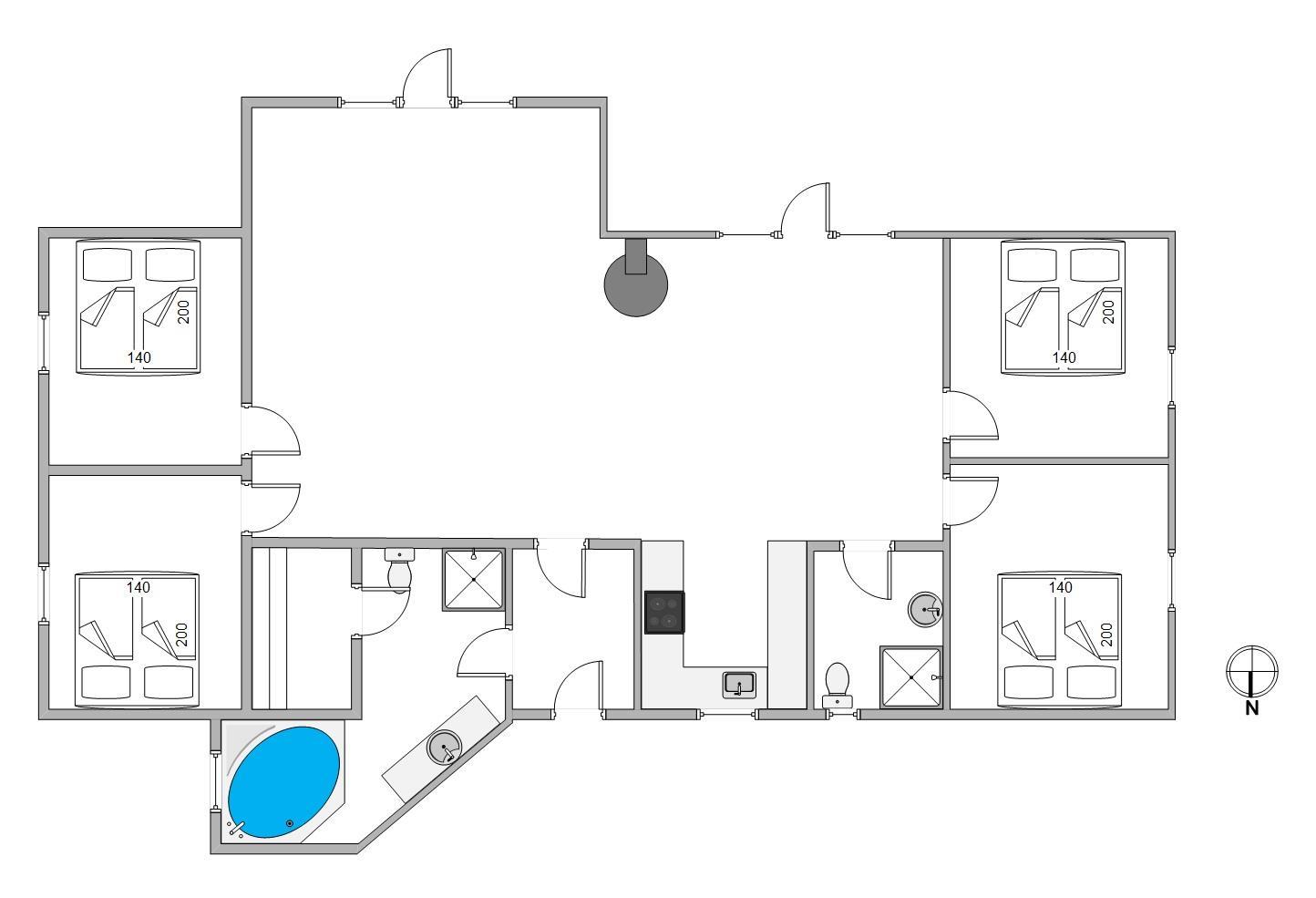 Dette sommerhus fra 1992 er bygget i mursten, med stråtag og er løbende renoveret. Der er 4 værelser i sommerhuset, som alle har gulvtæppe og dobbeltseng. Sommerhusets to badeværelser har begge gulvvarme og bruseniche. Det store badeværelse har desuden en hjørnespa og en sauna, som er perfekt efter en oplevelsesrig feriedag i naturen. Derudover er der en vaskemaskine og en tørretumbler placeret i sommerhusets bryggers.
