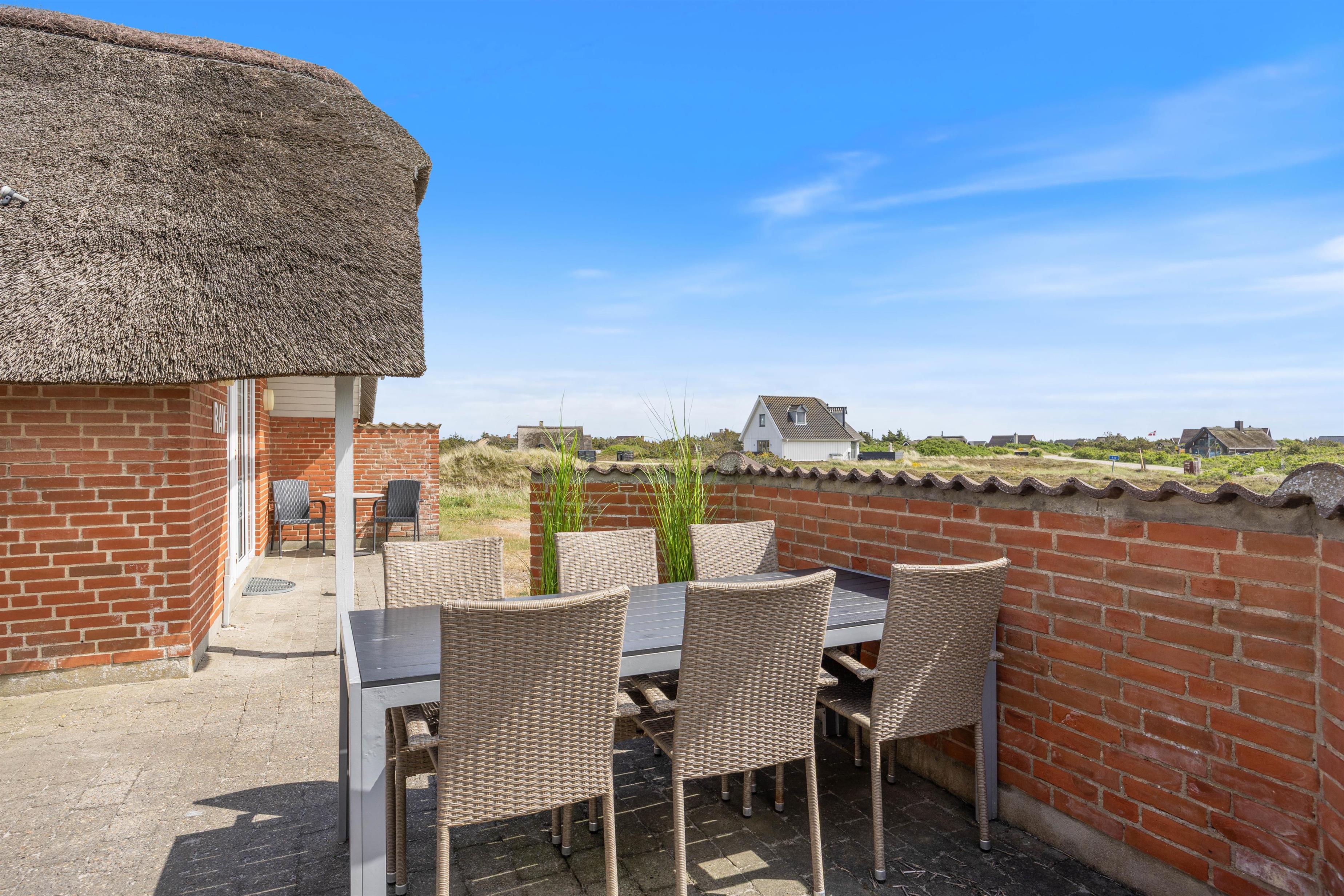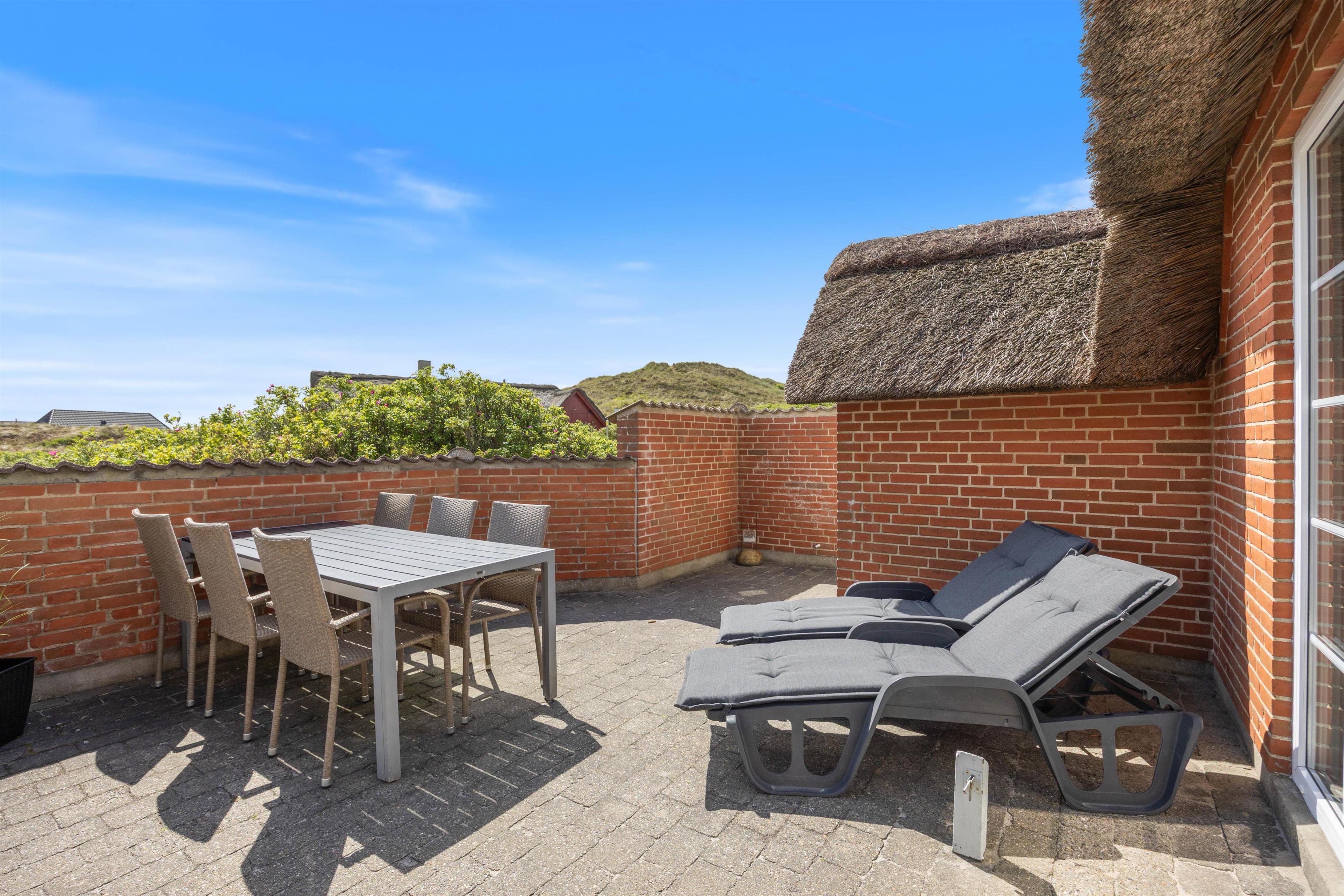 På Riskrogen 14 ligger et flot sommerhus med stråtag og gratis trådløst internet. Sommerhuset har en skøn beliggenhed på en stor og dejlig naturgrund lige op af et fredet hedeområde og kun 400 meter fra Vesterhavet. Feriehuset er løbende vedligeholdt og fremstår meget indbydende og hyggeligt. Her er en delvis overdækket og afskærmet terrasse mod syd, hvor hele familien kan samles til hyggelige feriestunder.