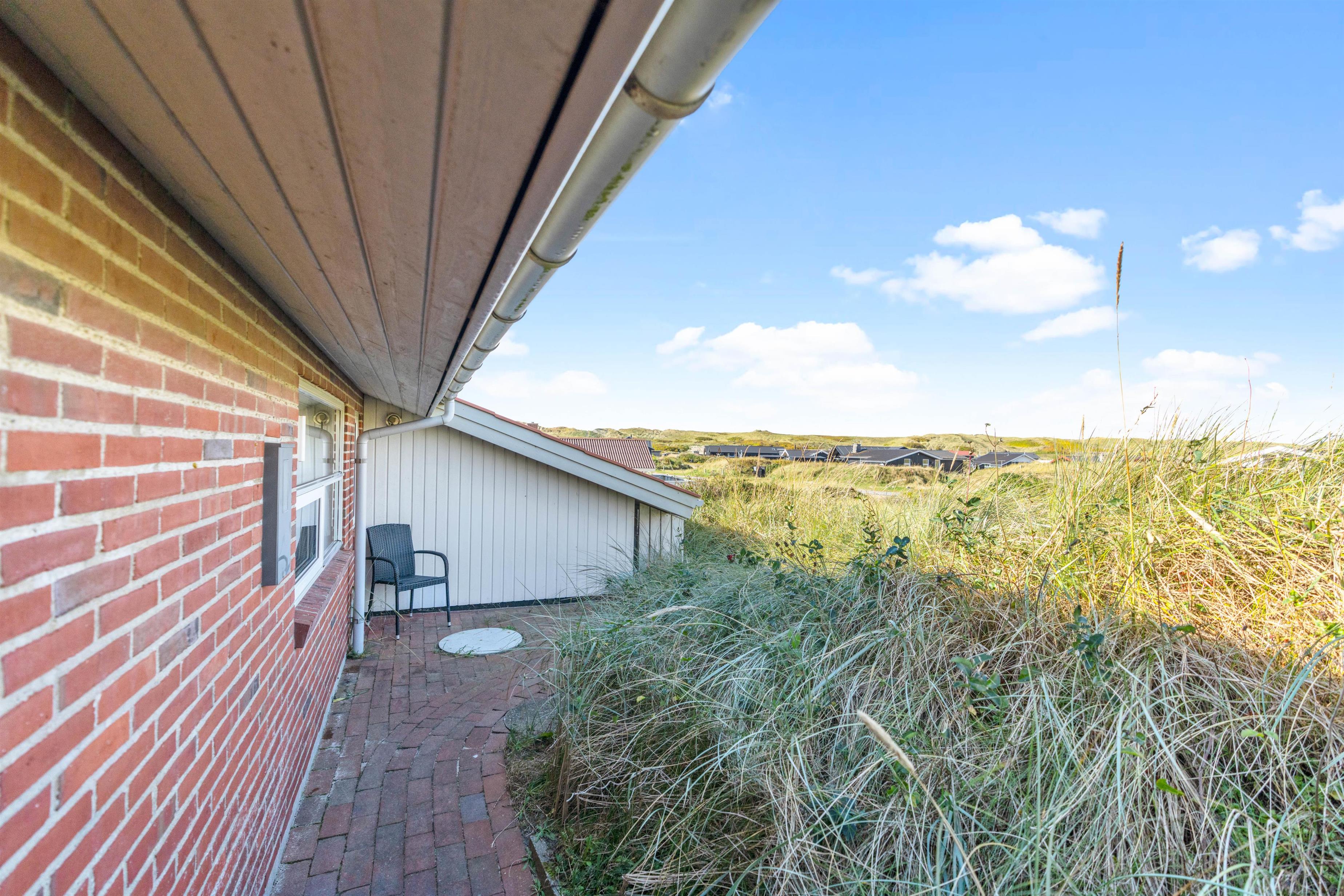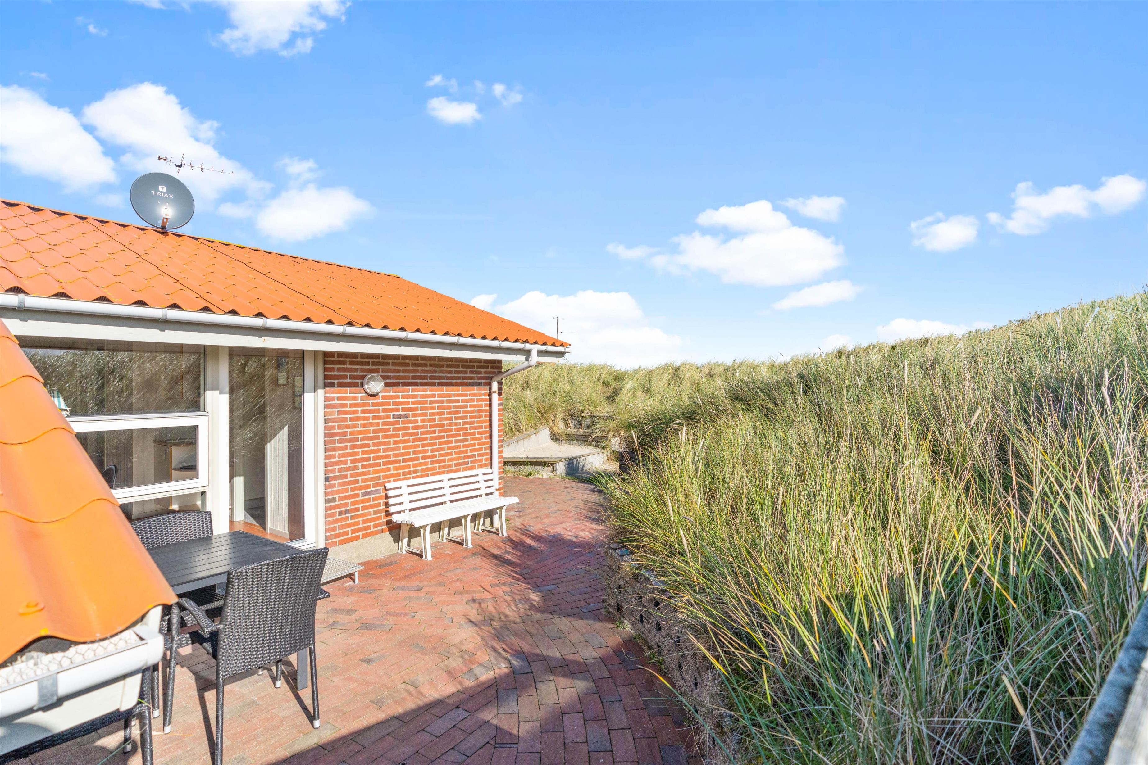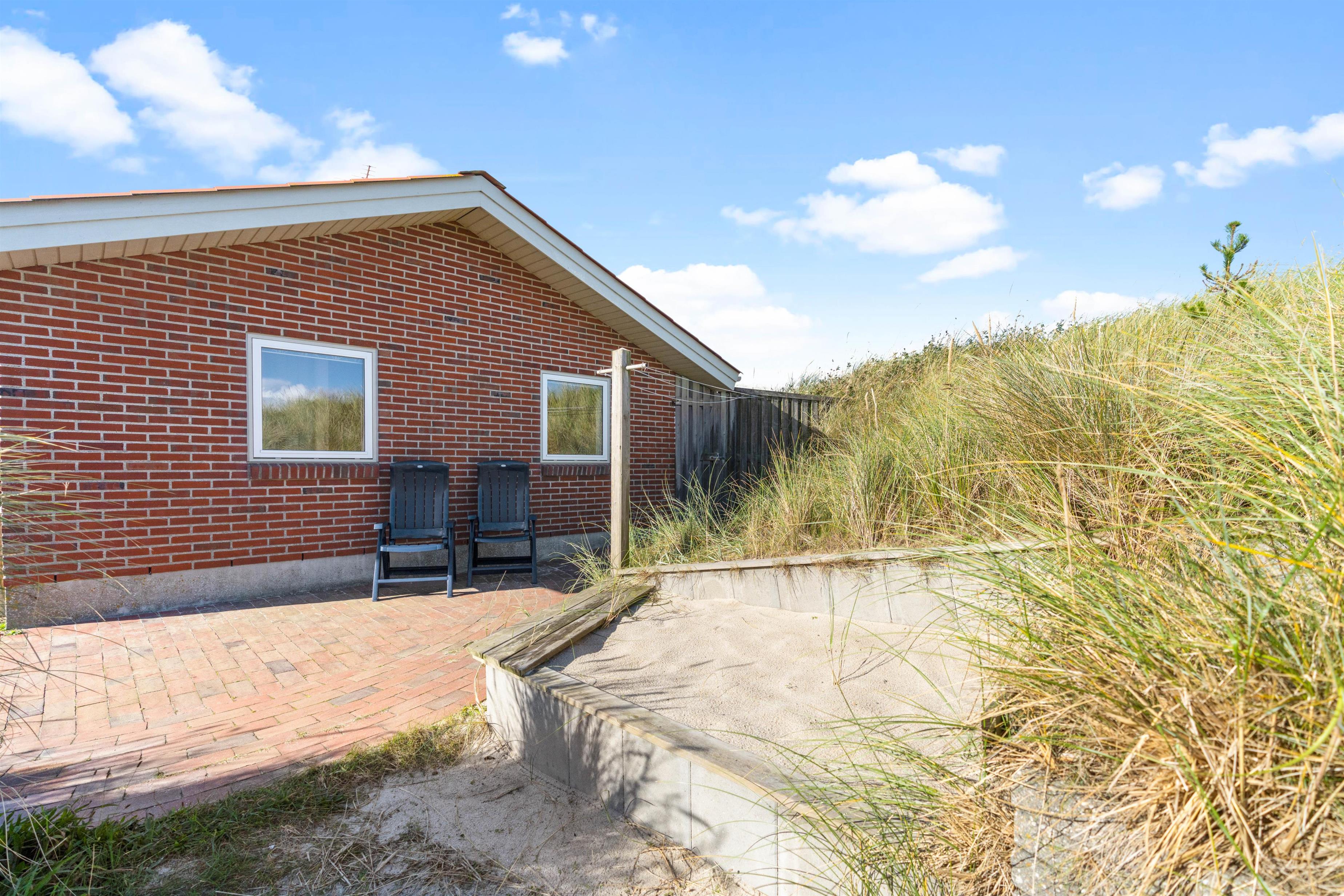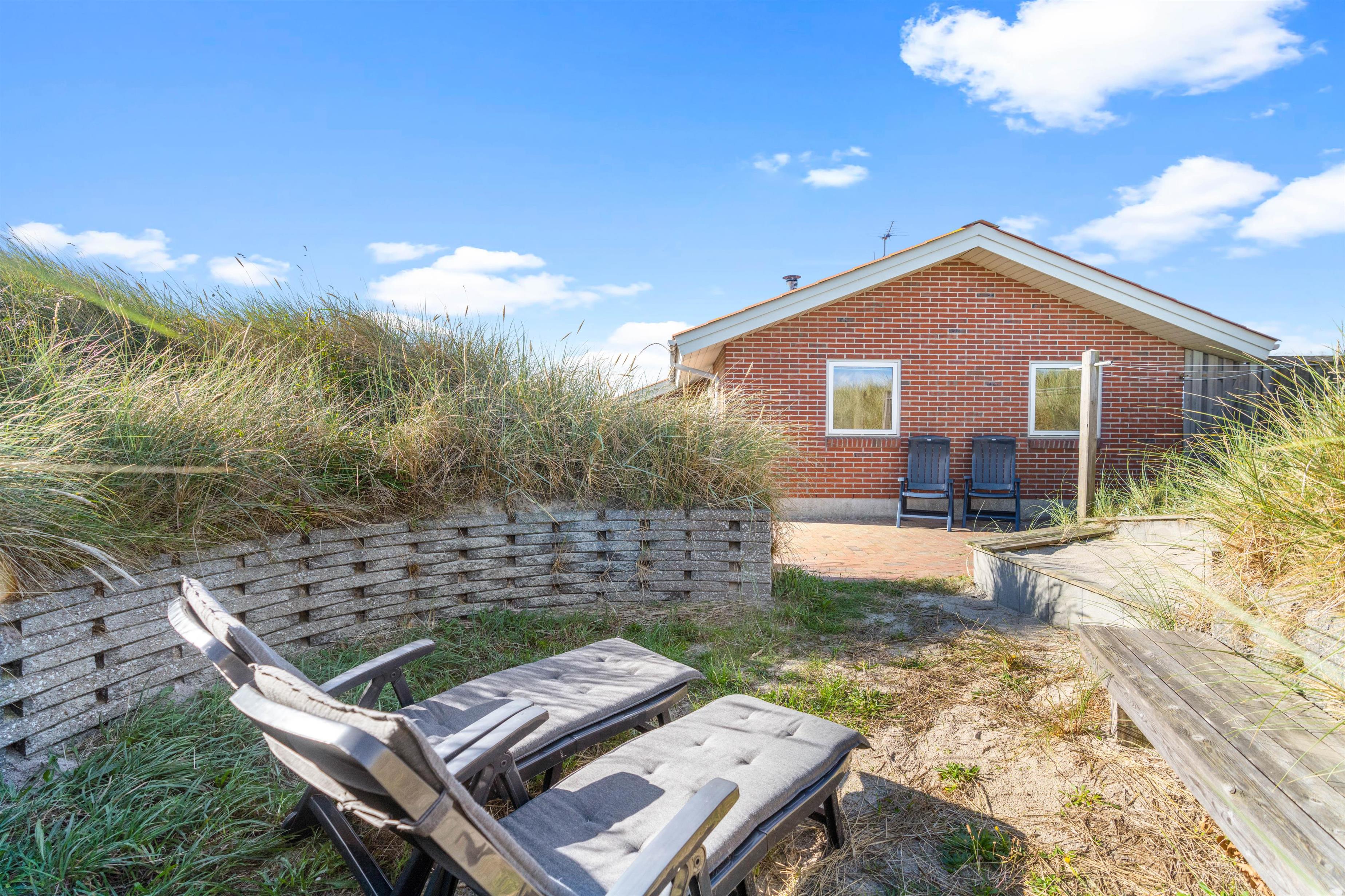 Med en særdeles fin beliggenhed kun ca. 250 meter fra stranden ligger dette feriehus af sten placeret på en kuperet naturgrund. Her er masser af fred og ro til at nyde naturen på den danske nordsøkyst. Den store og velafskærmede terrasse med gode havemøbler er en fredfyldt plet, hvor børn og hund rigtigt kan tumle rundt.