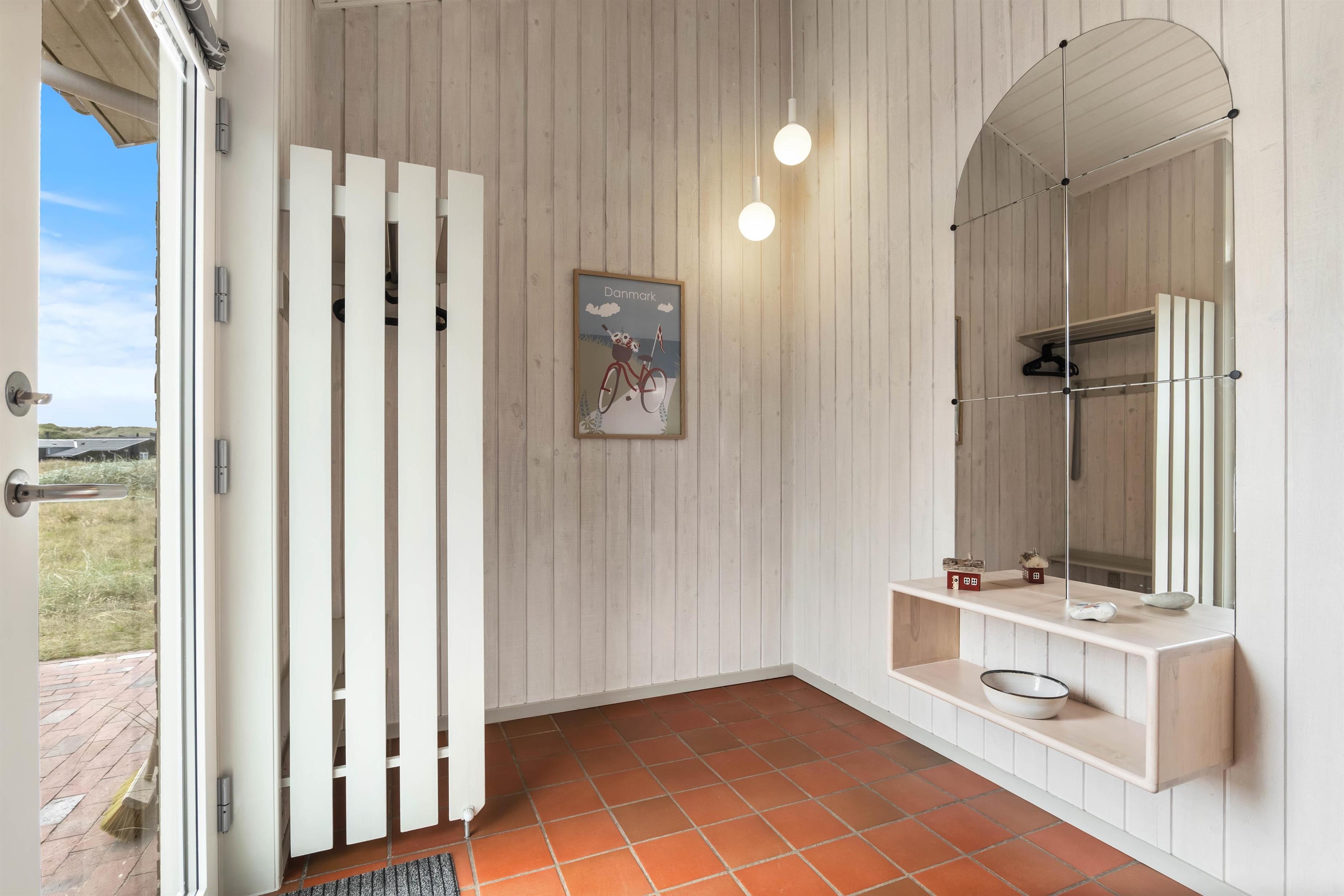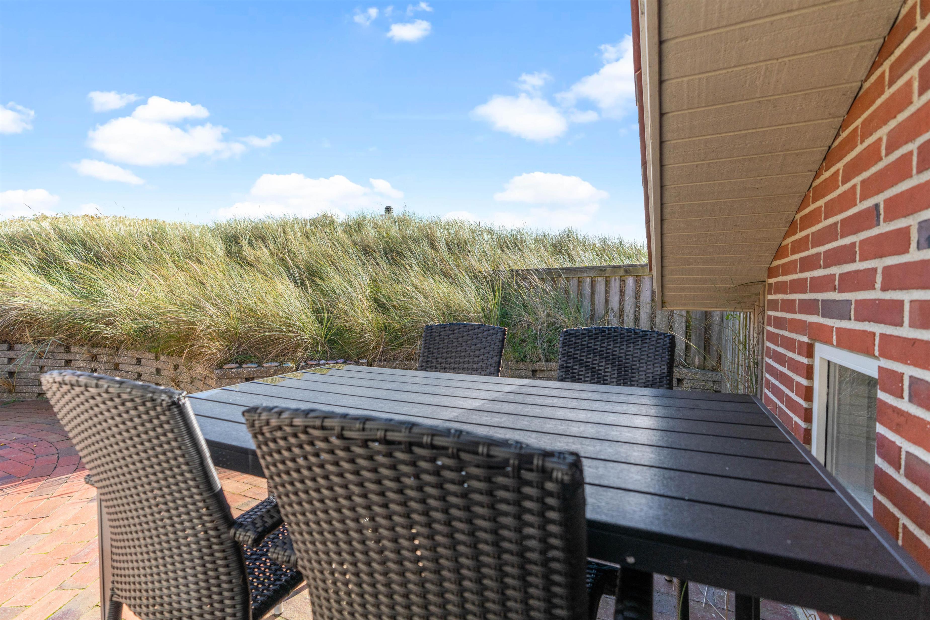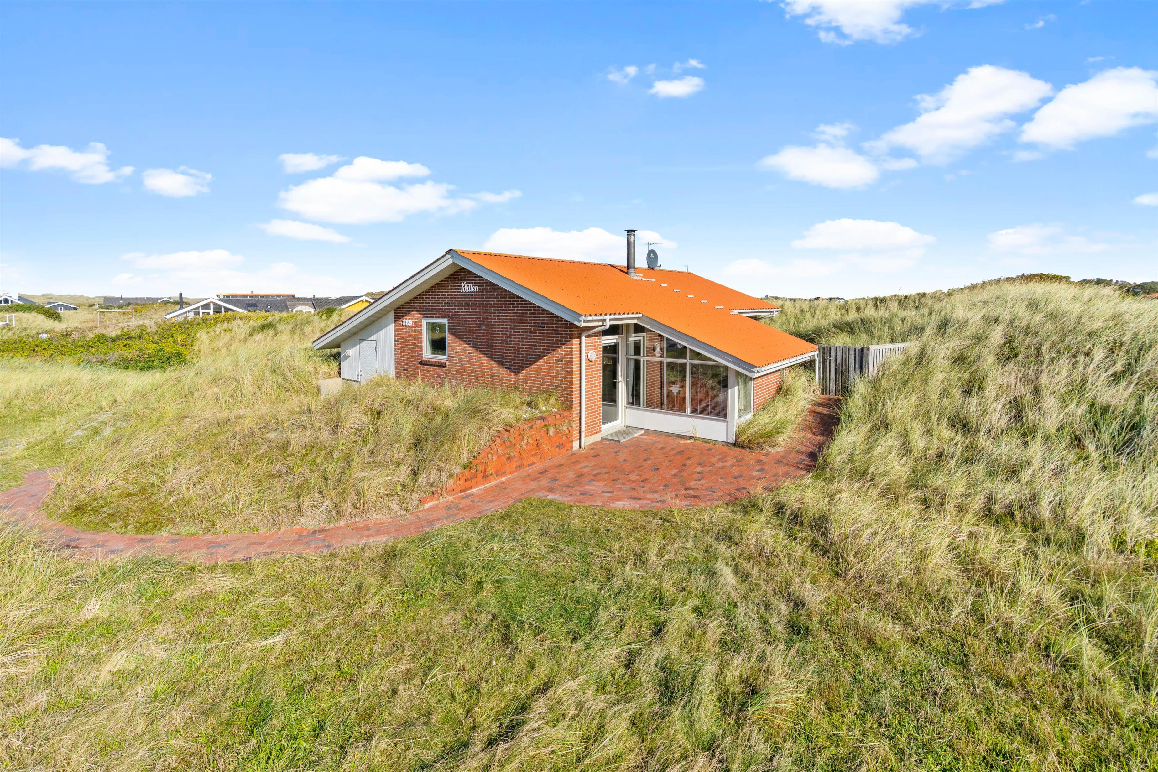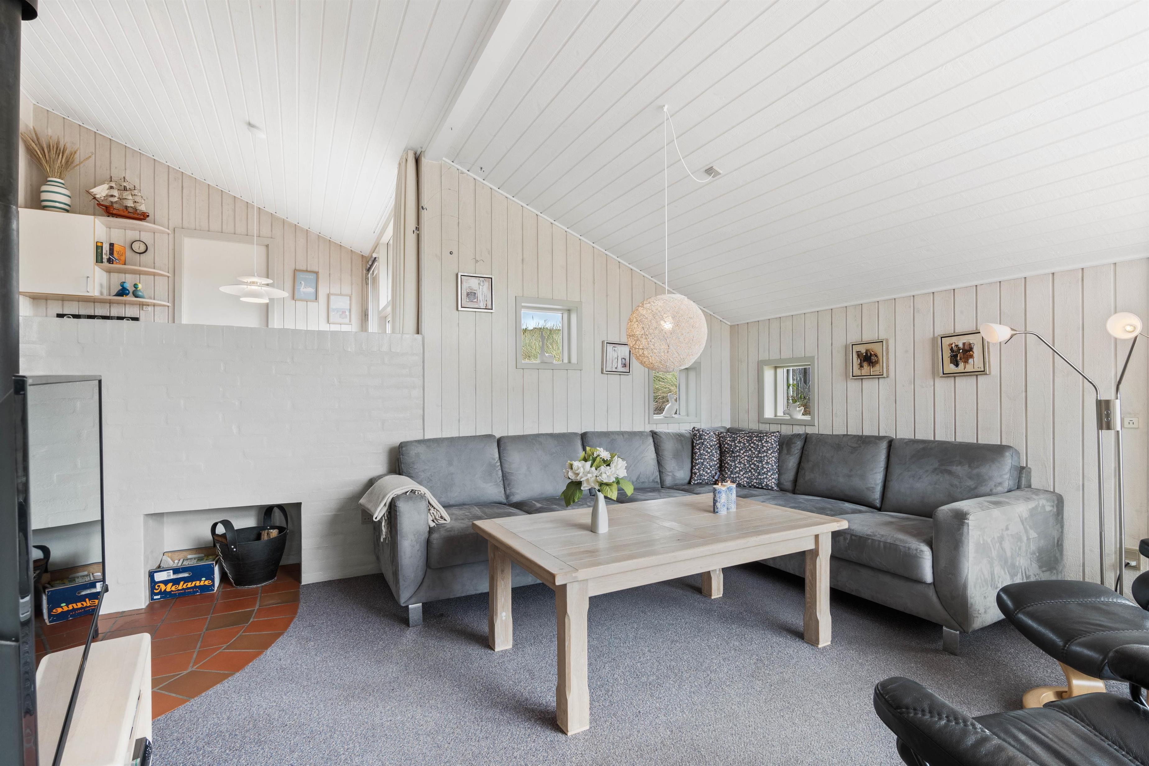 Med en særdeles fin beliggenhed kun ca. 250 meter fra stranden ligger dette feriehus af sten placeret på en kuperet naturgrund. Her er masser af fred og ro til at nyde naturen på den danske nordsøkyst. Den store og velafskærmede terrasse med gode havemøbler er en fredfyldt plet, hvor børn og hund rigtigt kan tumle rundt.